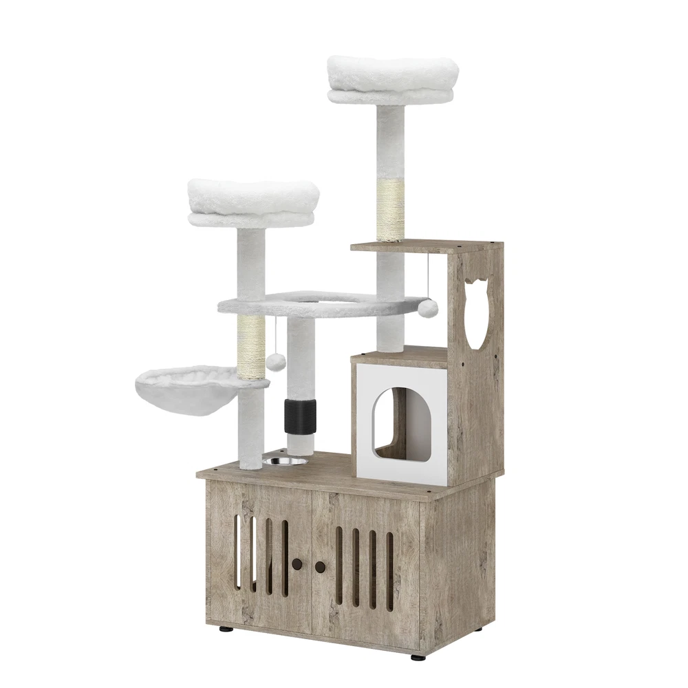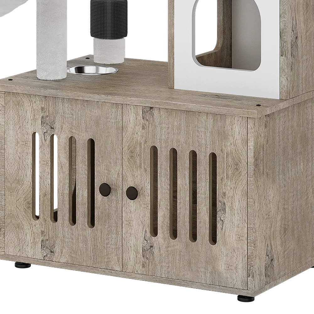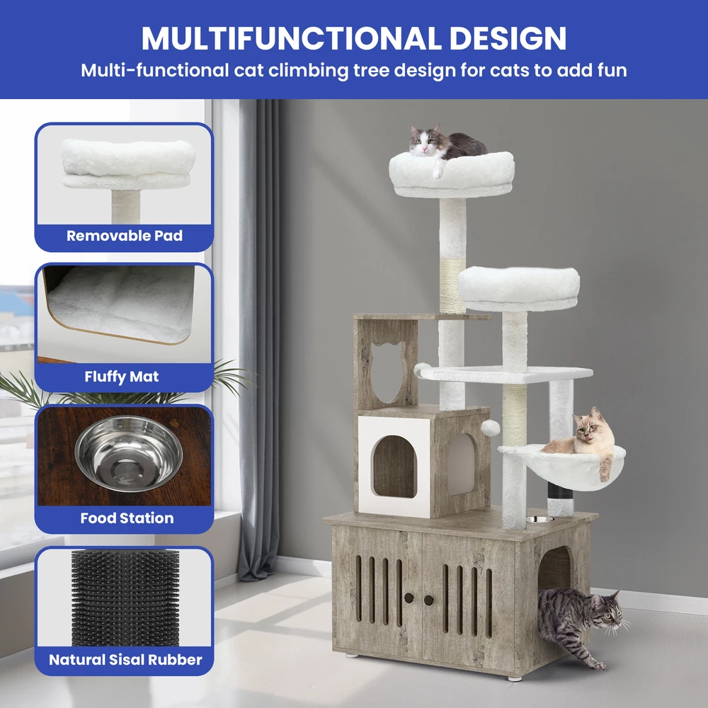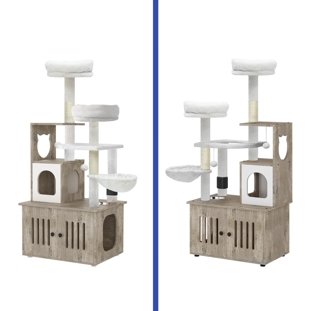 59" Cat Litter Box Activity Center with Cats Tree Tall Enclosure Door Furniture Product Description NOTE: Professional Installation would be Highly Recommended. Description: 1. Color: Gray & White 2. Material: MDF Wood, Sisal, Plush Fabric 3. Cabinet Material: P2 Particle Board 4. Cat Size: Kitten, Teenage Cat, Adult Cat, Kitty 5. Recommended Usage: Cat House, Cat Litter Box, Cat Cabinet, Cat Condo, Cat Tree, Activity Center 6. Room Recommendation: Cat Room, Living Room, Bedroom, Playroom, Sunroom, TV Room, Home Office/Study 7. Special Design: With Food Station, With Cabinet, With Top Perches, With Hanging Balls, With Cat Houses, With Fluffy Basket, With Scratching Posts, and Adjustable Feet Features: 1. Sturdy & Safe Playground: Spoil your cat with a secure and stable haven in this cat tree cabinet. Crafted for confidence, your furry friend can climb, play, and explore worry-free , giving you peace of mind. 2. Endless Entertainment: Say goodbye to cat boredom with this captivating cat haven. Equipped with playful fuzzy balls and cozy napping spots , your cat will stay engaged and relaxed in style, enjoying hours of fun. 3. Vertical Thrills, Space-Saving Design: Embark on vertical adventures with this towering cat tree cabinet reaching 59" in height . Ideal for homes with limited space, let your cat climb, play, and unwind in a compact yet engaging setup , maximizing both fun and functionality. Dimensions: 1. Product Dimensions: 25.9" L x 17.3" W x 59" H 2. Cabinet Dimensions: 25.9" L x 17.3" W x 16.1" H 3. Top Perch Dimensions: 12.2" Diameter 4. Basket Dimensions: 11.8" Diameter 5. Weight: 48.17 lbs. Package Included: 1 x Cat Tree/Cat Tower 1 x Instructions 1 x Accessory Kit Shipping 1. Normally the item will be dispatched within 1 business day if payment is cleared before 12pm PST. 2. Please verify the correct shipping address in your PayPal account before making the payment. 3. We only dispatch the item to the address that is sent to us at the time of checkout. 4. We don't ship to Hawaii, Alaska, Puerto Rico, APO/FPO/PO Boxes. 5. We don't provide local pick-up service. 6. Normally we will use USPS, UPS, FedEx & LTL to dispatch items. Payment 1. We accept PayPal and credit card. 2. We will ship to the confirmed Paypal shipping address that is provided with the payment only. Return 1. 30 days Money Back Guarantee. 2. Please contact our customer service to receive a RMA form first if want to return the item. 3. All returned items MUST in new condition with the original package. Contact If has any problem, please contact us by sending an ebay message. Our customer service will resolve the problem as soon as possible. On Dec 4, 2024 at 23:08:42 PST, seller added the following information: On Dec 12, 2024 at 02:30:54 PST, seller added the following information: