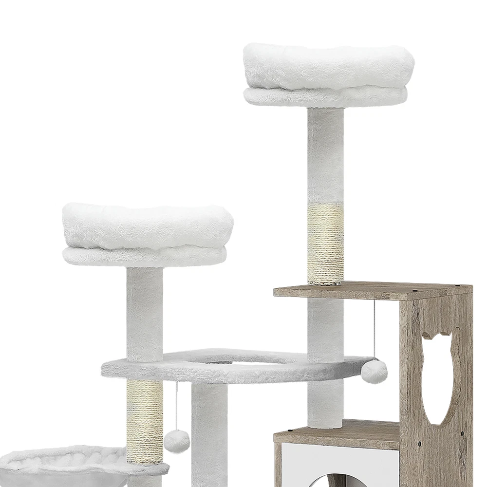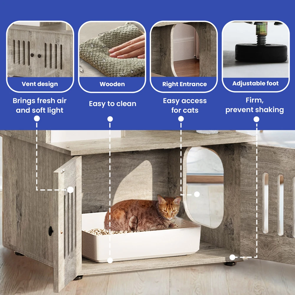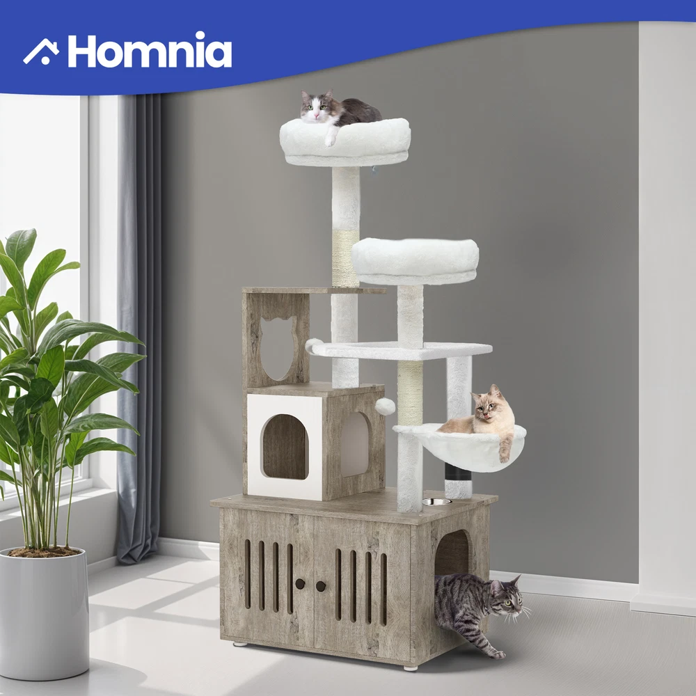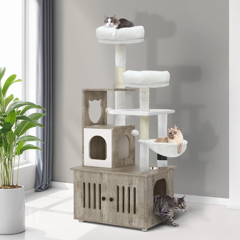59" Cat Litter Box Activity Center with Cats Tree Tall Enclosure Door Furniture Product Description NOTE: Professional Installation would be Highly Recommended. Description: 1. Color: Gray & White 2. Material: MDF Wood, Sisal, Plush Fabric 3. Cabinet Material: P2 Particle Board 4. Cat Size: Kitten, Teenage Cat, Adult Cat, Kitty 5. Recommended Usage: Cat House, Cat Litter Box, Cat Cabinet, Cat Condo, Cat Tree, Activity Center 6. Room Recommendation: Cat Room, Living Room, Bedroom, Playroom, Sunroom, TV Room, Home Office/Study 7. Special Design: With Food Station, With Cabinet, With Top Perches, With Hanging Balls, With Cat Houses, With Fluffy Basket, With Scratching Posts, and Adjustable Feet Features: 1. Sturdy & Safe Playground: Spoil your cat with a secure and stable haven in this cat tree cabinet. Crafted for confidence, your furry friend can climb, play, and explore worry-free , giving you peace of mind. 2. Endless Entertainment: Say goodbye to cat boredom with this captivating cat haven. Equipped with playful fuzzy balls and cozy napping spots , your cat will stay engaged and relaxed in style, enjoying hours of fun. 3. Vertical Thrills, Space-Saving Design: Embark on vertical adventures with this towering cat tree cabinet reaching 59" in height . Ideal for homes with limited space, let your cat climb, play, and unwind in a compact yet engaging setup , maximizing both fun and functionality. Dimensions: 1. Product Dimensions: 25.9" L x 17.3" W x 59" H 2. Cabinet Dimensions: 25.9" L x 17.3" W x 16.1" H 3. Top Perch Dimensions: 12.2" Diameter 4. Basket Dimensions: 11.8" Diameter 5. Weight: 48.17 lbs. Package Included: 1 x Cat Tree/Cat Tower 1 x Instructions 1 x Accessory Kit Shipping 1. Normally the item will be dispatched within 1 business day if payment is cleared before 12pm PST. 2. Please verify the correct shipping address in your PayPal account before making the payment. 3. We only dispatch the item to the address that is sent to us at the time of checkout. 4. We don't ship to Hawaii, Alaska, Puerto Rico, APO/FPO/PO Boxes. 5. We don't provide local pick-up service. 6. Normally we will use USPS, UPS, FedEx & LTL to dispatch items. Payment 1. We accept PayPal and credit card. 2. We will ship to the confirmed Paypal shipping address that is provided with the payment only. Return 1. 30 days Money Back Guarantee. 2. Please contact our customer service to receive a RMA form first if want to return the item. 3. All returned items MUST in new condition with the original package. Contact If has any problem, please contact us by sending an ebay message. Our customer service will resolve the problem as soon as possible. On Dec 4, 2024 at 23:08:42 PST, seller added the following information: On Dec 12, 2024 at 02:30:54 PST, seller added the following information:
