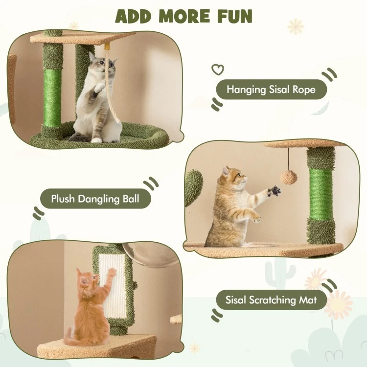 59 Inch Multilevel Cactus Kitty Activity Center with Scratching Posts Toy