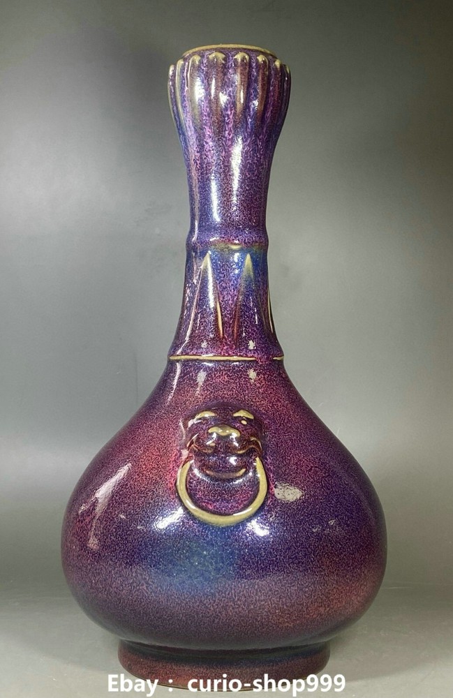 **** Welcome to our antique & Collectable Shop : Porcelain**** Description: Here is 5.9" Old Song Dynasty Jun Kiln Porcelain Double Beast Animal Head Bottle Vase. It is in good condition, and was created by skilled craftsmen in traditional style with fine handcrafts.This is a great piece of valuable collection, a valuable personal alter or a very good present. the handwork is very fine with incredible detailling. Don't miss out this chance to get it.Wish you good luck! . Material : Jun Kiln Porcelain Size : Heigh t Long 5.9 B readth 5.9 (inch) Condition Perfect Condition. Perfect, with no scratches, flaws or repairs. Weight: 2.7 KG----included the weight of packing materials Shipping cost to all over the world countries in Free Honored Customers: We are selling the collectibles products and crafts in Beijing ,China since 1993 and collected them all over the world all the time . In our shop the bronze sculpture, animal, vase, urn, flowerpot,Incense Burner.Table chair sets. Militaria goods. buddha statues, Bodhisattva Statues, Buddhist Ritual Items etc is our speciality .Many of the items we sell come from our own personal collection and have been in our family for a very long time .My great-grandfather was the first in this family to start collecting art & antiques when he still lived in San Xi and Tibet around 1922 ,some of the paintings he once collected can now be seen in museums around the globe.We won't make money from t he shipping cost, if you dislike the item when you receive it,we can refund all of your money to you within thirty days. Please confidence for bidding . We recommend the combine shipping and offer you an big price discount if you order more items together ! 2025.02.17 四 号