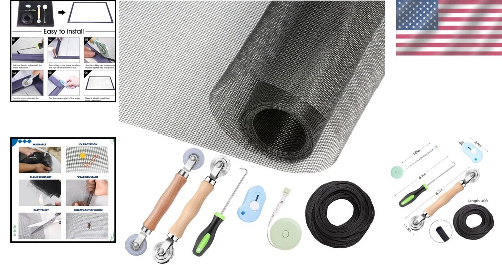 Comprehensive Window Screen Repair Kit - 59" x 106" Durable Fiberglass Mesh ‹ › ‹ › ‹ › ‹ › ‹ › ‹ › ‹ › ‹ › ‹ › Comprehensive Window Screen Repair Kit - 59" x 106" Durable Fiberglass Mesh Key Features: Includes all necessary materials: This improved window screen replacement kit comes complete with screen tools and easy-to-follow instructions. DIY Friendly: Perfect for novices and experts alike, you can effortlessly replace your screen in no time, saving you both time and money. Superior Screen Spline: Features a high-strength, elastic spline that is easy to press into the groove, ensuring a secure fit across most window screens, screen doors, and patio screens. Exceptional Durability: Constructed from fiberglass with a radial strength of ≥ 320N/Inch and weft strength of ≥ 280N/Inch, this screen boasts a service life of up to 5 . Smooth and Effective: Equipped with roller edges that ensure a smooth operation, the screen is designed to avoid cuts or tears during installation. Expert Support: Benefit from our extensive experience; out via email for guidance and tips for achieving professional results. Applications: Ideal for window screen repair, screen doors, sliding doors, porch screens, patio screens, and various DIY screening applications. Folded for shipment: Some minor creases may appear, but rest assured they will disappear once installed. Why Choose Our Window Screen Repair Kit? Transform your screens effortlessly with our Comprehensive Window Screen Repair Kit. Not only does it come with all the necessary tools and materials, but its durable fiberglass mesh ensures long-lasting performance. With its strong spline and user-friendly installation process, you can achieve professional-quality results without needing prior experience. Don’t let damaged screens spoil your view or comfort. Order your Comprehensive Window Screen Repair Kit today and restore your home’s elegance and functionality with ease! Shipping Free & Fast Shipping - We offer free shipping to most of the USA with a normal delivery time of 3-7 days. However, due to the current situation, additional delivery time (up to 3 weeks) may be required for some items. Alternative Carriers - We may use alternative carriers (e.g. USPS, FedEx, UPS, etc.) to ensure your package arrives safely and on time. Due to the use of multiple carriers, we are unable to provide a tracking number automatically. Handling Time - Orders are processed and shipped within 1-2 business days of receiving cleared payment. Shipping Restrictions - Shipping to Alaska, Hawaii, Puerto Rico, Guam, and other US territories may incur shipping charges or delivery restrictions. Please contact us before ordering, or your order can be refunded/cancelled. State Restrictions - There may be restrictions based on your state of purchase. For example, certain items may not be shipped to California due to state regulations. Contact for Tracking Updates - If you require tracking updates or have any concerns about the delivery of your order, please feel free to contact us, and we will be happy to assist you. Return 30-Day Hassle-Free Returns - We want you to be completely satisfied with your purchase. If you are not, you can return the item within 30 days of receiving it for a full refund or exchange. Easy Return Process - To start a return, simply contact us and we will provide you with a prepaid return shipping label and detailed instructions. Restocking Fee - There are no restocking fees for returns. However, the buyer is responsible for return shipping costs if the return is not due to a seller's error. Refund Processing Time - Refunds will be processed within 5 business days of receiving the returned item in its condition. Payment We accept all major credit cards, PayPal, and Apple Pay for your convenience. Your payment information is secure and encrypted to ensure a safe and seamless transaction. Please complete your payment within 3 days of purchase to avoid any delays in shipping. Feedback Your feedback is extremely important to us. We strive to provide the best products and customer service possible. If you are satisfied with your purchase, please take a moment to leave us a positive review. If you have any concerns or issues with your order, please contact us before leaving negative feedback. We are committed to resolving any problems and ensuring your satisfaction. Contact Us If you have any questions or concerns, please feel free to out to our customer support team. You can contact us through the eBay messaging system. We are available Monday to Friday, 9:00 am to 5:00 pm EST, and we will do our best to respond to your inquiry within 24 hours. Buy it now and enjoy a pleasant shopping experience! Model: Window Screen Repair Kit Unit Quantity: 1 Suitable For: Window Screen,Sliding Door,Screen Door,Patio Screen Door,Porch Screen,DIY Screening Applications Material: Fiberglass Features: Durable,Easy To Install,High Strength,Improved Elasticity Color: Black Type: Window Screen Repair Kit Number in Pack: 1 Item Depth: 3.11 in Item Thickness: 0.1 in Item Weight: 1.71 lb