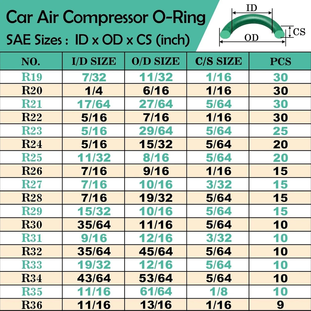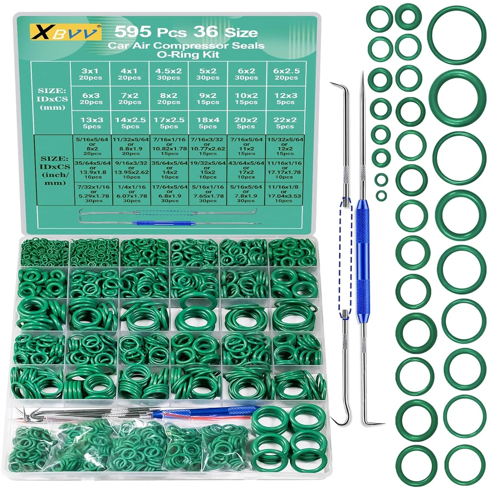 Store New Arrivals Add to Favorite View Feedback Contact 595 Pcs Metric and SAE Air Conditioning O-Ring Kit for Automotive A/C Compressor Description Style Air Conditioning O-Rings Color Green Material Rubber Country of Origin China Temperature Range -40℉ to 248℉ Degrees Fahrenheit Package Dimensions 9.61 x 8.15 x 0.79 inches; 10 ounces High-quality materials: air conditioner O-ring kits are made of Nitrile Rubber (NBR) 70, no contact corrosion, no contaminated media and no odor Advantages: good corrosion resistance, sealing, heat resistance, deformation, water resistance, abrasion resistance, especially gasoline and oil resistance, can prevent air, oil, gas and water leakage Wide application: NBR is widely used as O-ring material in the world. Widely used in a variety of water pumps, faucets, pressure washers, automotive air conditioning (A/C system), electronic appliances, workshop solenoid valves, mechanical bearings and other parts of the sealing DIY maintenance Multiple Sizes: Air Conditioner O-Ring Kits 36 different sizes of o-rings to meet almost all your different needs.The o-ring kits come in a plastic organizer box, which makes it easy to choose the size you need, very easy to use and find Air Conditioning O-Ring: Rubber O-Ring Automotive Air Conditioning Compressor Seal Repair Kit Product Description 595 Pcs Metric and SAE Air Conditioning O-Ring Kit for Automotive A/C, Compressor and Professional Faucet Plumbing Seal Orings Repair with O-Ring Picks ,Resist Oil and Heat (Green) Air Conditioning O-Ring Advantages Multiple Sizes 36 popular sizes of air conditioning o-ring kits for virtually all of your automotive air conditioning repair needs With o-ring removal hook Easy to use and remove the o-ring, it is a maintenance assistant Excellent kit One box storage, regular arrangement, with stickers corresponding to the size, easy to use Multiple sizes for your repair needs 275 PCS 18 Sizes Metric Air Conditioning O-Ring Sizes: ID x CS (MM) 3x1mm、4 x1mm、4.5x2mm、5x2mm、6x2mm、6x2.5mm、6x3mm、7x2mm、8x2mm 、9x2mm、10x2mm、12x3mm、13x3mm、14x2.5mm、17x2.5mm、18x4mm、20x2mm、22x2mm 320 PCS 18 Sizes SAE Air Conditioning O-Ring Sizes: ID x CS (INCH) 7/32x1/16、1/4x1/16、17/64x5/64、5/16x5/64、5/16x1/16、5/16x5/64、11/32x5/64、7/16x1/ 16、7/16x3/32、7/16x5/64、15/32x5/64、35/64x5/64、9/16x3/32、35/64x5/64、19/32x5/64、43/64x5/64、 11/16x1/16、11/16x1/8 Wide range of applications in life Air conditioner O-ring kits Widely used in automotive air conditioning (A/C system), compressors and faucets, water pumps, high-pressure washers, electronic and electrical appliances, workshop solenoid valves, mechanical bearings and other parts of the seal DIY repair ABOUT US We offer the best prices around on high quality products. Our E-store includes media such as books, movies, music and games while offering electronics, toys, sporting apparel, clothing, tools, general home, garden items and more. SHIPPING We are always working hard to ensure your package arrives as soon as possible. Please understand that some factors like weather, high postal traffic, and the performance of shipping companies are outside of our control. We offer free shipping to the lower 48 states and ship within 2 business days of payment, usually sooner. We do not accept P.O. Boxes. Please provide a physical address. RETURNS We offer a 30-Day Return Policy on items which you are not completely satisfied with. You have the option for a full-refund or an exchange of the item. No returns are available on items shipped outside of the USA. PAYMENT We accept PayPal. CONTACT US This page content is yet to come Please ad us to your favorite seller and visit again later Thank You CUSTOMER SATISFACTION We try our very best to make sure every customer is completely satisfied. If there's a problem, message us! We're happy to help.