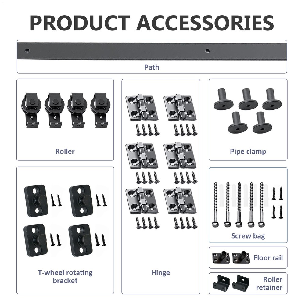 59in Black Bifold Sliding Door Track,Sliding barn door hardware kit,Brand New- Improved Capacity: Crafted with a robust 6mm thick track and nylon wheel combination, this sliding door kit features carbon steel material that significantly boost load-bearing capabilities. Space-Saving Design: Explore efficient ways of utilizing your room space with this folding door kit. This complete set contains all the necessary hardware for quiet and smooth sliding, freeing up valuable floor space and offering more design flexibility. Effortless Setup: Our Sliding Door Track Kit comes with easy-to-follow graphics and text, allowing for an effortless and stress-free installation. Say goodbye to complicated manuals and save time with our intuitive instructions. Multi-Functional Solution: Bring elegance and functionality to your home with our sliding door track kit. Enjoy a versatile solution that blends seamlessly with any decor, perfect for enhancing your dining room, barn door, study, and living room, and more. Enhanced Accessibility: Effortlessly enhance your home with this sliding door track kit. Easy installation makes it a perfect gift idea for family, friends, or anyone moving into a new house. Transform your dining room with complete sliding barn door kit. With bearings and nylon wheel combination roller, this kit comes with everything you need to upgrade your space. The included graphic & text installation parsing manual makes for easy DIY installation, perfect for family projects. Experience the charm of a sliding barn door without the hassle. Specification: Colour: Black Material: carbon steel Track size: about 58 inches (147CM) Track splicing method: 2 pieces Scope of application: Door panel thickness 0.5-50MM Packing list: 2x FT track 4x roller 4x roller swivel stand 2x roller holder 6x hinge 2x ground guide fixings 2x sealing strip 1x screw pack 1x instruction manual 5x pipe clamp 35mm 5x wood screws M8*90 Note: The door is not included. Due to different lighting and screen settings, the item color may be slightly different from the picture. Due to different manual measurements, please allow a 1-2cm difference in size. We accept PayPal payment,PayPal Credit,Credit card or debit card and so on. Payment should be completed within 4 (Four) days of auction closing. Or unpaid dispute will be filed for closing auction. We will leave a positive feedback immediately after payment is received. We appreciate a positive feedback as much as you do. If for some reason there is any issue with the purchase, please contact us prior to leaving feedback, we will be glad to work together and provide a satisfying solution. · Welcome to our eBay store. As a leading and emerging company in manufacturer and exporting business, we are specialized in Business and Industrial Products, Sporting Goods, Pet Products, Home and Garden products for more than 10 years. We believe that it is our vision and mission to provide innovative products with best service and competitive price to satisfy you. Our goal is to make sure that you can find exactly what you are looking for and make it easy for you to place your orders. · Email Customer Support: · 9:00am-2:00am PST Sunday-Friday All emails will be responded to within 12-24 hours