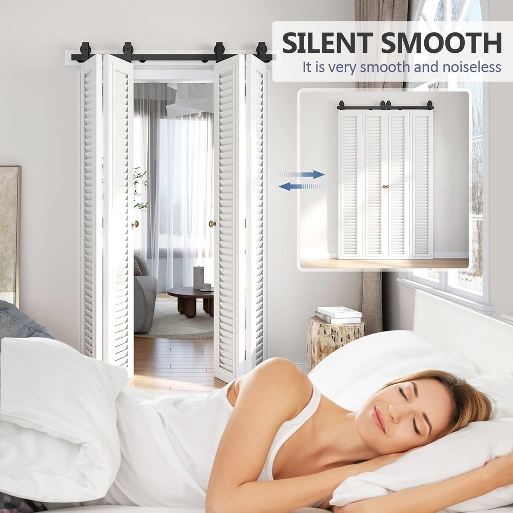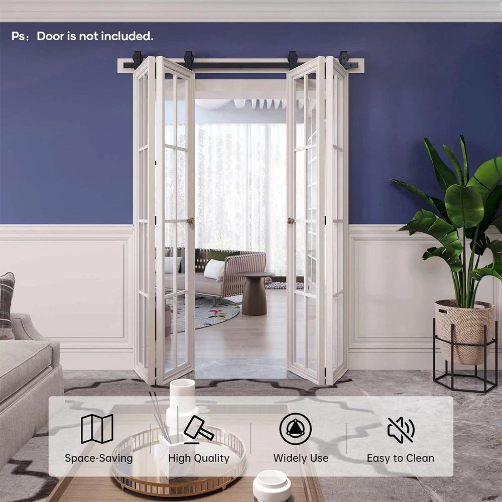 70in Bifold Sliding Door Track,Sliding barn door hardware kit,Black,Brand New-