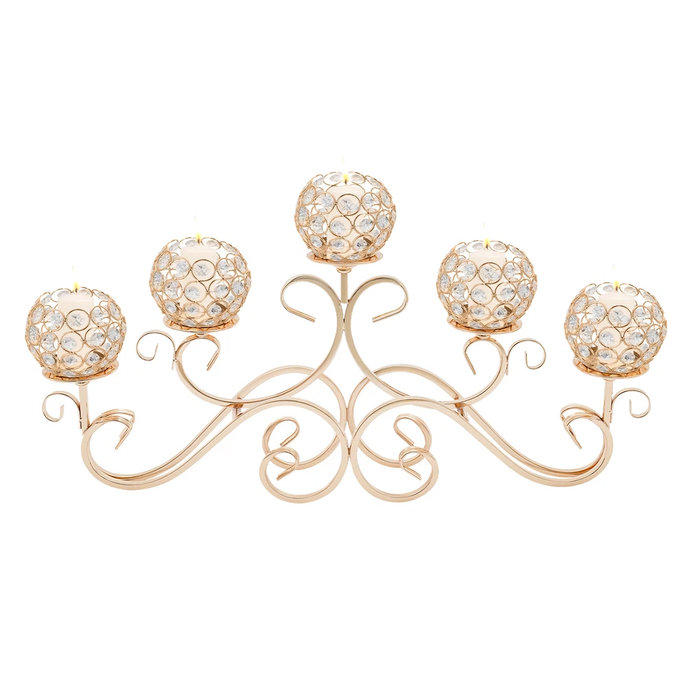 Description Our 5-arm crystal candle holder is a combination of home decor and romantic ambiance. On the occasion of a romantic dinner with your loved one, the candle emits soft and charming light through the crystal, creating a warm and romantic atmosphere for the dinner. Even if the candle is not lit, it is an artistic ornament in itself and can be placed on the porch, bookshelf, or dresser to show your taste. Whether it is a choice for your own home upgrade or a gift for relatives and friends, it is a good choice. Key Features Super Solid: It is made of iron and K9 crystal, treated with welding and electroplating processes to make it durable, wear-resistant, rust-resistant, and not easy to corrode and fade. Unique Appearance: It adopts a noble and elegant gold, each candlestick head i 5-Arm Crystal Drops Candelabra Wedding Table Centerpieces Candle Holders Decor Description Our 5-arm crystal candle holder is a combination of home decor and romantic ambiance. On the occasion of a romantic dinner with your loved one, the candle emits soft and charming light through the crystal, creating a warm and romantic atmosphere for the dinner. Even if the candle is not lit, it is an artistic ornament in itself and can be placed on the porch, bookshelf, or dresser to show your taste. Whether it is a choice for your own home upgrade or a gift for relatives and friends, it is a good choice. Key Features Super Solid: It is made of iron and K9 crystal, treated with welding and electroplating processes to make it durable, wear-resistant , rust-resistant, and not easy to corrode and fade. Unique Appearance: It adopts a noble and elegant gold, each candlestick head is decorated with crystal, which can reflect the charming light, like the twinkling stars in the night sky, instantly enhancing the luxury of space. Suitable Size: The reasonable size design enables it to become a focal decoration in the center of a large dining table, and can also be used as an ornament in the living room, bedroom, and other spaces, whether it is for daily use or special occasions can be easily fit. Candle Companion: Using it with candles (not included) will bring light to your space and give you a sense of security with its light in the event of a power outage. Simple Installation: Simple construction and complete accessories make it easy to assemble this product and enjoy the process. Easy to Clean: Thanks to its simple structure and smooth surface, you can wipe the dirt from it with a soft cloth (not included), which is convenient. Ideal Gift: Thanks to its practicality and beauty, you can give it to your friends as a holiday or housewarming gift! Buy with Confidence: We stand behind all our guests and look forward to assisting you with your purchase. It is our pleasure to answer your confusion and questions. The end of the story between us is not "we sell and you buy". Details Rounded Edges: They provide the product with soft lines and a better look, and can also protect your hands from scratching during use. Stable Base: The width is 3.94in , and the force area is large, which makes the product can be placed stable. Application It is suitable for flameless and safe electronic candles, and tea light candles with a diameter no larger than 1.5 inches . It can be applied to the home, such as the living room, bedroom, study, etc. It can also be used as a decoration item for hotels, restaurants, weddings, parties, celebrations, and other places. Specification Color: Gold Style: Modern Material: Iron, K9 Crystal Process: Welding, Electroplating Mount Type: Freestanding Assembly Required: Yes Applicable Candle Diameter: Within 3.8cm/ 1.5 in Applicable Candle Type: Flameless and Safe Electronic Candles, Tea Light Candles Overall Product Size: 64* 10* 34cm/25.2* 3.94* 13.39 in Lowest Head Height: 22cm/8.66 in Package Size: 58*10*28cm/ 22.83 * 3.94 * 11.02 in Gross Weight: 3.4 kg/ 7.5 lbs Net Weight: 2.7 kg/ 5.95 lbs Package Included 1* 5-arm Crystal Candle Holder 5* Screws Notes Please note that candles are not included in the package. Please use the candle holder on a flat area. Please keep it away from children and pets. Please allow the slight color difference caused by the shooting light and 1-3cm error due to manual measurement, and make sure you do not mind before ordering. Payment Delivery details Terms of sales About us Contact us Payment We accept ebay payment 。 Fees such as import duties, taxes are not included in the item price or shipping costs. These charges are the buyer's responsibility. Delivery details Shipping: 2-9 working days to: USA Terms of sales We maintain high standards of excellence and strive for hundred percent customer satisfaction. Feedback is very important to us. We hope that you contact us immediately before you give neutral or negative feedback, so that we can address your concerns. It is impossible to address issues if we do not know about them! About us Your satis faction is our ultimate goal. We work hard to earn your trust and future business. Our certified technicians have tested each item before shipping. The unit comes with 1 year limited warranty on all manufacturing defects. a) If you receive a defective item, you may return it or ask for a discount. Please contact us within 14 days after you receive the package. b) What you returned must be intact and in its original packaging as re? u. Customer is responsible for shipping costs of the returned item. c) We will cover the cost of shipping back t with the shipping rate indicated in the registration page. We will send you a new unit or refund the full payment you paid. Thank you. Contact us Business Hour Business Hour: Monday To Friday: 8:30 AM to 5:00 PM (Beijing China time) Due to time zones, our reply to your questions may not be immediately. But within above working time, we will reply your email within 24 hours. If it's non-workdays, please kindly be patient and wait till Monday. Please contact us with ebay message. Please feel free t