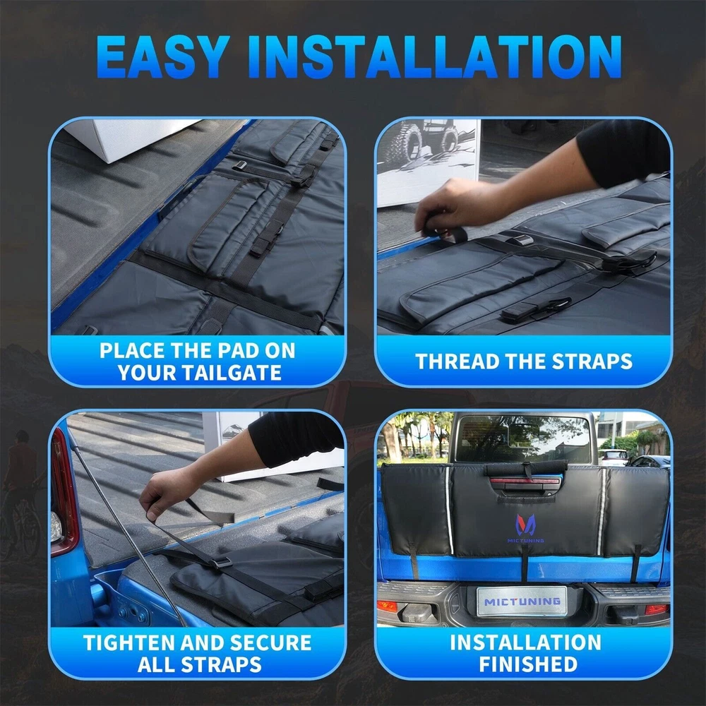 Hot Selling Parts UK Stock-Hot Sale US--LED Rock Lights US--Light Strip US--Swtich Panel US HOT SALE Tailgate Bike Pad for 5-Bike Racks Pickup Truck Bed Tailgate Protector Cover US MICTUNING Tailgate Bike Pad for Mountain Bike, Secure 5 Bikes on Truck, with Reflective Strips and Tool Pocket, for Outdoor Bicycle Transportation About the item: Secure Transport for up to 5 Bikes - Our 50"L X 16.5"H X 8.25"D Tailgate Pad Features Adjustable Straps That Hold up to 5 Bikes Firmly in Place, Protecting Both Your Truck and Your Bikes from Scratches or Damage During Transport Built for All Weather Conditions - Made from 600d Pvc, the Bike Pad's Waterproof and Abrasion-resistant Outer Layer Protects Against the Elements. the Soft Flannelette Inner Layer, Combined with a Thick Shock-absorbing Pad, Ensures Your Bikes Stay Safe and Steady on Bumpy Roads Enhanced Safety with Reflective Strips - High-visibility Reflective Strips Improve Safety During Nighttime or Low-light Trips, Making Your Truck Easily Noticeable to Other Drivers Backup Camera-friendly Design - Features a Roll-up Window That Aligns with Your Backup Camera, Maintaining Full Functionality for Hassle-free Parking and Navigation Tool Pocket on the Back - Keeps Your Repair Tools and Small Accessories Organized and Easily Accessible, Ensuring You're Always Prepared for Your Outdoor Adventures Why Choose the MICTUNING Tailgate Bike Pad? The MICTUNING Tailgate Bike Pad is your ultimate solution for secure bike transportation. It safely holds up to 2 bikes/5 bikes/ with adjustable straps, protecting your truck and bikes from damage. Crafted from durable 600D PVC. Waterproof, weather-resistant, and shock-absorbing. Reflective strips enhance safety in low-light conditions. The convenient pocket keeps tools and accessories within reach. Universal fit and easy installation make it a breeze for any truck owner. Payment Delivery details Terms of sales About us Contact us Payment - We accept internet transfer, bank deposit and all major credit cards through Payoneer. - If you want to delay the payment due to financial issue, please contact us via eBay message within 3 days. Delivery details - ONLY ship to Payment shipping address. Please leave detail address in the order. - As for PR / HI / GU states, please type in "US" on the country blank. - Expedited Shipping is Available, please contact us for more shipment service and postages if needed. Terms of sales International Buyers – Please Note: Import duties, taxes and charges are not included in the item price or shipping charges. These charges are the buyer's responsibility. Please check with your country's customs office to determine what these additional costs will be prior to bidding/buying. When you receive item damaged, defective, not as described or wrong item, please email us with pictures within 48 hours. To resolve any problem better and faster: 1. All labels with clear words on the package are needed. 2. The real goods you received with packing details. 3. Different angles of the products and package to show the problem clearly. Please note we do not accept International Return (For customer who purchase via Global Shipping Program) About us Working Time: - Usually from 9:30 AM-18:00 PM, Monday to Saturday. - Off-duty on Weekends, and national vacations. - We are committed to solve all issues in a friendly and satisfactory manner. - Thanks for your supporting. Your good feedbacks and product reviews are much appreciated. Contact us - Anything needed help, please contact us via message before opening a request/case, we'll soon reply you. - We usually reply emails in 2 business days. So if you have any product issues needed help in urgent, attach us clear pictures to show them, which better help to solve your problem.