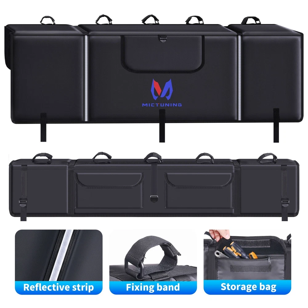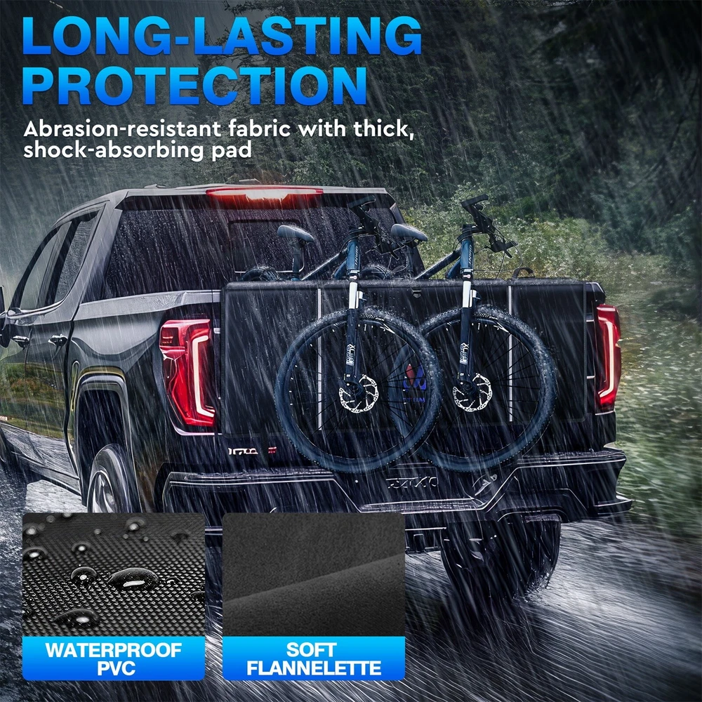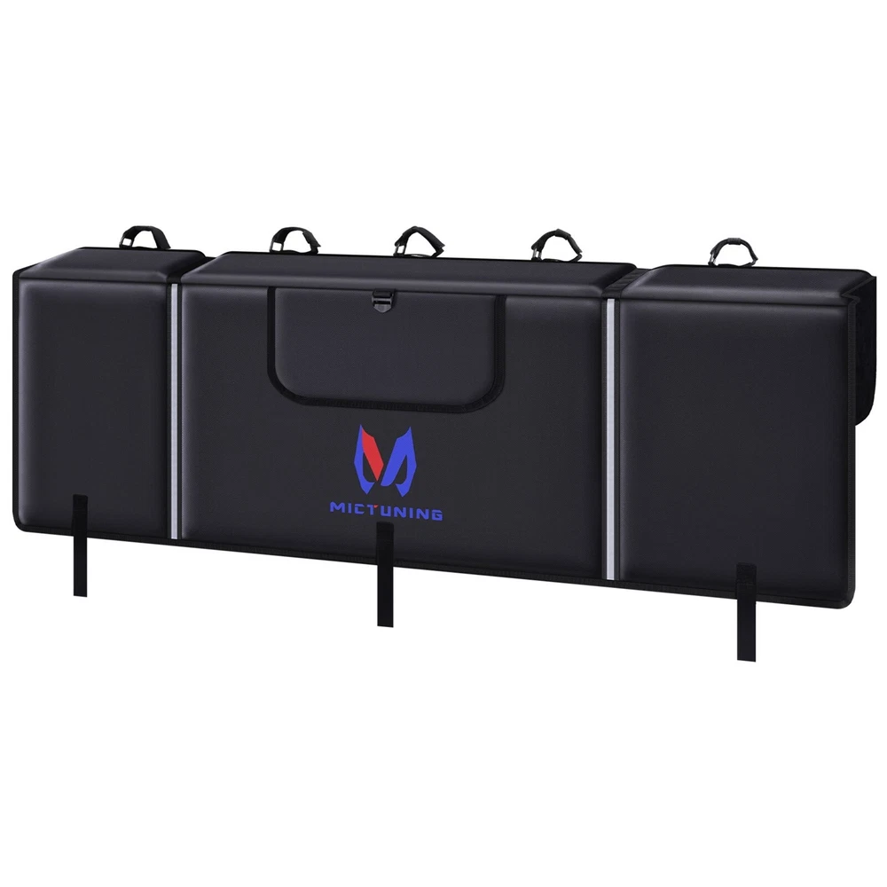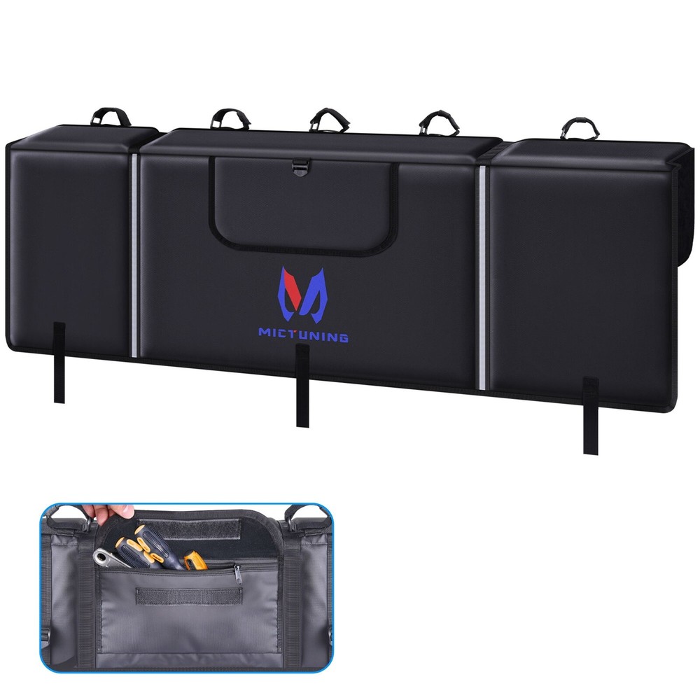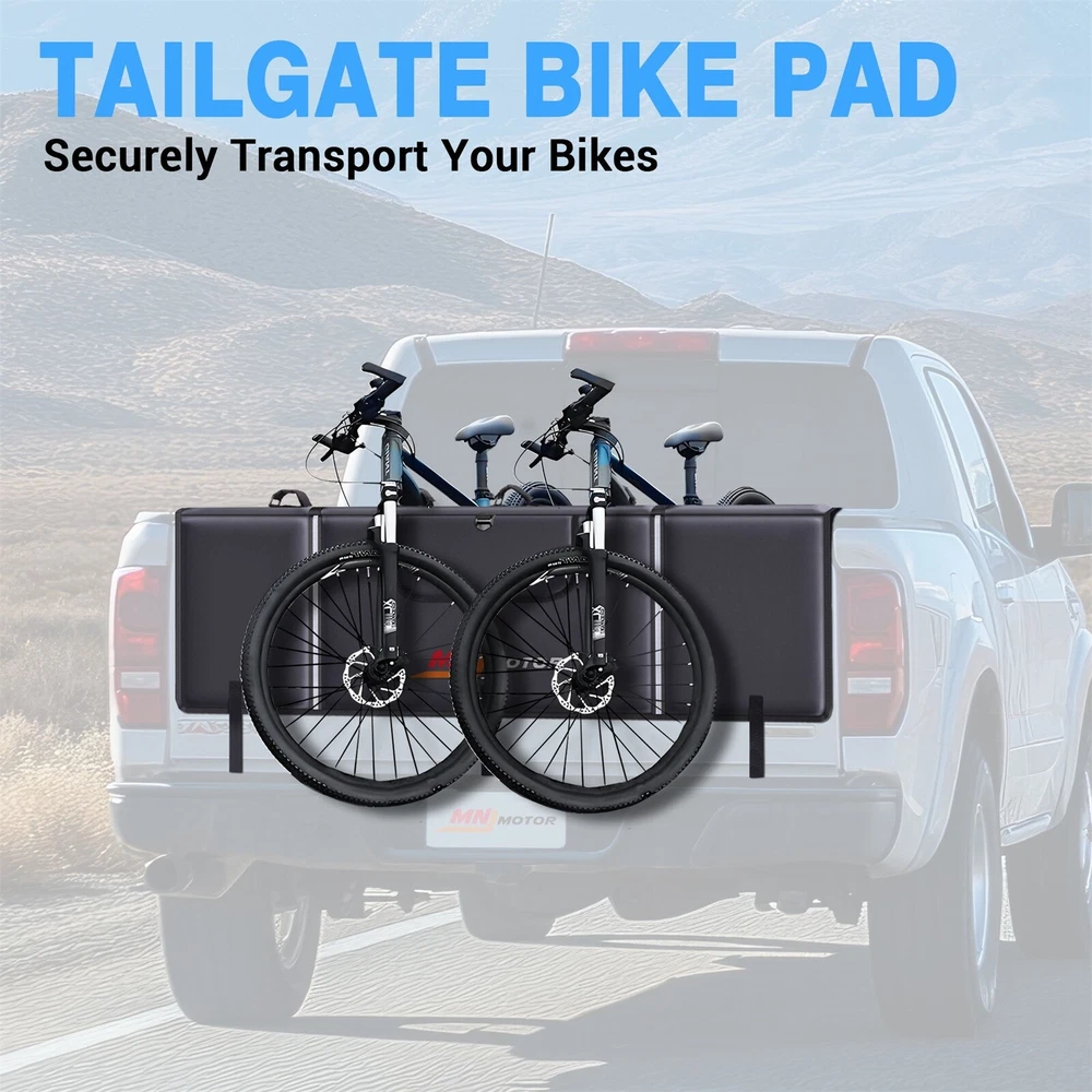 Tailgate Pad Bike Rack for 5-Bikes Tailgate Pad Pickup Truck Bed Protector Cover MICTUNING Tailgate Bike Pad for Mountain Bike, Secure 5 Bikes on Truck, with Reflective Strips and Tool Pocket, for Outdoor Bicycle Transportation About the item: Secure Transport for up to 5 Bikes - Our 50"L X 16.5"H X 8.25"D Tailgate Pad Features Adjustable Straps That Hold up to 5 Bikes Firmly in Place, Protecting Both Your Truck and Your Bikes from Scratches or Damage During Transport Built for All Weather Conditions - Made from 600d Pvc, the Bike Pad's Waterproof and Abrasion-resistant Outer Layer Protects Against the Elements. the Soft Flannelette Inner Layer, Combined with a Thick Shock-absorbing Pad, Ensures Your Bikes Stay Safe and Steady on Bumpy Roads Enhanced Safety with Reflective Strips - High-visibility Reflective Strips Improve Safety During Nighttime or Low-light Trips, Making Your Truck Easily Noticeable to Other Drivers Backup Camera-friendly Design - Features a Roll-up Window That Aligns with Your Backup Camera, Maintaining Full Functionality for Hassle-free Parking and Navigation Tool Pocket on the Back - Keeps Your Repair Tools and Small Accessories Organized and Easily Accessible, Ensuring You're Always Prepared for Your Outdoor Adventures Payment Delivery details Terms of sales About us Contact us Payment -PayPal - We ONLY ship your item to your PayPal shipping address. If you want your package to be sent to any address other than your Paypal shipping address. -Please state it clearly in the PayPal note section and also confirm with us by sending message. -Payment is expected within 5 days after auction end. This is serious business, so please make sure you are serious before bidding the item. Delivery details -All the orders will be processed within 2 business day after payment received. -Tracking number will be uploaded after we ship it. Please don't worry. -If there's any delivery issue, feel free to contact us in time before file a case. Thanks. Terms of sales Replacement is available for wrong or defective item receipt within the first 30 days , it's free of extra charge. Please contact us for the return procedure. About us Our working time: Beijing Time: 9:30-18:00 from Monday 9:30 to Saturday 18:00 New York Time: 21:30 – 6:00 from Sunday 21:30 to Saturday 6:00 Please just leave us message, we will reply you as soon as possible. Contact us -We will leave positive feedback for each buyer firstly . If you are happy with the transaction, please give all 5-star ratings. Thank you in advance! -We value client service as well as product quality. Please don't leave us any negative feed back if there is something wrong with the product or you just not satisfied with the item. Please just feel free to contact us if there is any issue ,you will receive answer within 24 hours and we will offer the best offer to the issue. -We try our best to provide you happy solution by communication. -Welcome to place order from us! Wish you a happy shopping!
