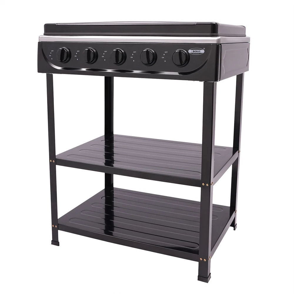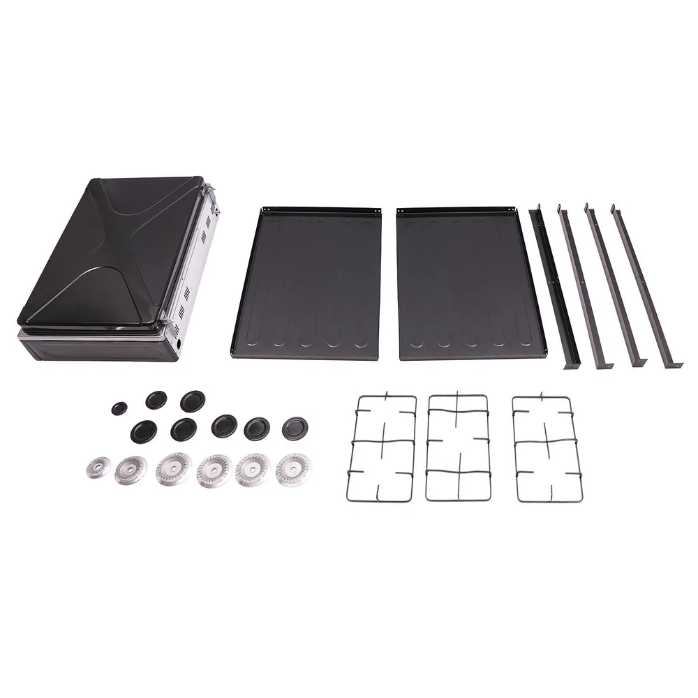 5-Burner Gas Stove Outdoor Camping Cooking BBQ Grill With 2-Tier Storage Rack Description Description This sophisticated natural gas stove features an ingenious five-burner configuration that is carefully customized for modern cooking spaces. Equipped with control knobs that allow gourmets to effortlessly and precisely regulate heat, it harmoniously combines efficiency, versatility, and visual appeal, transforming the art of cooking into a pleasurable and immersive experience. Key Features Sturdy and Durable: It selects a high-strength high-temperature-resistant panel with an iron shell(after spray molding process), an enameled cover, and a die-casting aluminum base, which has high-temperature resistance, scratch resistance , and everlasting newness. Efficient Work: It has five burners that support you to use them at the same time, while each burner has a combustion power of up to 2.5KW, which allows you to finish the cooking work efficiently and greatly reduces the cooking time. Independent Control: Equipped with five control knobs, it can realize independent control of individual burner fire and use, effectively meeting your actual needs. Each burner is equipped with a precise fire adjustment knob, you can adjust the fire size as you like to meet various cooking needs. Also, you can adjust the fire size as you like to meet various cooking needs. Rapid Heat Dissipation: It is designed with multiple heat dissipation holes to prevent the stove from getting too hot and affecting the safety of use. Energy-saving Design: Compared with other stoves, it can effectively reduce energy waste and is more economical and environmentally friendly for long-term use. Easy to Clean: Its smooth surface and removable bracket greatly simplify the daily cleaning work, you can finish cleaning with a rag(not included). Easy Installation: Thanks to its simple construction and complete accessories, you can quickly put it together and start cooking. Customer Service: We aim to provide quality products and services. If you have any problems, please feel free to contact us. We will reply and solve the problem for you as soon as possible. Details Placement Board s: It is designed with two placement boards for you to conveniently place ingredients, vegetables, condiments, dishes, etc. that you need when cooking (all not included). Non-slip Feet: Its four non-slip bottom feet hold the stove steady and prevent accidental collapse and movement from affecting cooking safety. Thoughtful Cover: It comes with a cover that can effectively block wind and dust, providing a cleaner and safer environment for use. Raised Feet: The 2.56-inch foot promotes air circulation and reduces the direct erosion of ground moisture on the bottom of the gas stove, prolonging its service life. Smooth Edges: The smooth and burr-free edges enhance the beauty of the product and better care for your skin when installing and cleaning it. Application This natural gas stove with 5 burners is suitable for stir-frying, cooking pasta, boiling soup, etc., and is suitable for outdoor activities such as camping, fishing, RV travel, and emergency preparedness. Specification Material: Iron, Enamel, Aluminum Color: Black Shape: Rectangular Process: Spray Molding, Die-casting Mount Type: Freestanding Assembly Required: Yes Number of Burners: 5 Number of Knobs: 5 Fuel Type: NG/LPG(Requires a low-pressure valve to be self-provided for use together) (Each) Combustion Power: 2.5KW Ignition Mode: Manual Ignition (Each) Placement Board Size: 61.5*42.5cm/24.21*16.73in Placement Board Spacing: 30.5cm/12.01in, 25cm/9.25in Bottom Foot Height: 6.5cm/2.56in Stove Size: 64*44.5*16.5cm/25.2*17.52*6.5 in Total High: 82cm/32.28in Package Size: 66*50.5*21.8cm/25.98*19.88*8.58in Gross Weight: 10kg/22.05 lbs Package Included 1* Natural Gas Stove with 5 Burners All Accessories for Use Notes Please check the style and size before purchasing. Please note that this product does not contain natural gas . Please note that this product does not have a threaded air connection, so please use an unthreaded hose (not included) and attach it directly with a hose clamp. Notes : 1.The product requires customers to bring their own ordinary flexible hoses with an inner diameter of 10mm and without threads (no need for metal joints). 2. After installing the gas pipe, please conduct a test before use to avoid potential safety hazards caused by gas leakage. Welcome to lighttaaal01 Welcome to lighttaaal01 Payment Delivery details Terms of sales About us Contact us Payment We accept ebay payment 。 Fees such as import duties, taxes are not included in the item price or shipping costs. These charges are the buyer's responsibility. Delivery details Shipping: 2-9 working days to: USA Terms of sales We maintain high standards of excellence and strive for hundred percent customer satisfaction. Feedback is very important to us. We hope that you contact us immediately before you give neutral or negative feedback, so that we can address your concerns. It is impossible to address issues if we do not know about them! About us Your satis faction is our ultimate goal. We work hard to earn your trust and future business. Our certified technicians have tested each item before shipping. The unit comes with 1 year limited warranty on all manufacturing defects. a) If you receive a defective item, you may return it or ask for a discount. Please contact us within 14 days after you receive the package. b) What you returned must be intact and in its original packaging as re? u. Customer is responsible for shipping costs of the returned item. c) We will cover the cost of shipping back t with the shipping rate indicated in the registration page. We will send you a new unit or refund the full payment you paid. Thank you. Contact us Business Hour Business Hour: Monday To Friday: 8:30 AM to 5:00 PM (Beijing China time) Due to time zones, our reply to your questions may not be immediately. But within above working time, we w