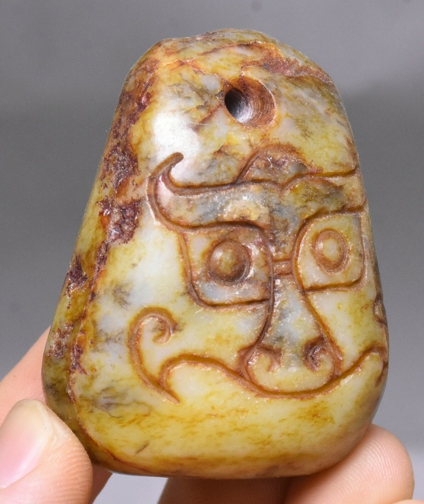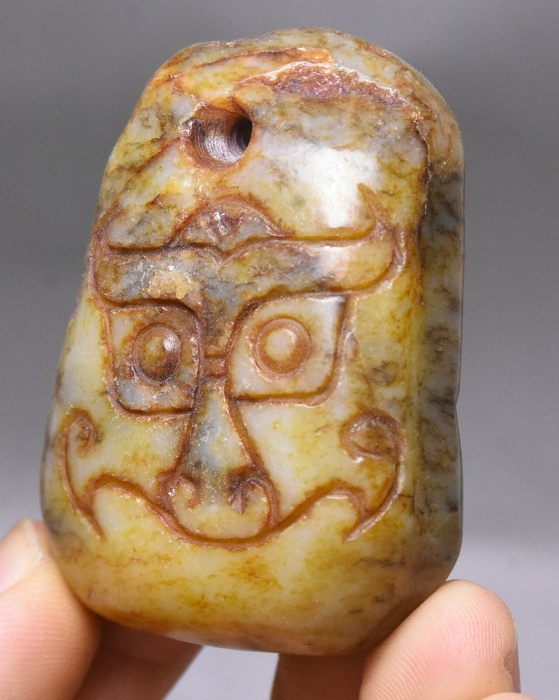 $ 13.28CM Hongshan Culture Ancient Jade Beast Face Amulet Pendant
