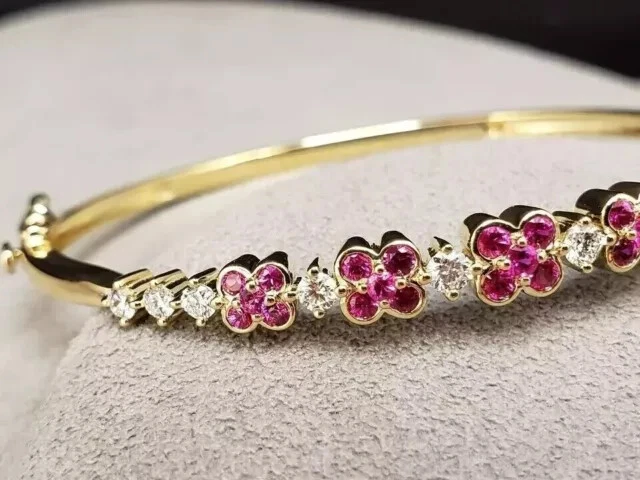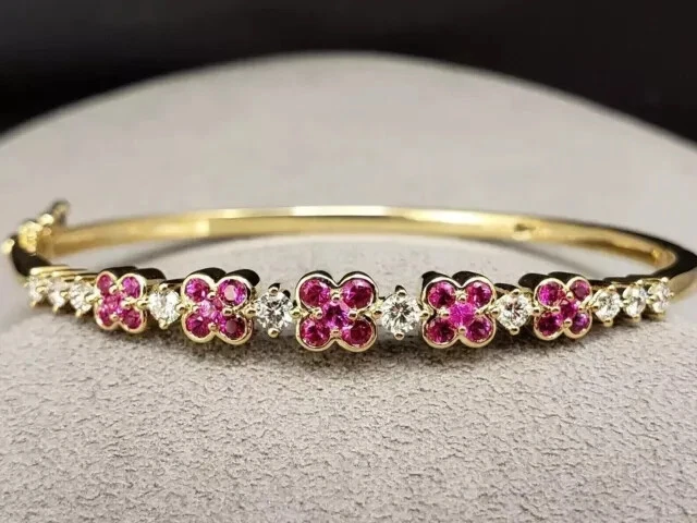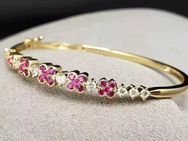 5Ct Round Cut Simulated Pink Ruby Women's Bangle Bracelet 14k Yellow Gold Plated