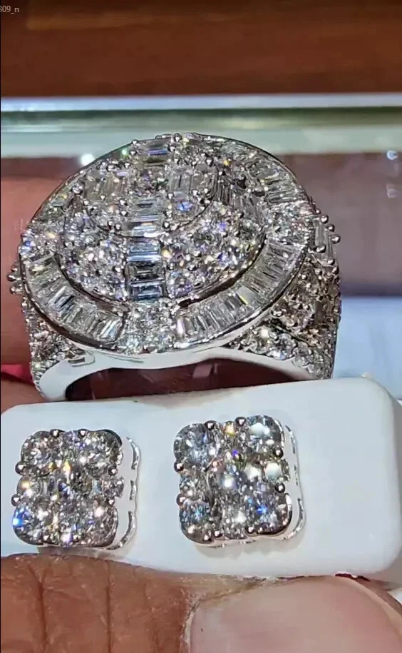 Welcome New Star Jewels 5Ct Round Real Moissanite Men's Ring & Earrings 14K White Gold Plated All Size7 We offer Customization If you want to add personal touch to this piece contact us and we will create one just for you. You can customize the following things given below : 1. Ring Resizing 2. Redesign 3. Metal Change ( solid / 10k Gold / 14k Gold / 18k Gold ) 4. Metal Color Change ( White / Rose / Yellow ) 5. Color Stones ( Red / Green / Yellow / Blue / Black ) 6. Engraving ( No. of characters will subject to size and space in the jewelry Payment Policy 1. We accept payment via PayPal only. 2. You can also use a credit card for payment by using PayPal as a guest. 3. Payment is required within 3 days after buying. Shipping Policy 1. We ship worldwide. 2. Handling time is 5 business days after receiving clear payment and ring size confirmation. ( Business days excludes Saturdays / Sundays and Public Holidays. 3. Delivery time will be 3-4 working days (which may extend during peak season time). 4. Kindly provide complete address and contact number for hassle free shipping. Expedited Shipping Expedited shipping with online tracking and delivery confirmation within 3-5 working days can be availed on request. Return Policy 1. We accept returns only if there is any manufacturing defect or in transit damage. 2. Refund amount is based on product's price you have purchased for. 3. Please remember to contact us before sending any item back. 4. For incomplete or wrong address we are not liable for any return. 5. If the buyer wants to return the item for his/her own personal reasons ( without any valid reason of item received in damage condition or unless it is defective ) the return shipping charges will be born by buyer. Buyer's Feedback 1. Your feedback is very important to us. 2. Do remember to give us 5 star rating if you are satisfied with our product and service. 3. If you have any queries related to the product or service you can expect a reply within 12-48 hours of inquiry. 4. Do contact us before leaving a negative or neutral feedback to get a 100% solution for the dissatisfaction caused to you. Contact Us Feel Free to contact us for any queries about the product through " Ask Seller a Question " Thank You Visit Again.