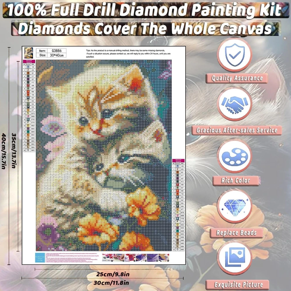 5D Cat Diamond Painting Kits for Adults DIY Flower Cat Diamond Art Kits for Begi 【Why Choose Our Diamond Painting】KYOQFVN has been specializing in diamond paintings for many years and we offer high definition canvases with clear,easy to read numbers and characters on the canvas. We provide an additional 30% of diamonds to ensure that you have enough to complete the flower cat diamond painting. 🐱【Benefits of Diamond Painting】The diamond art kit will encourage children's creativity, improve their critical thinking and communication skills, can develop their patience, and greatly improve fine motor skills. diamond art painting is perfect for developing fine motor skills because it requires a great deal of patience to accurately place the diamonds. 🐱【An Amazing DIY】The 5d diamond painting for adults is an excellent for adults or children. You can give it as to family, friends and colleagues at christmas, thanksgiving and birthday. In the process of making diamond painting, you can experience the sense of achievement, release pressure, adjust emotions, enhance self-confidence, and cultivate patience and perseverance.