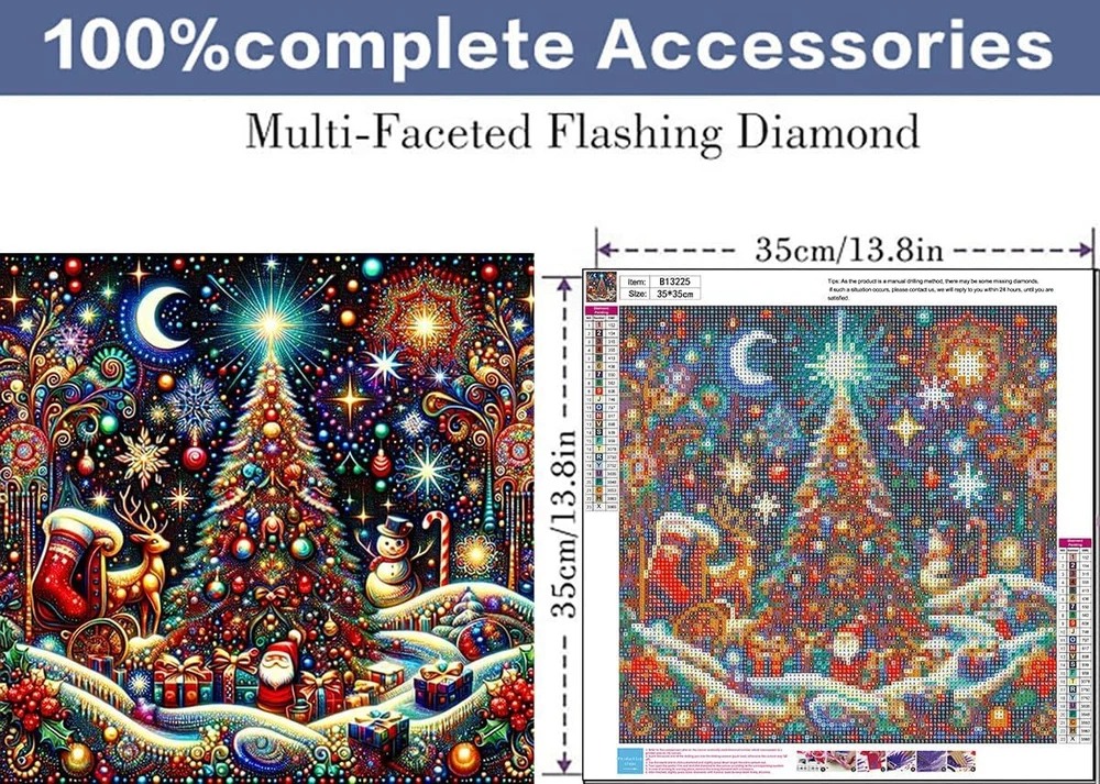 Free eBay listing template designed by dewiso.com Christmas Tree Diamond Painting Kits for Beginner - 5D Christmas Tree Diamond Art Kits for Adults, DIY Christmas Diamond Painting Gem Art, Diamond Art Painting for Home Decor Wall Gifts 14X14Inch FREE AND FAST SHIPPING! About this item 【Christmas Tree Diamond Painting Kits For Adults】Our Christmas Diamond Art Paintings Use 14X14 Inch (35X35 cm) High-Definition Printed Canvas as the Drawing, which is not Easy to Fade and will not Cause Eye Fatigue. It Uses Environmentally Friendly Odorless Adhesive with Super Strong Bonding Performance to Ensure Long-Term Preservation and Prevent Diamonds from Falling Off Easily. 【Diamond Painting Christmas Tree Kit - Gift 30% Diamonds】Each Part of the Christmas Diamond Painting Kit Contains 30% Extra Diamonds. This Means You don't Have to Worry about Running Out of Diamonds or not Having Enough Beads to Finish the Painting. with Enough Beads, You can Create a Stunning and Well-Covered DIY Diamond Painting. 【Christmas Tree Diamond Art Kit - Full Of Fun】Christmas Diamond Painting can Enrich Your Leisure Time and Help Relieve Stress. You will Get a Piece of Art When You are Finished, Just Hang It on the Wall, It will Make Your Room and Add More Fun to Your Life. 【Diamond Art Christmas Tree Painting - Ideal Gift】5D Christmas Diamond Art is not Only a Work of Art, but also a Perfect Gift for Family, Friends and Colleagues, New Year Gifts, Christmas Gifts, Birthday Gifts and Various Festival Gifts, It is also a Good Thing to Help Relieve Stress, Enjoy Your Slow Time, It is an Interesting Hobby, It Helps to Get Rid of Stress. 【100% Service Guarantee】We Attach Great Importance to The Quality of Christmas Tree Diamond Art Kits and also Attach Great Importance to Customer Experience. If You have Any Problems, Such as Missing Diamonds or Tools, Please Feel Free to Contact Us for a Refund or Exchange. We will always be Here to Help You. Product We offer a 30-Day Return Policy on items which you are not completely satisfied with. You have the option for a full-refund or an exchange of the item. No returns are available on items shipped outside of the US . Shipping We offer Free Shipping to the US and ship within 2 business days of payment, usually sooner. We use UPS express shipping. That's why your products are usually delivered within 3 days . Contact We try our very best to make sure every customer is completely satisfied. If there's a problem , message us! We're happy to help. 24/7 live chat available.