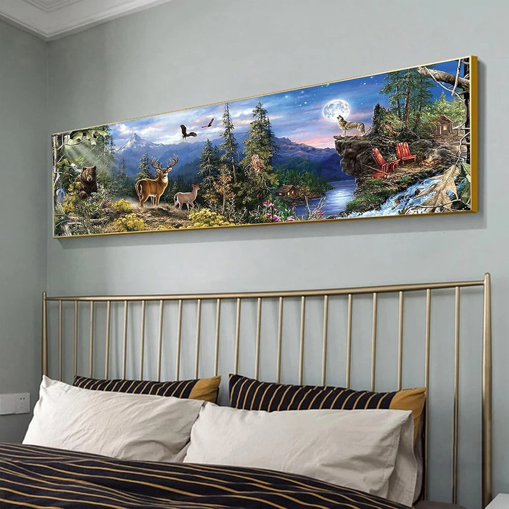 About this item 💎【Popular Diamond Art】: This is a popular Forest diamond art kits for adults and kits. Creating your own art is ecstatic and entertaining, YALKIN diamond painting kits are fun and easy to paint. 💎【Super Sparkle Diamonds & Best Size】: 35.4x11.8inch round full drill forest diamond painting kits. Finished item is colorful, three-dimensional and vivid, easier and more beautiful than cross-stitch. All sparkling diamond kit will never fade and shining, Match the most suitable diamonds according to the image, more virbrant. 💎【HD Canvas & Add More 20% Diamonds】DIY Diamond Painting Full Drill with high clear printing oil canvas is waterproof and has even texture, the pattern itself has a sticky background and plastic overtop to keep the picture sticky and then the gems will hold, so that you are easy to complete the picture. We provide additional 20% drill diamonds dots. 💎【Fun Experience & Enjoy Easy Time】DIY diamond painting with your family and friends during the holiday is very interesting. Meet your favorite hobby, let you feel the stress just melt away as you Paint With Diamonds. It can not only enhance your hands-on ability, self-confidence and perseverance cultivate patience, but also enjoy the fun of collective collaboration. The elderly and children are suitable 💎【Best Decoration of Room and Great Gifts】Cross Stitch Diamond Painting is perfect to decorate your office, living room, dining room, bedroom, bathroom, study, hallway, bar, and so on. This is the modern way to brighten the walls of your home, and relax you after work. It is sure to captivate wherever it is hanging. It will be wonderful gifts for family and friends