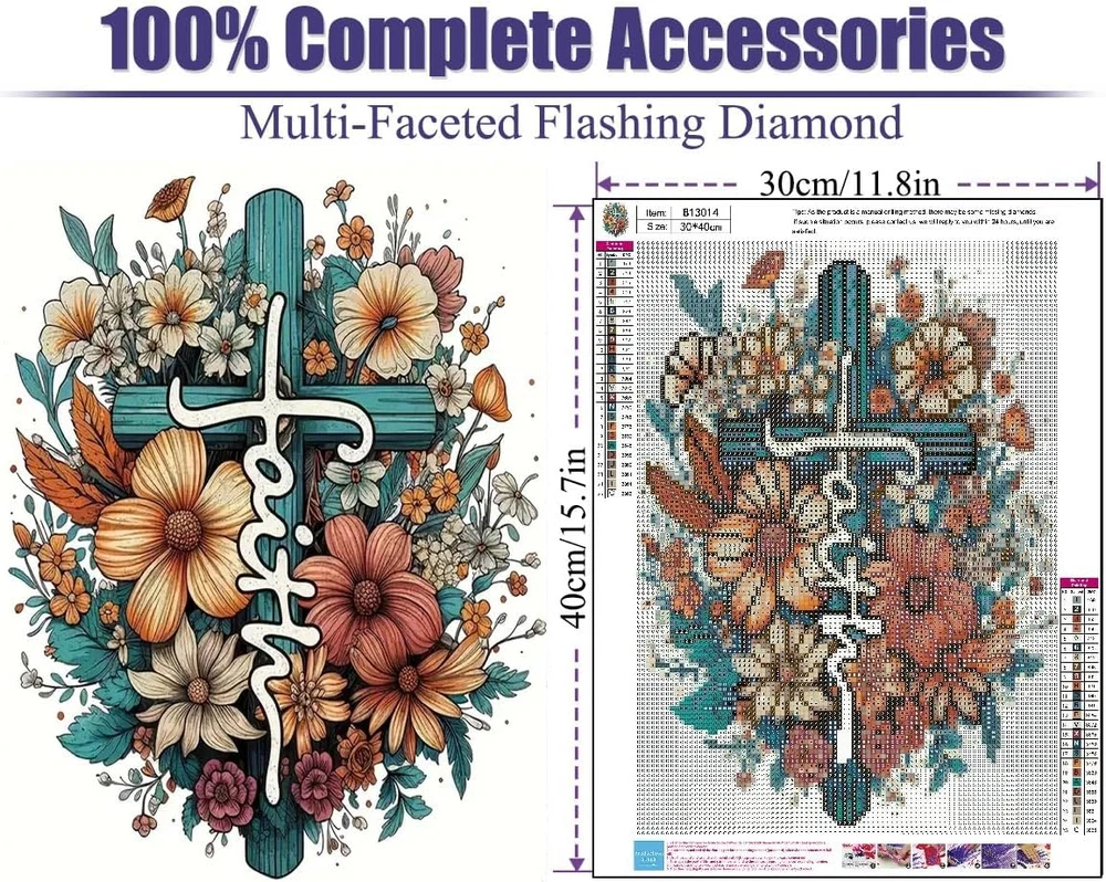WHAT YOU WILL GET: Each Cross Flower diamond painting kit comes with everything you need to get started! 5D Diamond Painting Kits for Adults Canvas+Round Diamonds +one set of Tools. Each diamond painting is individually wrapped with it’s own set of tools and diamonds. 1 adhesive canvas, 1 diamond applicator pen, 1 wax, 1 tray and enough round diamonds, 10 zock bags. 1 pen cap. It comes with all of the necessary items to help you finish the diamond art! CLEAR SYMBOLS: Easy to read numbers& letters,Adults' Paint-By-Number Kits Cross Flower diamond art numbers and symbols on the HD canvas are clear and easy to read. The diamond art painting we choose are carefully selected by the team, when you finish this work, you will definitely feel full of accomplishment and love this diamond art for adults. HOME WALL DECOR: This Cross Flower diamond painting can be perfectly decorated in living room, bedroom, study, office and other occasions. When people see it, they ask for their diamond art kits for adults. EASY FOR Adults: The DIY Cross Flower Diamond paiting is great for adult, beginners, art beginner, drawing favor, enrich your space time, give you a different life style. enhance self-confidence and cultivate patience. Cross Stitch meets Paint By Numbers! It let your mind wander and feel the stress melt away, It is also a perfect gift for DIY hand-made enthusiasts AFTER-SALES SERVICE:If your Cross Flower diamond art kits for adults are missing diamonds or encounter any other problems, please feel free to contact us at anytime,we will make sure to resolve all your concerns within 24 hours. Our Cross Flower diamond painting kits use high-quality canvas, the canvas is clear, waterproof, without creases, the letter symbols are clear and easy to understand, the DMC code on the canvas corresponds to the color of the drill bit, and the canvas uses environmentally friendly water-based glue, which is strong. Make sure that the drill bit will not fall off. This Cross Flower diamond art kit for adults is 100% full diamonds, individually packaged diamonds (30% more diamonds), round dots, so you can use more frustrated than square diamond painting Diamonds are painting. 5D Cross full drill gem arts crafts can be preserved for many years, perfectly decorating the living room, bedroom, hotel or any decoration style you want to match. And it is the best gift for parents, friends, lovers, birthdays, weddings, Christmas, and at parties. 5d Cross diamond painting crystal rhinestone kits can regulate emotions and relieve stress. It can also cultivate patience, enhance practical skills, and share happy time with family or friends. Simple DIY diamond painting can experience the sense of accomplishment, enhance self-confidence and perseverance, suitable for people. Our Cross gem art are all high-quality products. Bright colors, clear pictures and symbols, perfect for beginner. If you have any problems, such as missing diamonds or tools, please contact us immediately by email and we will reply within 24 hours. WIDE APPLICATION 5D Cross Flower DIY Diamond Paintings for adults is the new popular product Can be used in the Bedroom, Dinning Room, Bathroom, Washroom, Kitchen, Study, Home, Office Hotel, Restaurant and Bar,shining in the light , is currently most popular DIY decorations,Wealth and Good Fortune Diamond Painting Embroidery Home Decoration.very shining and bling.Make your house looks more pretty. DIY Diamond painting instruction steps 1.Take out the diamond painting kits 2.Please only need to lift a small part of the release paper, in order to avoid other regional sticky dust affect. 3.Find the corresponding diamond bag according to the numbers or letters, put the diamonds into the tray and shake. 4.Use the penpoint to adsorb the painting muds and diamond, press it to the canvas's corresponding position. 5.Press diamonds on the canvas with book or hand to make them more fixed. then 5d diamond paintings is done. Package Included 1 x Canvas 1 x set Resin Diamonds 1 x Diamond painting pen 1 x Diamond tray 1×Painting Muds SPECIFICATION Diamond Size: 0.1inch Diamond part: Part drill Pattern: Pasting Area: Full dirlls for entire painting canvas Diamond Shape: Round Use: Entertainment,Gifts,Decoration Note:Normally the dimmonds is add 30%, if the diamonds is not enough,pls contact us we will send the diamonds for you.