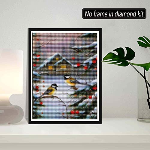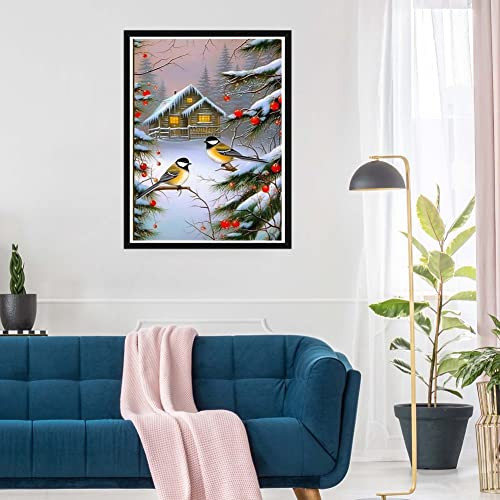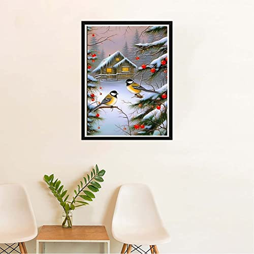5D Diamond Painting Snow and Tree Birds in Winter Full Drill by Number Kits,
