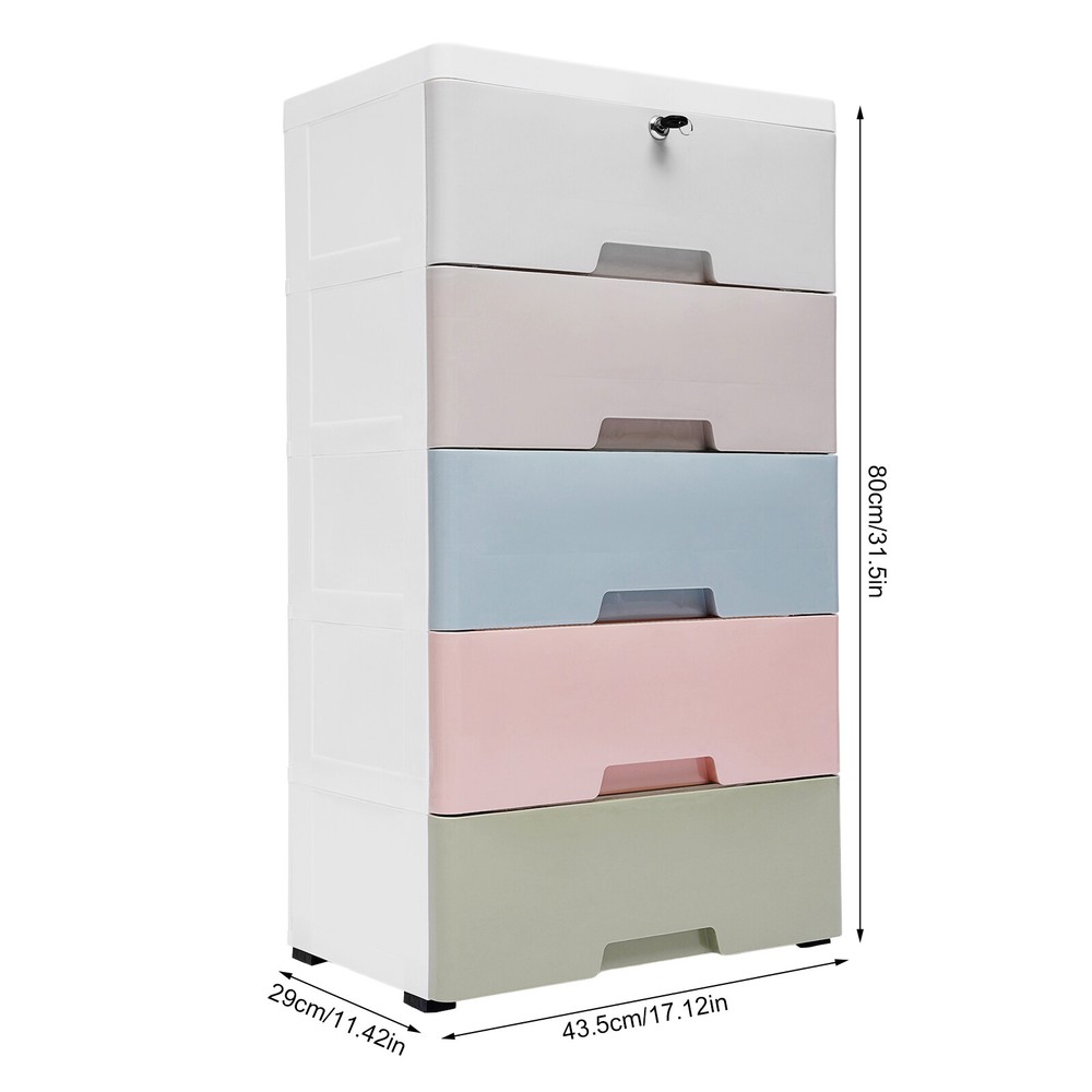 Dresser 5 Drawers Bedroom Furniture Storage Chest Organizer Closet Cabinet Home Description This 5-layer storage bin creates a dreamy storage space that combines practicality and aesthetics for you. Whether they are clothes, accessories, stationery, cosmetics, or children's toys, all kinds of items can find an exclusive place here, achieving efficient classification and storage and turning disorder into order. From then on, you will bid farewell to chaos, embrace neatness, and make life more comfortable. Now, take it home, and welcome this sweet gift for home storage! Key Features Built to Last: PP material has good impact resistance , tensile strength and bending resistance , which is hard, durable, and not easily broken, guaranteeing a long service life. Flexible Movement: The bottom has four wheels. When it is necessary to rearrange according to different occasions, you only need to gently push the bins to complete its movement, saving time and effort. Fashionable Style: It mainly adopts white and macaroon colors, adding a warm and romantic atmosphere to the living room and fully displaying a fashionable style. Strong Load-bearing Capacity: Whether it is storing large quantities of items for a long time or temporarily stacking heavy objects (Max. 55.1 lbs ), its reasonable structure can provide reliable support and demonstrate excellent adaptability. Impressive Gift: It is not only a practical household item, but also an impressive gift full of warmth. It can be used as a holiday gift for family, friends, and lovers to express your care and blessings. Storage Assistant: It has 5 drawers with large internal space and a strengthen top plate with an anti-slip groove for storage, helping you effectively solve the problem of disorder and achieve refined management of home life. Thoughtful Design: Each drawer adopts a full pull-out design with an anti-slip buckle, allowing a panoramic view of the contents inside. When opened, the drawer is difficult to drop out, greatly improving storage efficiency and ease of use. Satisfaction Guarantee: No matter what problem you encounter or have any questions, please contact us. We will reply and solve the problem for you as soon as possible. Details Top-layer Lock: It adds additional safety protection to the top drawer, especially suitable for storing valuable items, private documents, or items that children should not touch. Round Edges: The edges of the bins adopt a round design, which is not sharp and greatly reduces the risk of accidental injury to others. Hand-pull Groove: It helps you easily and smoothly open and close drawers, and access your items at any time. Application It can be used in the bedroom, living room, study, dressing room, beauty shop, children's room, game room, hallway, etc., for neatly storing books, office supplies, snacks, clothes, and so on. Specification Material: PP Color: White, Macaron Color Style: Modern Shape: Rectangular Treatment: Injection Molding Number of Layers: 5 Number of Drawers: 5 Max. Load-bearing Capacity: About 25kg/55.1lbs Single Drawer Size: 41*26.5*13cm/16.1*10.4*5.1in Product Size: 43.5*29*80cm/17.1*11.4*31.5in Package Size: 46*33.5*37.5cm/18.1*13.2*14.8in Net Weight: 4.25 kg/9.4lbs Gross Weight: 5 kg/11lbs Package Included 1* 5-drawer Storage Bin 1 Pairs* Keys 4* Feet with Wheels Notes Please allow the slight color difference caused by the shooting light and 1-3cm error due to manual measurement, and make sure you do not mind before ordering. Payment Delivery details Terms of sales About us Contact us Payment We accept ebay payment 。 Fees such as import duties, taxes are not included in the item price or shipping costs. These charges are the buyer's responsibility. Delivery details Shipping: 2-9 working days to: USA Terms of sales We maintain high standards of excellence and strive for hundred percent customer satisfaction. Feedback is very important to us. We hope that you contact us immediately before you give neutral or negative feedback, so that we can address your concerns. It is impossible to address issues if we do not know about them! About us Your satis faction is our ultimate goal. We work hard to earn your trust and future business. Our certified technicians have tested each item before shipping. The unit comes with 1 year limited warranty on all manufacturing defects. a) If you receive a defective item, you may return it or ask for a discount. Please contact us within 14 days after you receive the package. b) What you returned must be intact and in its original packaging as re? u. Customer is responsible for shipping costs of the returned item. c) We will cover the cost of shipping back t with the shipping rate indicated in the registration page. We will send you a new unit or refund the full payment you paid. Thank you. Contact us Business Hour Business Hour: Monday To Friday: 8:30 AM to 5:00 PM (Beijing China time) Due to time zones, our reply to your questions may not be immediately. But within above working time, we will reply your email within 24 hours. If it's non-workdays, please kindly be patient and wait till Monday. Please contact us with ebay message. Please feel free to contact us if you have any questions. Monday To Friday: 8:30 AM to 5:00 PM (Beijing China time) Due to time zones, our reply to your questions may not be immediately. But within above working time, we will reply your email within 24 hours. If it's non-workdays, please kindly be patient and wait till Monday. Please contact us with ebay message. Please feel free to contact us if you have any questions. Brand CNCEST Brand ( 品牌 ) SENDERPICK Features stable performance Bundle Description no Note Do not send to the Canary Islands Shipping Note Cannot ship to Puerto Rico & Hawaii Item Height 32cm/12.6inin Item Length 45cm/17.72in Item Width 37cm/14.57in Number of Drawers 5 Type Chest of Drawers Material PP Color Macaron Room Bedroom, Living Room, Home Office/Study Handle Finish N/A Handle Material N/A Style moder