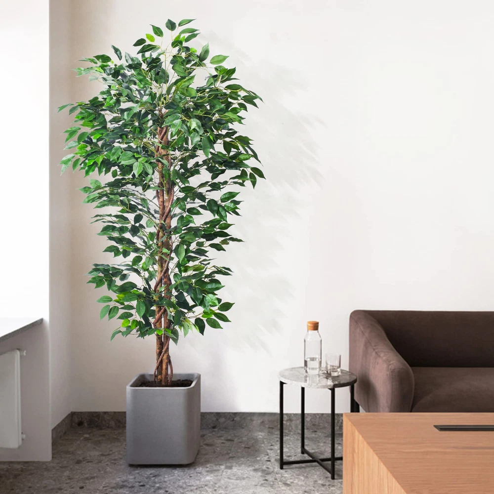 【Lifelike Artificial Ficus Tree】Our artificial tree are carefully crafted with reference to real trees in nature. During production, we will see butterflies resting on them, and birds will build nests on ficus trees. the clever little animals can hardly tell the difference between real and fake tree. 【Delightful Artificial Plants Indoor&Outdoor】Our fake plant is made of high-quality PE and silk, with realistic texture printed on the leaves, lifelike appearance and color, restore the real beauty, make you feel the cozy beauty of nature without leaving home , enjoy the relaxed and leisurely home life. 【Perfect Decoration】Faux silk plants can be widely used in indoor& outdoor decoration. perfect decor for home, office,shopping mall, hall, living room, balcony, entrance, clothing stores, restaurants, coffee shops, amusement park indoor & outdoor. no matter where these ficus tree placed, it is a touch of beautiful color. 【Easy for Maintenance】The benefit of ficus tree artificial is easy for maintenance. you only need to wipe off the dust with a rag occasionally. you can change the position and decorative pots at will. artificial plant not like a real plant. It will save a lot of time and energy. 【Warm Reminder】Due to the transportation package, ficus tree leaves may be squeezed. the leaves of these potted faux tree can be adjusted, when you receive them, please comb the leaves to make the ficus tree artificial look plump and lush, and then put them where you need.