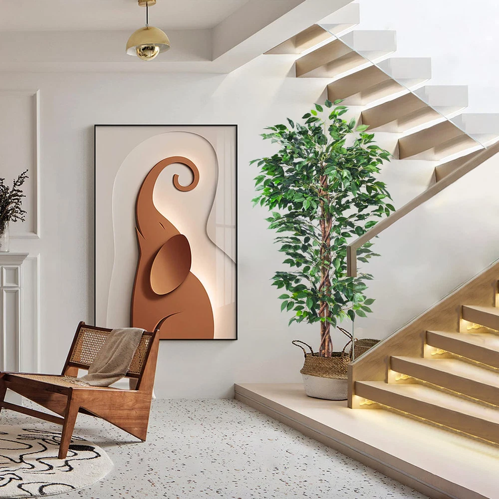 This artificial ficus tree looks incredibly real—so lifelike that even butterflies and birds get fooled! The sturdy plastic pot keeps it stable, and the high-quality PE and silk leaves have a natural texture and vibrant color. Perfect for adding a touch of greenery indoors or outdoors without any maintenance. It instantly brightens up any space!