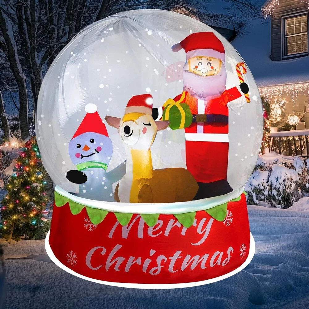 5FT Christmas Inflatable Snow Globe Santa Snowman Reindeer Outdoor Decorations Description Item model number Snowman Inflatable Item dimensions L x W x H 3 x 4 x 5 inches Color White Material Polyester Light Color Warm White Style Snow Globe Item Weight 4.69 pounds Theme Christmas Occasion Christmas Special Feature Lighted Product Dimensions 3 x 4 x 5 inches Charming Inflatable Snow Globe: This 5 FT Christmas Inflatable Snow Globe features a festive scene with Santa, a snowman, and a reindeer inside, creating a delightful festive centerpiece for your holiday decorations. Light-Up and Snowing: The inflatable snow globe is equipped with built-in LED lights that illuminate the scene beautifully, creating a captivating glow at night. It also features a "snowing" effect, adding to the enchanting atmosphere. Durable Material: Constructed with high-quality, weather-resistant materials, this inflatable snow globe is designed to withstand various weather conditions. It's perfect for outdoor display and can be a festive addition to your Christmas decor season after season. Quick and Easy Setup: Setting up your inflatable snow globe is a breeze! With a simple plug-and-play design, the built-in fan inflates it in just minutes. The included 4 stakes and 2 tethers provide secure anchoring, ensuring it remains upright and stable throughout the holiday season. Versatile Holiday Decoration: Perfect for indoor and outdoor use, this inflatable snow globe is ideal for Christmas parties, garden lawns, and yard decorations. It adds a touch of holiday cheer to any setting, making it a delightful decoration for your home during the festive season. Product Description The video showcases the product in use. The video guides you through product setup. The video compares multiple products. The video shows the product being unpacked. Snowing It features a "snowing" effect, adding to the enchanting atmosphere. Built-in Lights Illuminates the night with a captivating glow. Versatile Decoration Perfect for Christmas parties, garden lawns, and yard decorations. 1 Snowing 2 Built-in Lights 3 Versatile Decoration Christmas Decorations Shipping Fast shipping is very important for us. Our expedited US shipping service is FREE. Your order will be shipped within 2 business days upon full payment received. Your order will be delivered within 2-3 business days after the handling time. Warranty & Returns 30-Day FREE Return Policy offered for unsatisfactory items. Options include: Refund or Exchange for another item. Contact us Customer satisfaction is our top priority. If you encounter any issues with our product, please don't hesitate to reach out to us. We are committed to ensuring your satisfaction and will go above and beyond to assist you. Your happiness is our goal! Copyright © 2024 BBQFLAME. | All Rights Reserved