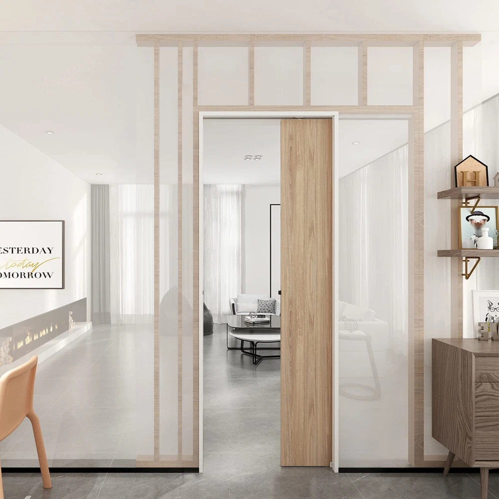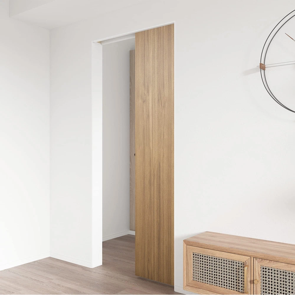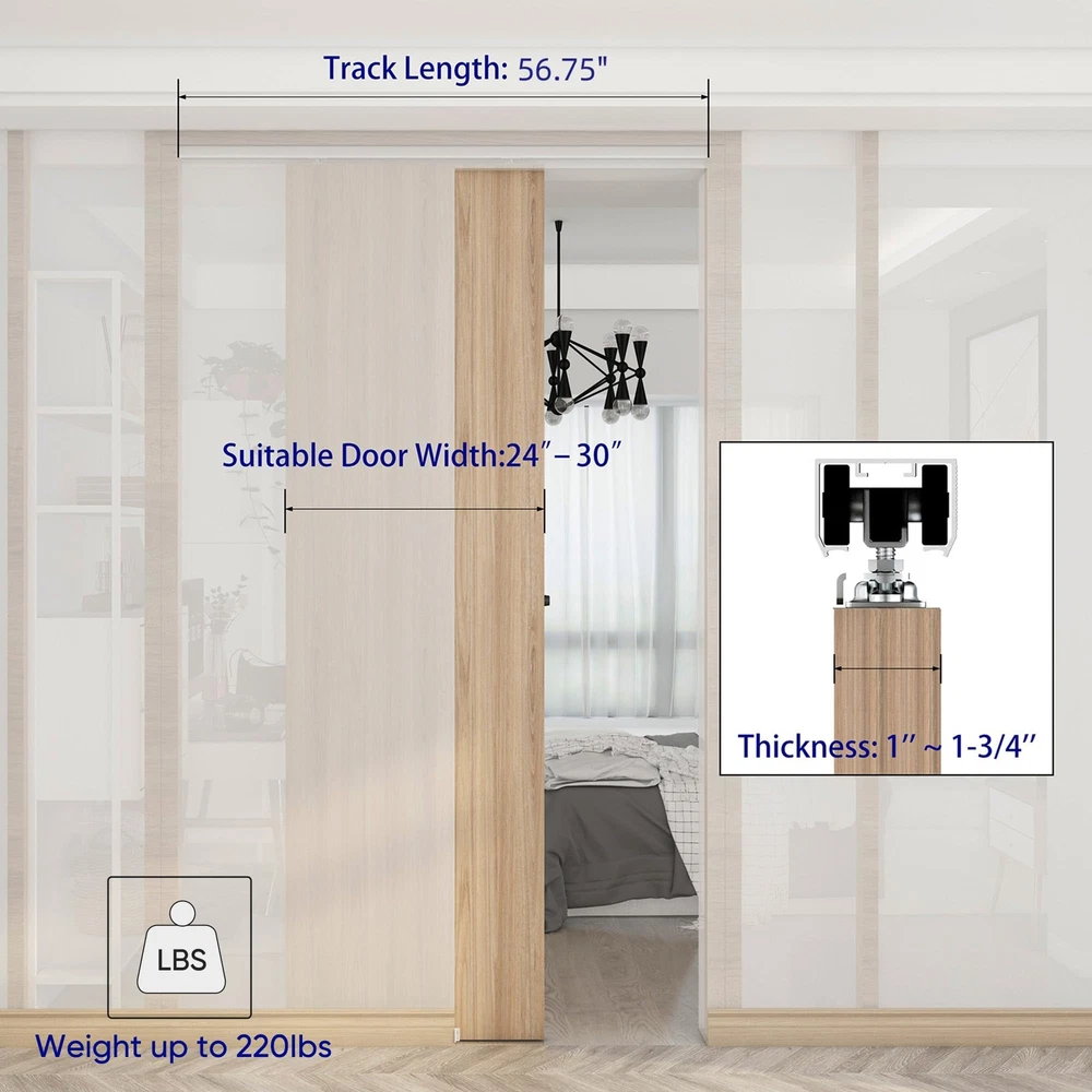 Excellent Structure: Commercial grade precision extruded aluminum box track ensures door will not jump from track, convex rails on track allow flexible and free rolling. Pocket door track is made of high-quality aluminum, which is corrosion-resistant, rust-proof. Smoothly and Steady: Three-wheel hangers guarantee the weight of the door to be evenly distributed on each wheel, with heavy-duty ball-bearing offer minimum friction and quiet rolling. This allows the three-wheel hangers to operate more smoothly and steady. Dimension: Suitable for door panel thickness 1" to 1-3/4"; door panel width 24"-30". Max Door Weight up to 220lbs (100kg) per panel. Easy to Install and Widely Applicable: The box rail structure is not complex. Quick release locking tab allows easy door installation/removal without dropping track. We also provide detailed professional installations. This track set is suitable for various scenes, such as bedroom, study, storage room, balcony, gym, office, etc. The pocket door track can meet most of your needs. Package Includes: 1x Aluminum track, 2x Hangers with mounting plate, 2x Floor guide, 1x Door bumper, and wrench & instructions & mounting screws. Great Value Option:100000 cycles test passed and guarantee the pocket door track can be used for 10 years! We are reliable and qualified manufacture. Professional engineer team is dedicated to the pocket door hardware. Professional customer service team help you solve all problems in time.
