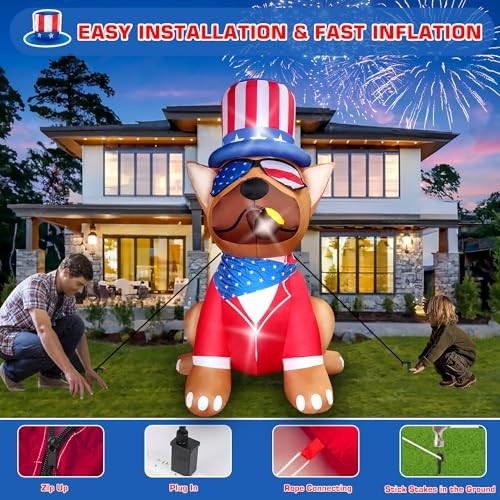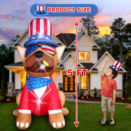 This 5FT patriotic inflatable dog is such a fun and festive way to celebrate the 4th of July! It instantly grabs attention with its bright LED lights and self-inflates in seconds—super easy to set up. Perfect for yard decor, it adds a playful patriotic touch to any party. The quality is great, and it arrived fast. Highly recommend for a cheerful holiday display!