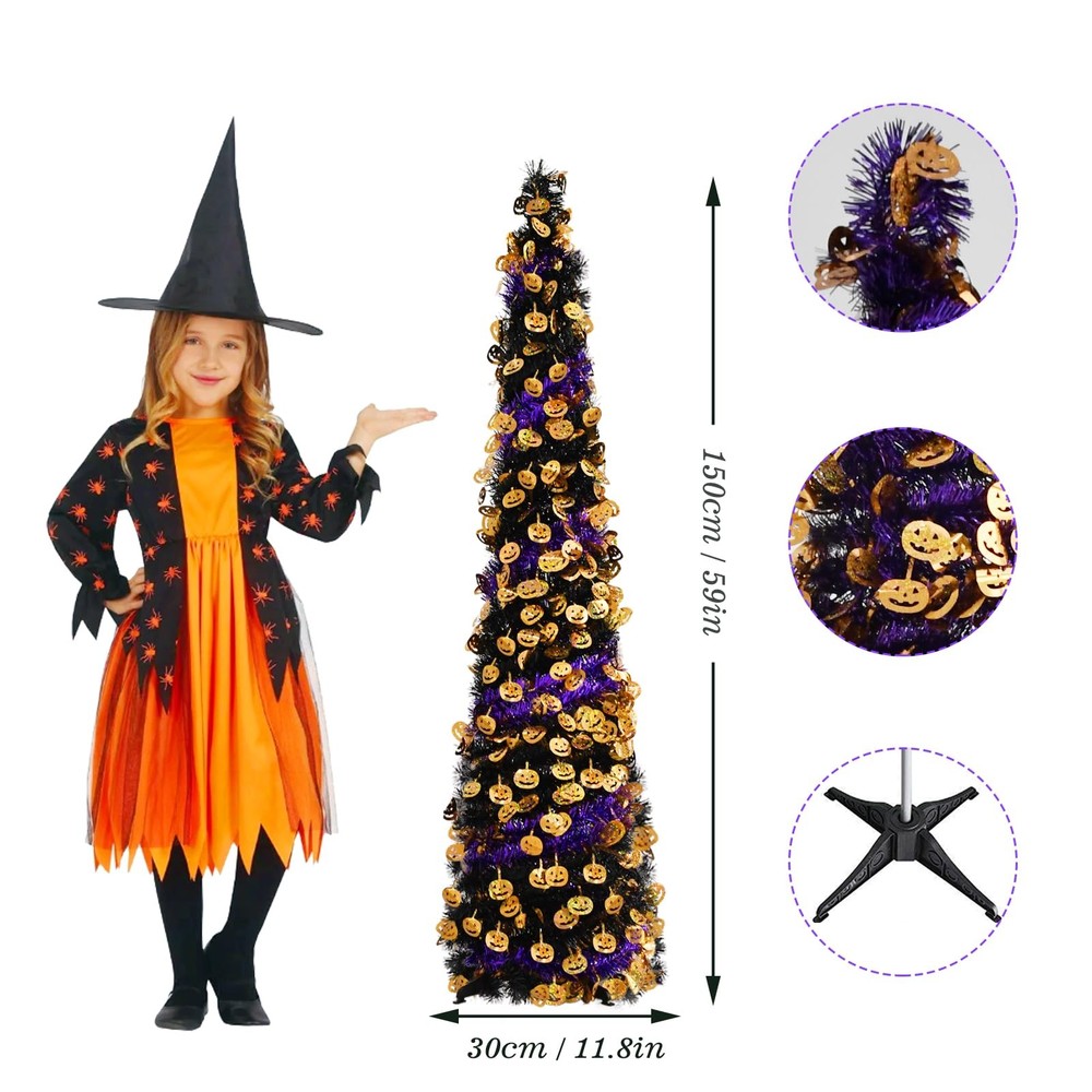 Christmas Halloween tree Effortless Setup & Storage: Designed with convenience in mind, this tree features a pull-up design that requires no tools—assembly takes just two minutes! The collapsible metal stand is not only sturdy but also reusable, making it easy to set up and pack away in a compact box for next year’s festivities. Versatile Holiday Decor: Standing at 5 feet tall, this tinsel Christmas Halloween tree pop up tree is the ideal addition to any space—whether it’s your porch, living room, bedroom, office, fireplace, backyard, terrace, or garden. It instantly elevates your holiday ambiance, lighting up any corner of your home with festive cheer. Space-Saving Design: With its slim profile, this tree fits seamlessly into small spaces, making it an ideal choice for those who want to maximize their living area without compromising on holiday cheer. Premium Quality: Crafted from high-quality PVC and metal, this pop-up Christmas Halloween tree pop up tree is built to last. The sturdy metal stand, coupled with a robust four-leg base made of thick plastic, ensures enhanced stability and durability. Thoughtful Gift: Surprise your friends or family with this unique tinsel tree! It's a delightful gift that’s sure to bring joy and laughter to any home, office, or outdoor gathering. Watch as everyone’s faces light up with holiday cheer when they see this shiny, charming tree surrounded by gifts.