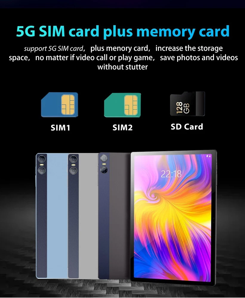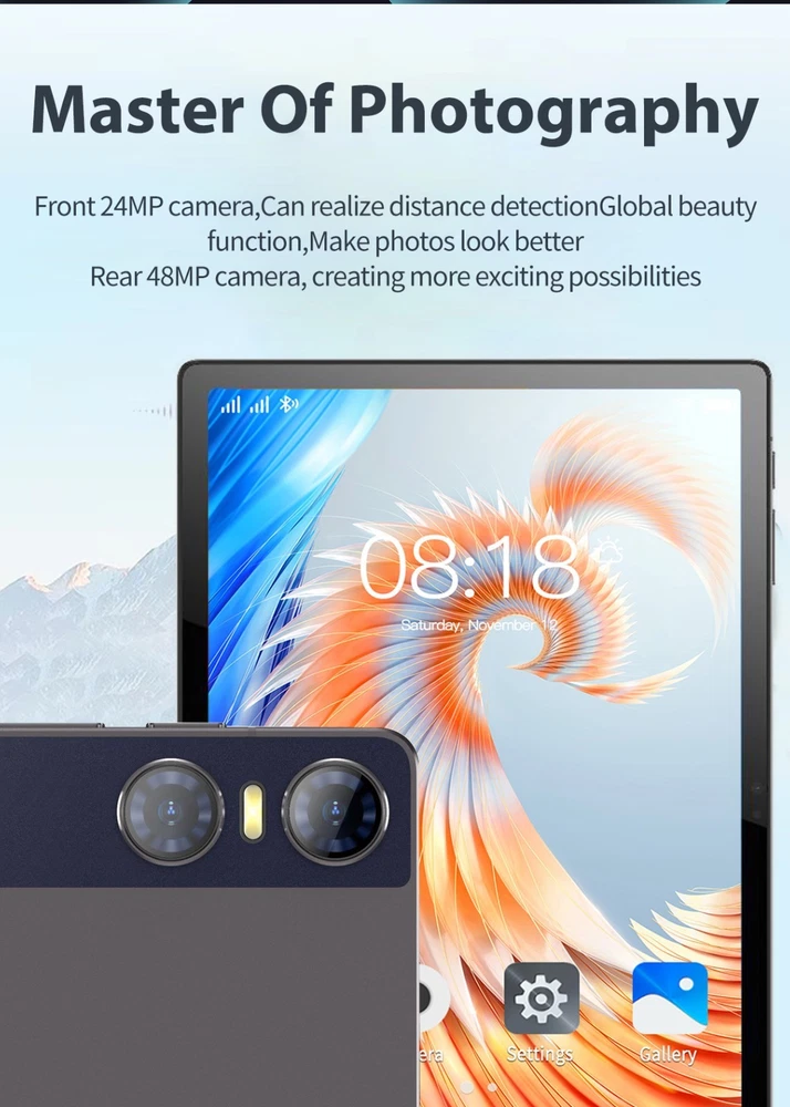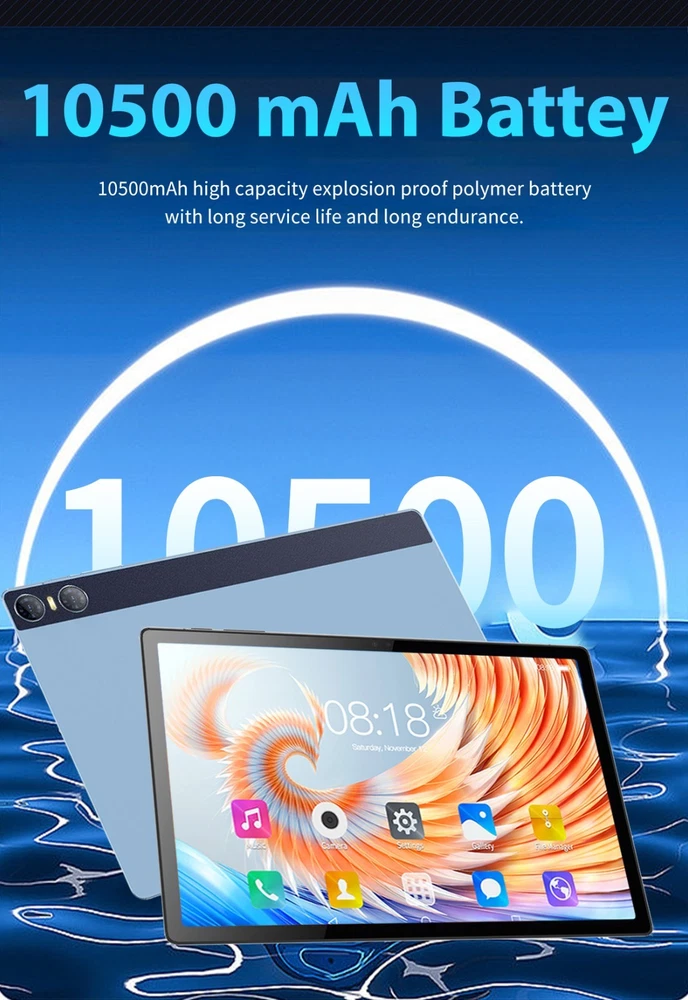 Tablet 11 inch Ultra Big Android 13 Tablets, 1TB Storage,16GB RAM, 10500 mAh Battery , 10-Core 2.5GHz ,2 Speakers, 4G/5G WiFi with Case Bullet Point ★ 11inch LARGE DISPLAY& 10 CORE CPU: Experience ultimate performance with the Weiboer Android Tablet featuring a robust 10-core CPU, 16GB RAM, and 1TB internal storage. Expand up to 1TB with microSD (sold separately). Enjoy seamless multitasking on the fast and responsive tablet. Its 11 inch 3840x2160 full screen with a wide viewing angle offers high-resolution images, providing a more realistic and powerful visual experience. ★ UPGRADED ANDROID 13 TABLET: 11 inch google android tablet is equipped with a new upgraded system "Android 13", providing a more personalized, safe and easy-to-operate system experience. You can install apps like Netflix, TikTok, YouTube, LINE, Yahoo, Twitter from the Google Play Store on your GMS certified tablet. ★ 8800MAH LONG LASTING BATTERY: The 11 inch Computer Tablets is equipped with battery up to 10500mAh. Achieve up to 8 hours of video battery life, and use the Type-C port to charge more easily, regardless of positive or negative. With a weight of 996g, it is very convenient to carry it with you whether you are working, studying or going out. ★ MULTIFUNCTIONAL 10.1 INCH TABLET: Equipped with a 16MP + 24MP camera and By combining it with the flash, it is thought that shooting in dark places will be really improved. iMeshbean tablets android Bluetooth 5.0 supports high-fidelity headphones for sound quality enjoyment. Great for work or pleasure, use this tablet for video conferencing, gaming, streaming, or even as an e-reader in your preferred language. ★ 2 IN 1 TABLE WITH KEYBOARD LEATHER CASE: Tablet connect with Keyboard, change 2 in 1 laptop; Tablet case, Screen protector and Touch pen can better use. ★ SEAMLESS CONNECTIVITY: Get fast and stable internet connectivity with 2.4G/4G/5G WiFi that offers better range and speed, undisturbed streaming, gaming or browsing. The sturdy metal frame adds durability to this WiFi Android tablet, making it perfect for everyday use . ★ IDEAL CHOICE FOR GIFT: With exceptional performance, a chic aesthetic, and exquisite packaging, this tablet stands as the ideal gift for occasions like Christmas, Valentine's Day, birthdays etc, Its impressive features ensure a memorable and versatile present for your loved ones. Specification 11 inch Tablet Brand JWEIBK Model GT30 Shell Metal aluminum alloy shell Color Black Blue Display 11 inch Resolution 3840X2160 Keyboard Backlight Bluetooth Keyboard(Support external keyboard) CPU MTK Core 10 core Storage 16GB RAM +1000GB ROM Camera Front Camera:1600W Rear Camra:2400W Battery 10500mAh Operating system Android 13 Bluetooth BT5.0 Processor Speed 2.5 GHz Microphone 42db 2.2kΩ Speaker Built-in 8Ω 1W TF Card Micro SD Earphone 3.5MM Interface Type Cx1, headphone jack 3.5 mm x1, microSD slot x1 DC power x1 Power adapter 5V 3A Package included 1x11inch Tablet 1xbluetooth keyboard 1xCharger 1xKeyboard Case 1xWireless Mouse 1xTouch pen 1xEarphone 1xEnglish Manual Package List 1x11 inch Tablet 1x11inch bluetooth keyboard 1xCharger 1xKeyboard Case 1xTouch pen 1xEarphone 1xEnglish Manual