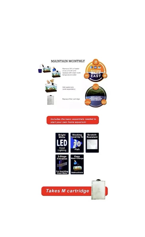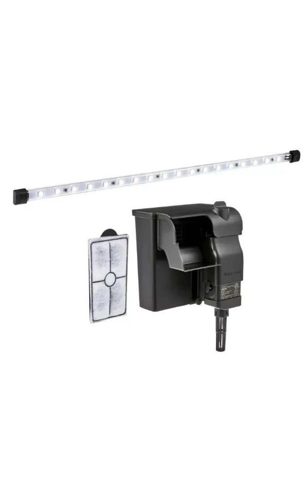USED LIKE NEW OPEN BOX The Aqua Culture 5-Gallon Glass Aquarium Starter Kit is a rectangular-shaped tank with LED lighting system, perfect for beginners looking to start their aquatic journey. Made of durable glass, this starter kit includes everything needed to create a thriving aquatic environment including water types, stand material, and necessary accessories. With a 5-gallon tank capacity and dimensions of 10 inches in width, this kit is compact yet suitable for various fish species. Manufactured in the United States, this kit is a reliable choice for anyone looking to start their own aquarium.
