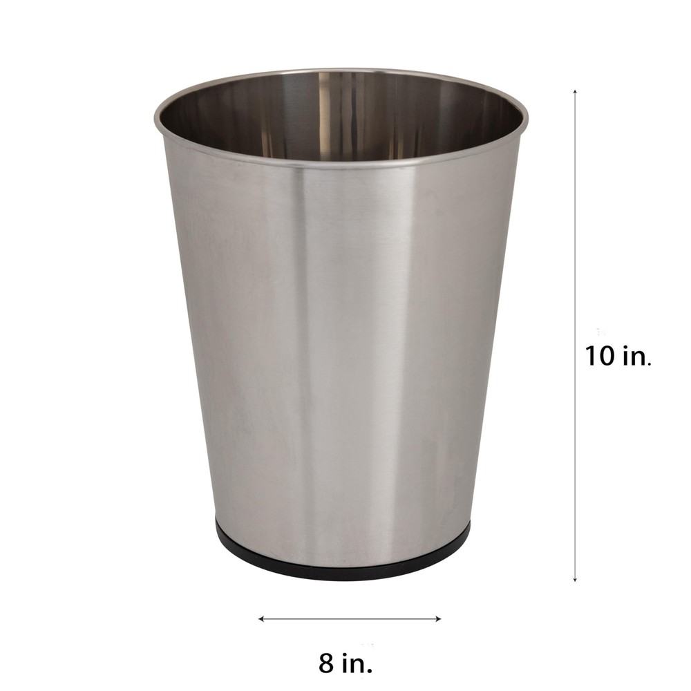 This Trash Can is designed to compliment any home or bathroom décor. Made of stainless steel with a satin finish it is sure to glam up any space. The compact design is great for any small space such as a bathroom, office or dorm room. SAY HELLO TO YOUR NEW PRACTICAL ACCESSORY! When it comes to your bathroom’s or desk’s hygiene there should be no compromise; that is why you need this deluxe, stainless steel trash can that will keep any room odor-free and great looking! SLEEK, MODERN & ARTSY DESIGN! The fact that is a simple and handy garbage can does not mean that it shouldn’t look stylish and elegant. No matter where you decide to put it it is still a small piece of interior design and décor! IDEALLY SLIM, GREAT FOR SMALL SPACES! If you like working in the attic and need a handy garbage bin, or you have a tiny cute bathroom that doesn’t fit a regularly-sized can, don’t worry, because you have just found the compact, ideally sized bin for your needs! COMPACT: The 5 Liter small wastebasket is compact and great for small spaces. It can be tucked out of the way. VERSATILE: This trash can is great for any room in your home. It is perfect for the bathroom, office, bedroom, or dorm. DURABLE: The waste basket is made of durable iron material. It will not rust so it is sure to last. STYLISH: The solid stainless steel finish design on the waste basket is simple and stylish and will fit with any room décor. DIMENSIONS: 7.68" rd x 9.65"