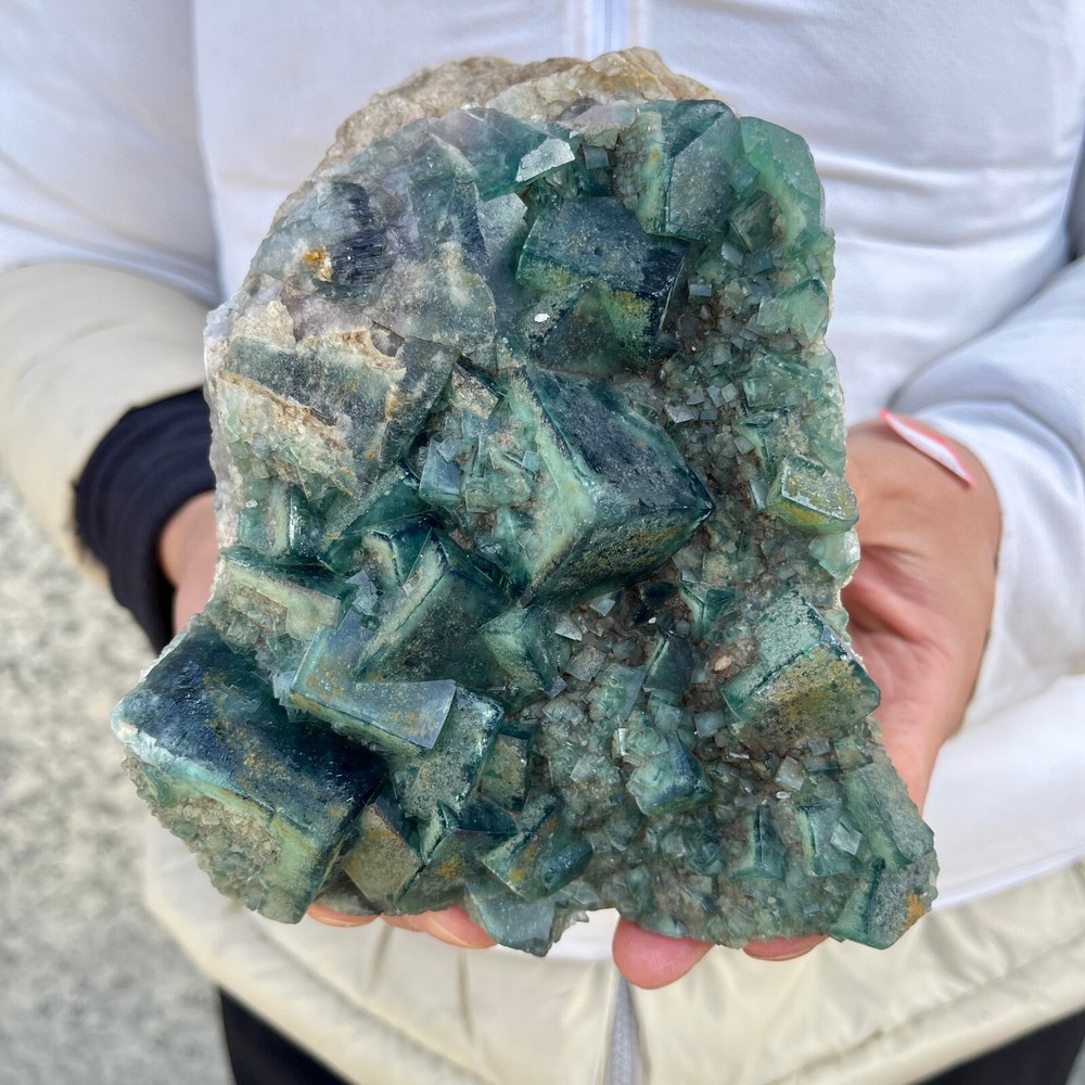 $ 44.882.9LB NATURAL Green Cube FLUORITE Quartz Crystal Cluster Mineral Specimen