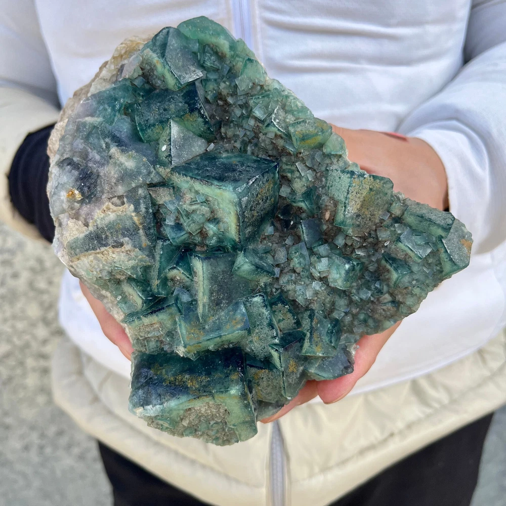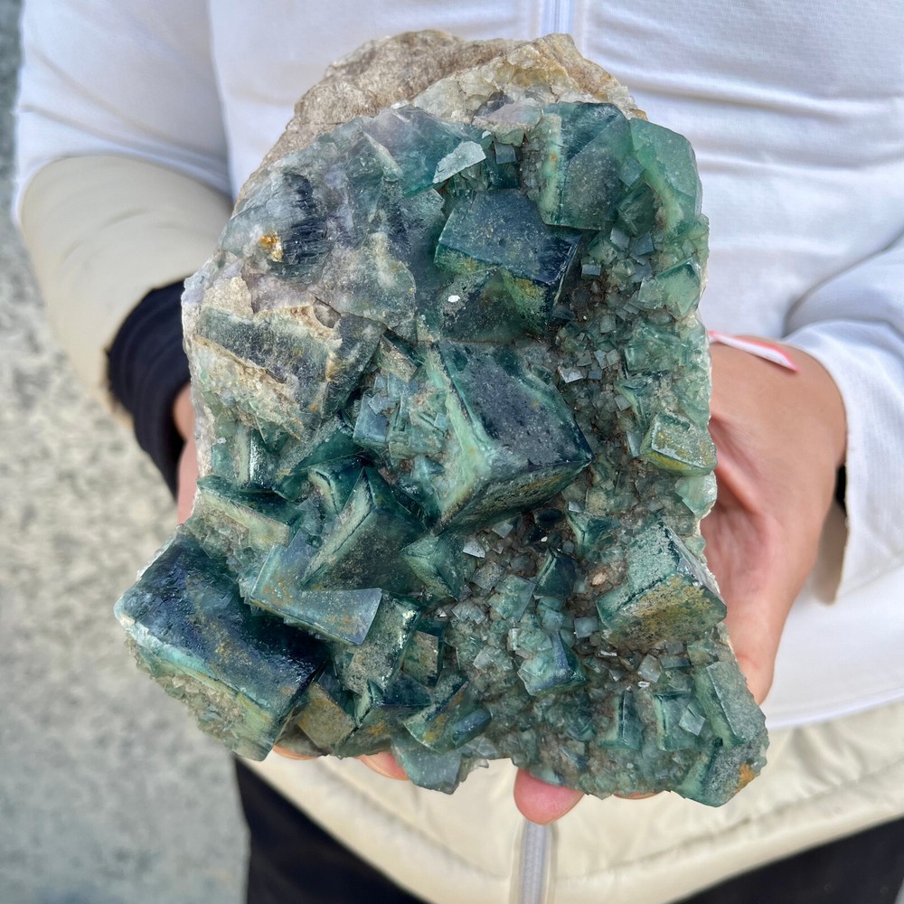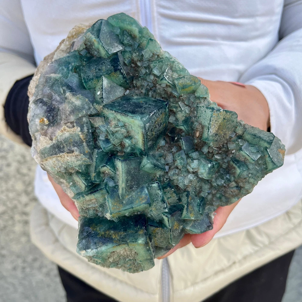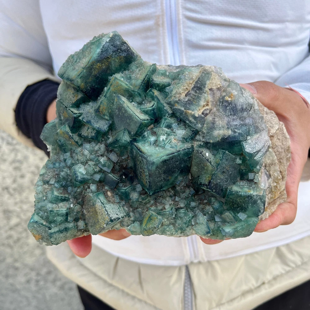 $ 169.491.9LB Natural Green Fluorite Cube Quartz Crystal Cluster Mineral Specimen