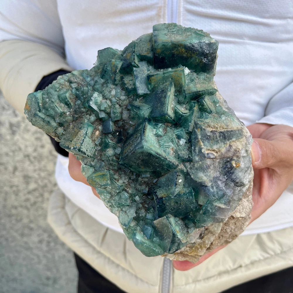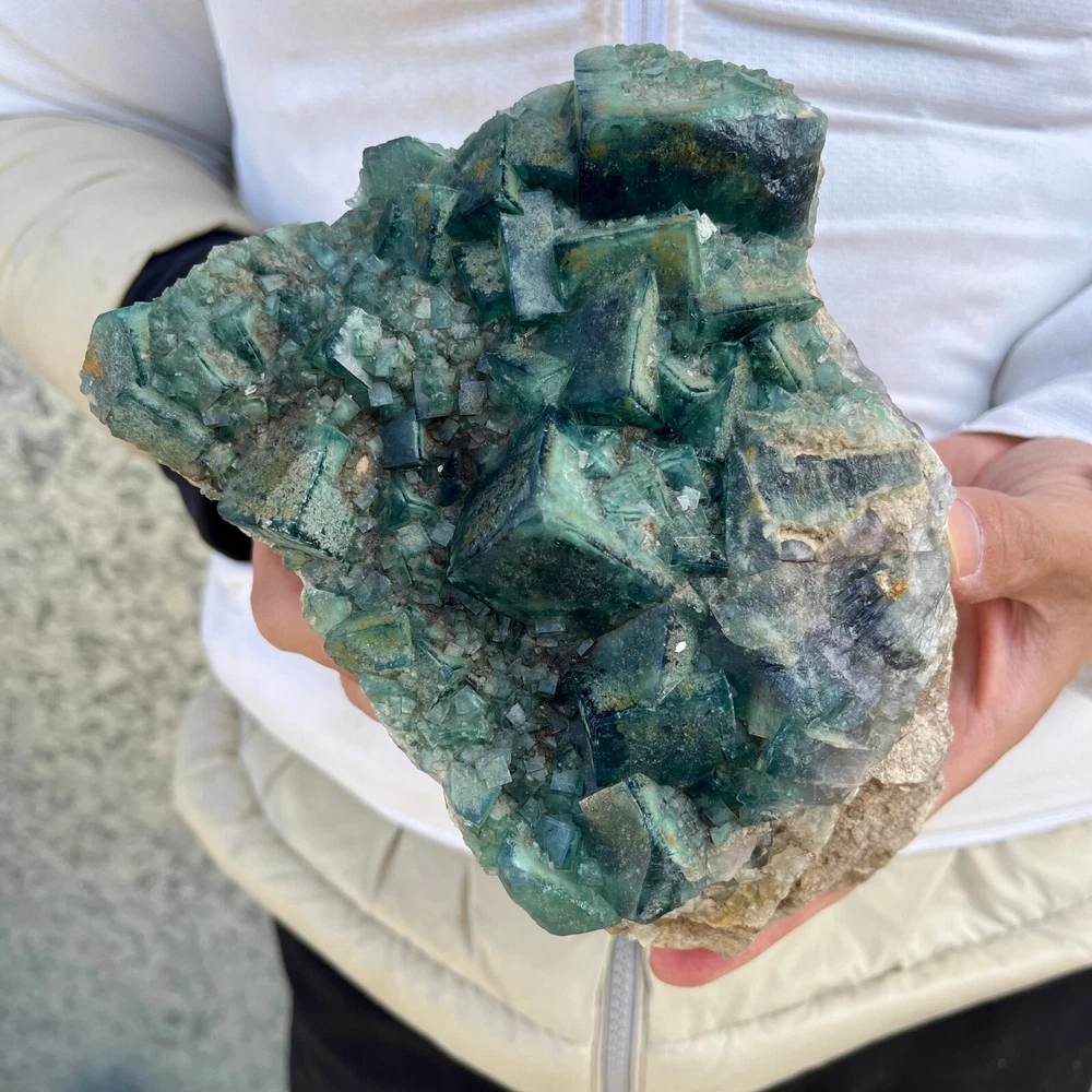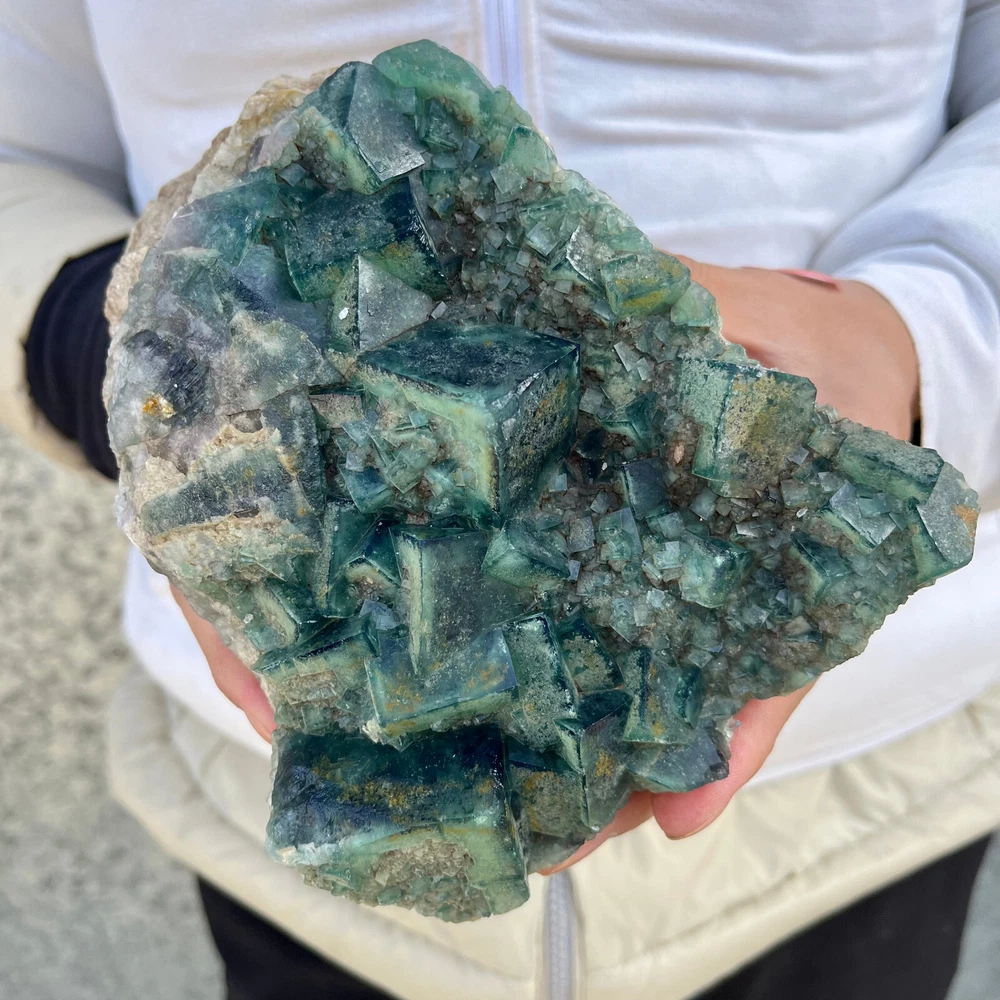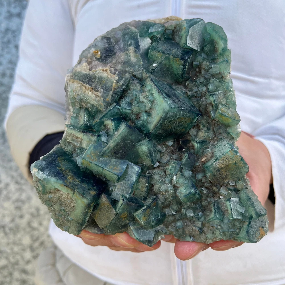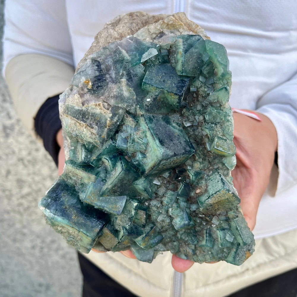 $ 169.491.9LB Natural Green Fluorite Cube Quartz Crystal Cluster Mineral Specimen