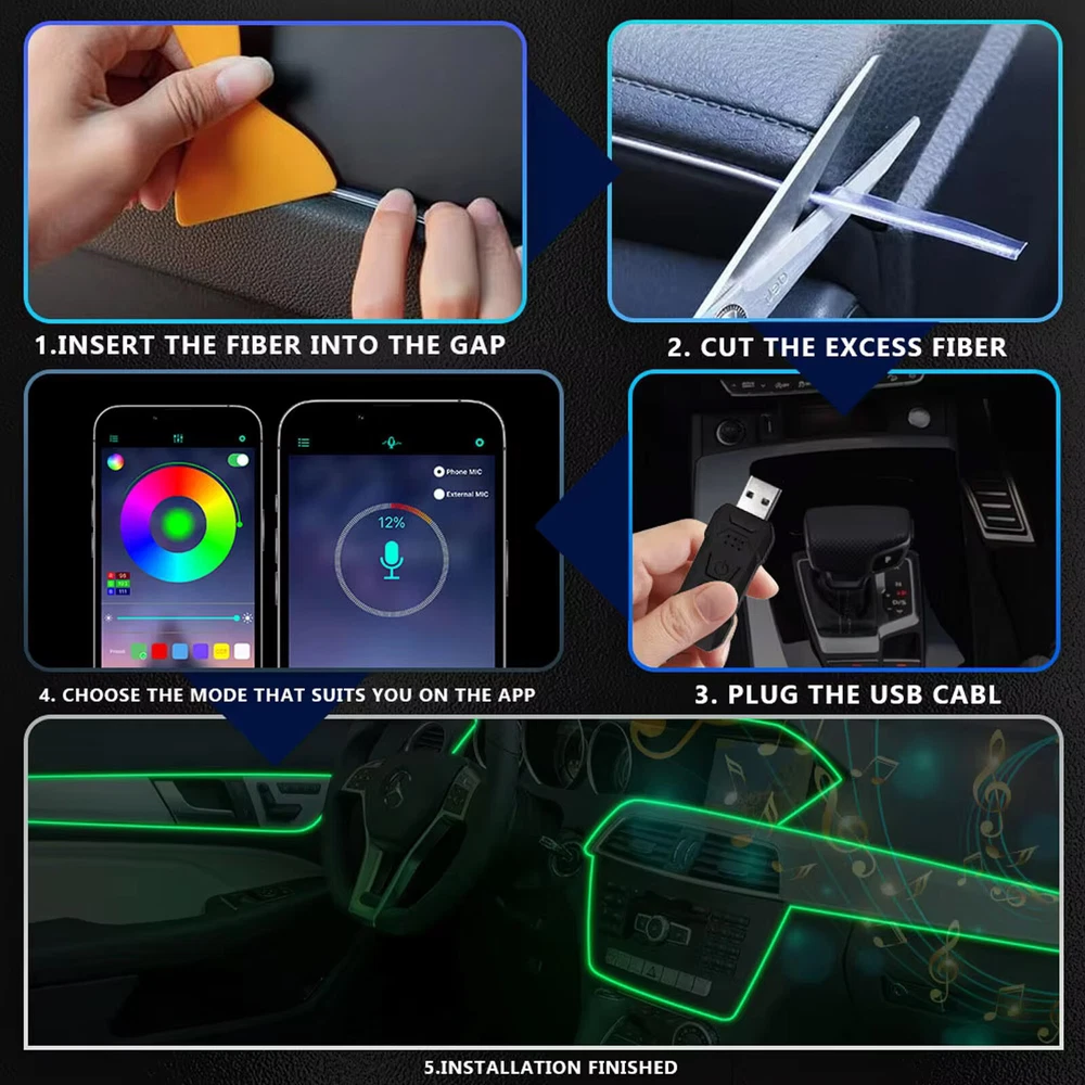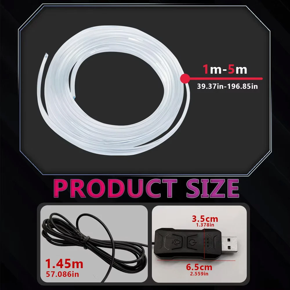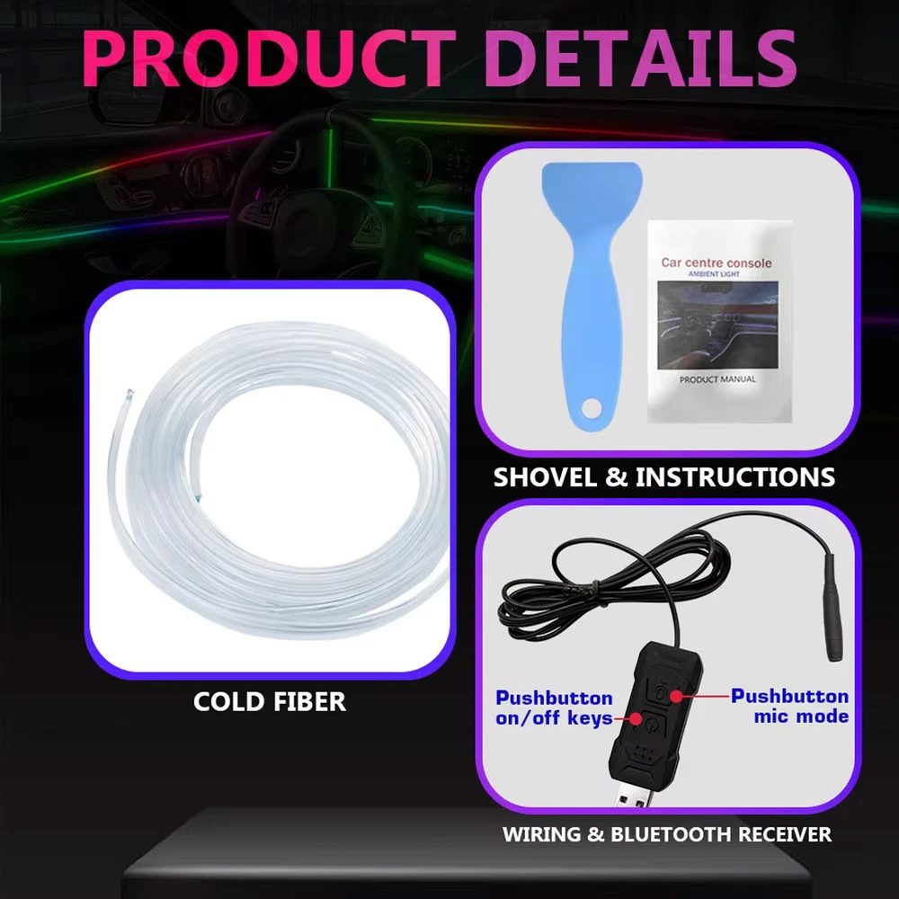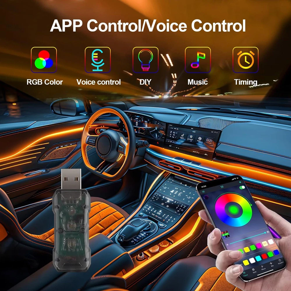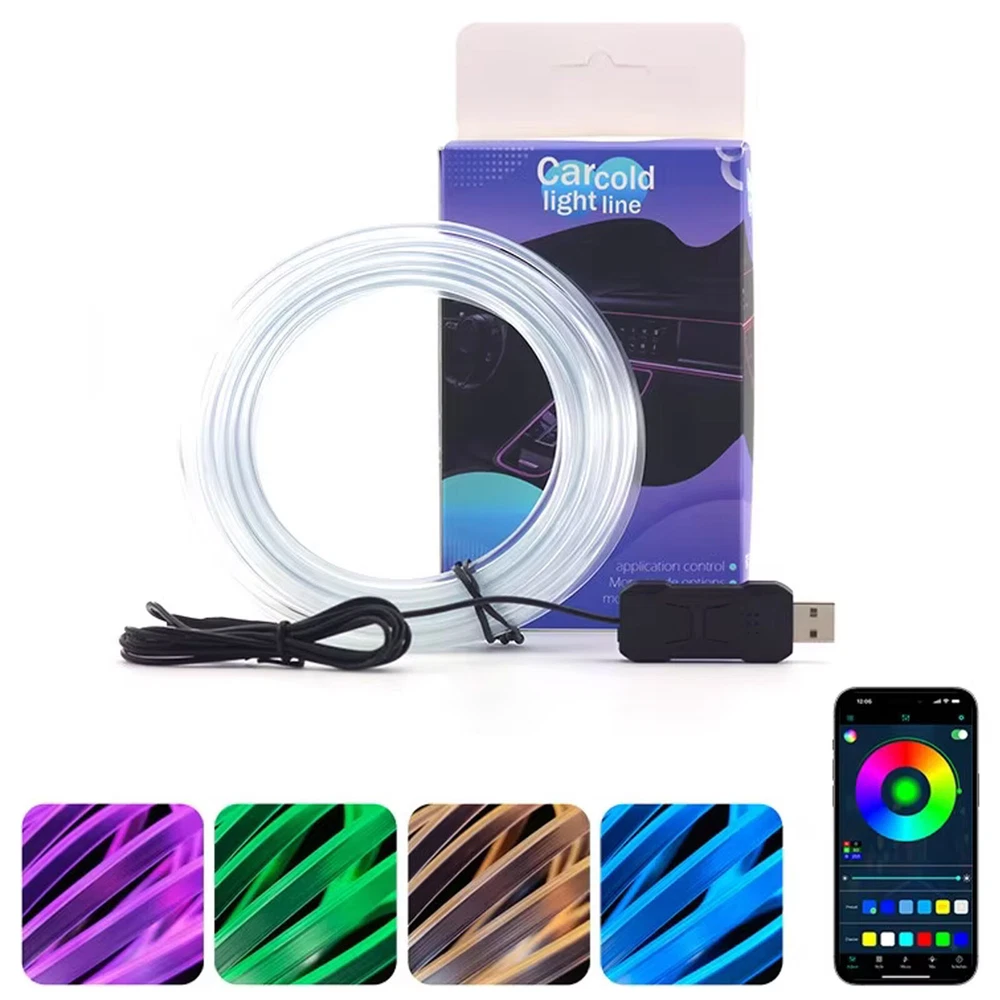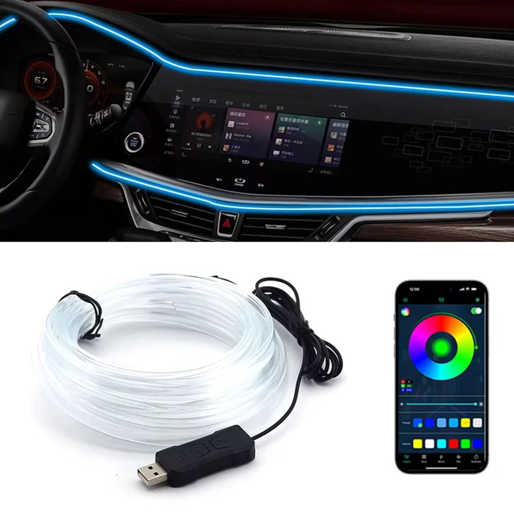 5M Car Ambient RGB Interior LED Strip Light APP Music Control Atmosphere Lamps Features: 1. USB interfa ce, plug and play. Perfect for car decoration, parties, camping, bar decoration and more. 2. Multiple RGB color modes to choose from, 360-degree adjustable. 3. Flexible, easy to install, can be folded into any shape and cut to any length. 4. Button and APP control, more convenient to use. Easy control of lights anytime and anywhere; Music and sound control create a relaxing and pleasant atmosphere. 5. Make your car colorful. Specification: Name: Central Control Atmosphere Light Material: glass fiber and high brightness LED lamp beads Light source: LED lamp beads Light color: colorful Voltage: 5V Installation location: centre console Control: buttons, APP control Length: 5m Packaging included: 1x RGB Atmosphere Light