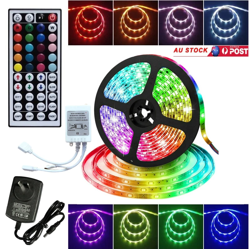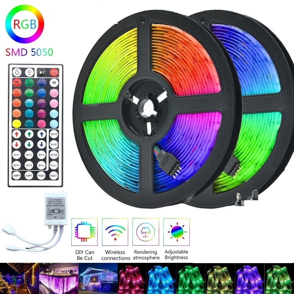 Power Source: Cored Installation Position: Indoor & Outdoor gtin13: 645312029402 Features: Memory Function, 8-brightness Level, Changes Colors, Dimmable, Flexible, RGB, With Power Supply, With Remote Control Lumens: 900LM Indoor/Outdoor: Indoor & Outdoor Bulb Type: 3528 SMD Color Temperature: 3500 - 4500 K Natural/Neutral MPN: Does Not Apply Material: Plastic Output Voltage: 12V Application: to decorate home, living rooms, dining rooms, bedrooms, upstairs Number of Lights: 300 LEDs UPC: 645312029402 Brand: Unbranded Room: Bathroom, Bedroom, Dining Room, Garage, Hallway, Kitchen, Laundry Occasion: Best Wishes, Birthday, Christmas, Congratulations LED Chip Code: 3528 Model: LED Light Input Voltage: 12V Power Consumption: 4.8W Manufacturer Part Number: Does Not Apply Light Color: RGB Rated Current: 5A Light Source: 3528 SMD LEDs Type: Indoor/Outdoor LED Light Strip Sensor Type: Light