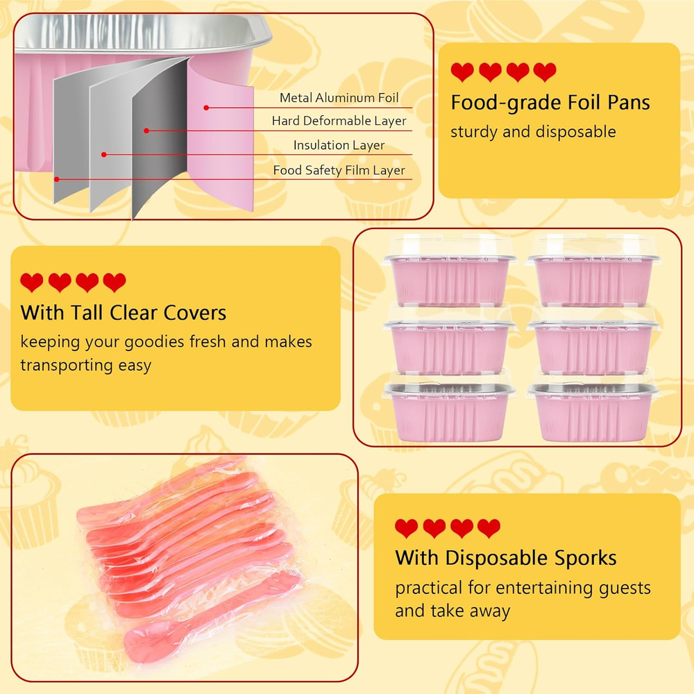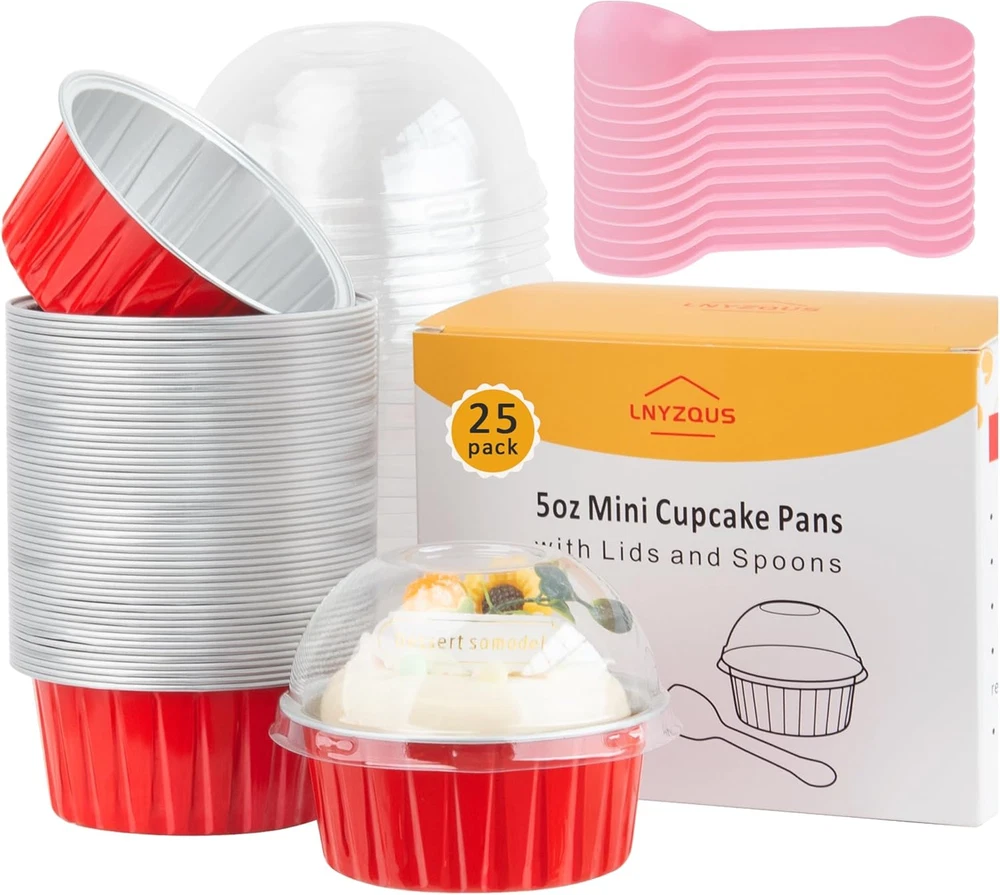 $ 6.34Red Cupcake Liners Muffin Tins 50 Pack, 5Oz Aluminum Foil Baking Cups with Lids,