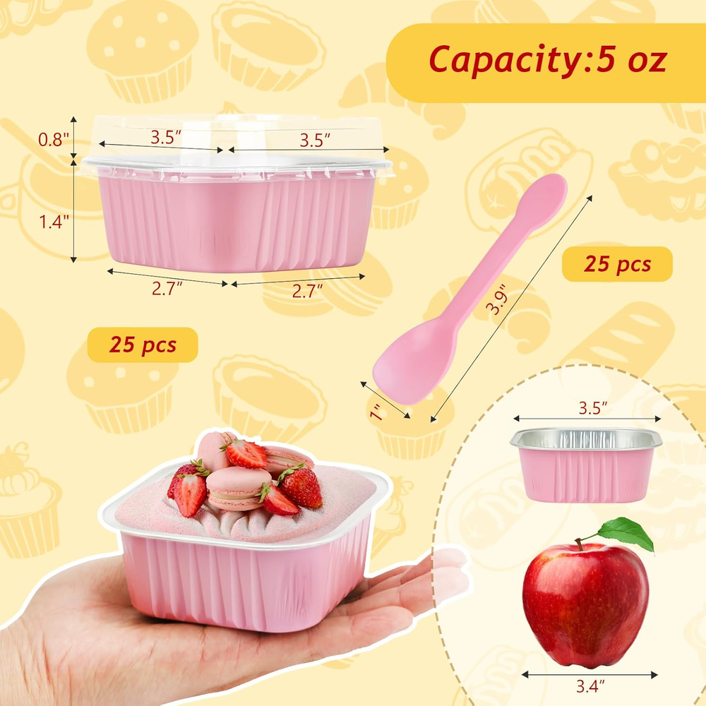 5Oz Mini Cake Pans with Lids 25 Pack,Foil Cupcake Baking Cups Muffin Tins Square Small Brownie Containers Disposable Creme Brulee Ramekins Cupcake Liners Holders -Pink Upgrade your daily routine with 5Oz Mini Cake Pans with Lids 25 Pack,Foil Cupcake Baking Cups Muffin Tins Square Small Brownie Containers Disposable Creme Brulee Ramekins Cupcake Liners Holders -Pink — premium build for reliable performance and long-lasting value. Enjoy fast handling, friendly support, and a risk-free purchase backed by easy returns. Trusted seller with excellent feedback Popular item — often sells out quickly 30-day returns, no questions asked Key Benefits Feel the quality: durable materials and clean finish Save time: quick setup and easy everyday use Peace of mind: hassle-free support via eBay Messages Smart value: excellent price–performance for home, office, hobby, or professional use Item Specifics Item model number 150-25-pink Capacity 5 ounces Color Pink Upper Temperature Rating 482 Degrees Fahrenheit Product Dimensions 3.54"D x 3.54"W x 1.4"H Material Aluminum, Plastic Is Dishwasher Safe No Item Weight 9.9 ounces Is Oven Safe Yes Shape Square Occasion Anniversary, Birthday, Bridal Shower, Christmas, Valentine's Day Included Components Clear lid x 25pcs, Pink spoon x 25pcs, Square mini foil pan x 25pcs Special Feature Air Fryer Safe, Disposable, Freezer Safe, Grill Safe, Oven Safe Product Care Instructions No empty baking Size Square- 5oz Description 【5oz Mini Cake Pans with Lids】 -The capacity of the cupcake tin is about 130ml/5oz,great small foil containers for mini size portions,cupcake,muffin,brownie,small cake,mini bread,cheesecake,mini carrot cakes,crème brûlée dessert flan and so on. 【Easy to Use】 - This mini baking pan has good thermal conductivity and can shorten the baking time.Can be grilled on the fire, ideal for making caramel pudding, charcoal-grilled cheese, etc. 【No Baking Tray Needed】-These disposable mini cake tins are made of thicken food-grade aluminum foil,can stand well in oven.The cupcake pans are oven ,grill and air fryer safe.These mini aluminum pans can withstand temperatures up to 250℃/482℉,please allow cups to cool prior to applying lids. (NOTE:The clear lids are not heat resistant!) 【Pack of 25 Sets】 - Including 25pcs square baking tin with 25 clear top lids,and 25 individually wrapped spoons.The disposable muffin pan size:3.5"L x 3.5"W x 1.4"H,the lids 0.8” high. 【Easy to Carry and Keep Fresh】- Come with Lids and spoons-clear lid snaps on tight, keeping your goodies fresh in the refrigerator and makes transporting easy.And the spoons, it is very practical for entertaining guests and no cleaning. 【Wide Usage 】- These disposable ramekins with lids and spoons are great for home and outdoor usage such as birthday party, wedding,baby shower,thanksgiving,Christmas and Halloween,etc.holiday celebration,And picnic, camping and other leisure activities. Also ideal for restaurants, bakery, chef,and other catering venues. Product description LNYZQUS Aluminum Foil Square Mini Cake Pans With Lids Why Choose The Disposable Brownie Pans? Excellent Thermal Conductivity These mini cake pans are made of thicken food-grade aluminum foil,not easy to deform.With excellent thermal conductivity,can shorten the baking time. Large Capacity Cupcake Cups Great small cake pans for individual size portions and food containers.There are available in a variety of sizes and colors. 2-In-1 Design Not only large baking cups, but also exquisite packaging box, enjoy baking without demoulding.With top lids for easy storage and transportation. with Individually Wrapped Spoons One-stop shopping & fully equipped, disposable sporks for entertaining guests, hygienic and convenient. Jumbo Muffin Tin for Delicious Great baking pans for brownie,mini cake,bread,dessert flan,caramel pudding,charcoal-grilled cheese, barbecue,mini pizza,etc. Jumbo Cupcake Baking Cups for Home and Business Ideal baking tins for birthday party,wedding,graduation,Christmas,New Year,etc.holiday celebration;Excellent baking cups for picnic,camping,bakery,chef,etc. leisure and business venues. Various Baking Cups Are Available Add to Cart Add to Cart Add to Cart Add to Cart Add to Cart Add to Cart Add to Cart Customer Reviews 4.6 out of 5 stars 1,491 4.7 out of 5 stars 212 4.7 out of 5 stars 205 4.6 out of 5 stars 2,588 4.6 out of 5 stars 337 4.7 out of 5 stars 900 4.4 out of 5 stars 2,236 Price $18.99 $ 18 . 99 $27.99 $ 27 . 99 $26.49 $ 26 . 49 $15.49 $ 15 . 49 $19.49 $ 19 . 49 $19.49 $ 19 . 49 $9.99 $ 9 . 99 Capacity 10 oz 10 oz 5 oz 6.8 oz 8 oz 5 oz 5.5 oz Material Thicken Aluminum Foil Thicken Aluminum Foil Thicken Aluminum Foil Thicken Aluminum Foil Thicken Aluminum Foil Thicken Aluminum Foil Foil Paper Quantity 40 Pack 80 Pack 120 Pack 50 Pack 50 Pack 100 Pack 50 Pack The Cup Size 4.4x4.4x1.6 in 4.4x4.4x1.6 in 3.5x3.5x1.4 in 6.5x2.5x1.2 in 4.6x4.6x1.2 in 3.4x3.4x1.4 in 3.1x3.1x1.5 in With Lids ✔ ✔ ✔ ✔ ✔ ✔ ✔ No Cupcake Pan Needed ✔ ✔ ✔ ✔ ✔ ✔ ✔ With Spoons 50 pcs 100 pcs 150 pcs 50 pcs 50 pcs 100 pcs 50 pcs 3.54 "h x 3.54 "h x 1.4 "h. Weight: 9.9 oz Package Includes 1× 5Oz Mini Cake Pans with Lids 25 Pack,Foil Cupcake Baking Cups Muffin Tins Square Small Brownie Containers Disposable Creme Brulee Ramekins Cupcake Liners Holders -Pink User manual (if included) Invoice by email (VAT shown on request) Shipping & Returns Fast handling and dispatch from our warehouse Tracking provided for parcel shipments 30-day returns according to eBay listing settings Why Buy From Us? Top-rated customer experience Secure checkout through eBay Reliable packaging — arrives ready to use Limited availability on popular variants Don’t wait — click Buy It Now to secure your 5Oz Mini Cake Pans with Lids 25 Pack,Foil Cupcake Baking Cups Muffin Tins Square Small Brownie Containers Disposable Creme Brulee Ramekins Cupcake Liners Holders -Pink today.