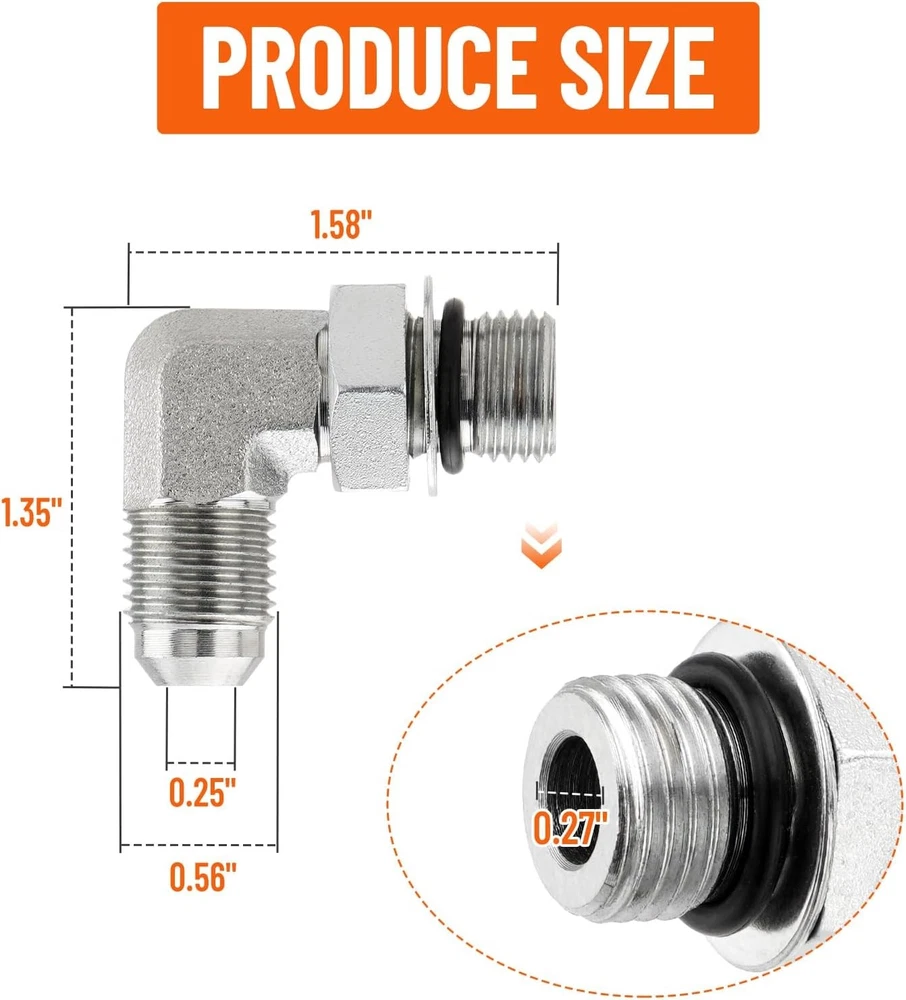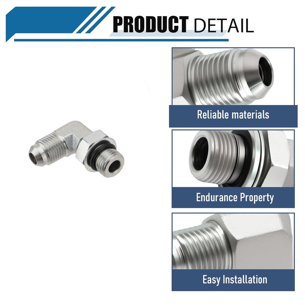 About this item 90 Degree Elbow Design: It effectively reduces pipeline bending and stress, improves the installation flexibility and convenience of hydraulic pipeline systems. Prevent Leakage: JIC 37° male end provides precise metal to metal sealing to prevent leakage. #6 SAE/ORB male end is sealed by compressing the O-ring into the chamfer of the female port interface. Secure Connection: Hydraulic joints securely connect hoses to hydraulic system components, control the flow of hydraulic fluid, maintain pressure and prevent leakage. 5PCS 90 Degree Elbow Hydraulic Hose Fittings:1/4" JIC 37° Male x #6 SAE/ORB Male About this item 90 Degree Elbow Design: It effectively reduces pipeline bending and stress, improves the installation flexibility and convenience of hydraulic pipeline systems. Prevent Leakage: JIC 37° male end provides precise metal to metal sealing to prevent leakage. #6 SAE/ORB male end is sealed by compressing the O-ring into the chamfer of the female port interface. Secure Connection: Hydraulic joints securely connect hoses to hydraulic system components, control the flow of hydraulic fluid, maintain pressure and prevent leakage. Reliable Connection Type: Provides a secure connection that efficiently controls fluid flow, maintains pressure, and prevents leakage, ensuring system integrity in various applications. Premium Material: Hydraulic connectors are made of premium carbon steel, which is resistant to high temperature, high pressure, and corrosion. Endurance Property: Made of sturdy carbon steel, with high temperature, high pressure and corrosion resistance, to ensure long-term reliability and endurance in harsh working environments Wide Application: Hydraulic fittings are very suitable for industrial fluids and various hydraulic applications, including automobiles, manufacturing, and agriculture, Excellent for fluid power systems and other hydraulic applications. To further enhance their durability and corrosion resistance, these adapters are coated with a zinc-trivalent anti-corrosion plating. Item Specifics Country of Origin Unknown Brand Unbranded Unit Type Unit Thread Size 3/8" JIC Item dimensions L x W x H 3.15 x 3.15 x 1.18 inches Size 3/8" JIC Male x 3/8" ORB Male-5 Pack Color Silver Connector Type Adapter Material Carbon Steel Unit Quantity 1 Custom Bundle No Endure temperatures From -65°F to 500°F Feature 5 Hydraulic Style Modern After sales guarantee Any problem please feel free to contact us Number of Pieces 5 Note Any problem please feel free to contact us Fit For petroleum-based fluids, gasoline, fuel, and lubricating oils. Fitment Type Direct Replacement Thread Type JIC/SAE Application Ideal for fluid power & hydraulic systems. Operation Type Hydraulic Features Easy to Install About after-sales Money back or replacement(Buyer's choice) Specification 3/8" JIC x 3/8" ORB Part Type Hydraulic End Connectors Exterior Finish ‎Carbon Steel Bundle Description 5 Pack 90° Elbow Hydraulic Hose Fittings with Protection Cover Modified Item No Model 90 Degree Elbow Hydraulic Hose Fittings Connection Size 3/8" JIC Male x 3/8" ORB Male Connector Type 2 Elbow Payment Paypal, Visa, and MasterCard are the accepted forms of payment. Please use the eBay checkout system when paying for your order. Paypal, Visa, and MasterCard are the accepted forms of payment. Please use the eBay checkout system when paying for your order. Shipping Product will be shipped within 2 business days after full payment is received and verified. Delivery time is about 2-8 business days to most of addresses. Returns How to send a return request: 1.We stand behind every buyer.Items can be returned for exchange or refund within 60 days. 2.Please contact us when you have any confusion of our item, we will solve the trouble for you as soon as possible. Contact Us Please contact us first via email or message for replacement, refund or technical problem caused by any reason. DESCRIPTION PAYMENT SHIPPING RETURN POLICY CONTACT US 5PCS 90 Degree Elbow Hydraulic Hose Fittings:1/4" JIC 37° Male x #6 SAE/ORB Male About this item 90 Degree Elbow Design: It effectively reduces pipeline bending and stress, improves the installation flexibility and convenience of hydraulic pipeline systems. Prevent Leakage: JIC 37° male end provides precise metal to metal sealing to prevent leakage. #6 SAE/ORB male end is sealed by compressing the O-ring into the chamfer of the female port interface. Secure Connection: Hydraulic joints securely connect hoses to hydraulic system components, control the flow of hydraulic fluid, maintain pressure and prevent leakage. Reliable Connection Type: Provides a secure connection that efficiently controls fluid flow, maintains pressure, and prevents leakage, ensuring system integrity in various applications. Premium Material: Hydraulic connectors are made of premium carbon steel, which is resistant to high temperature, high pressure, and corrosion. Endurance Property: Made of sturdy carbon steel, with high temperature, high pressure and corrosion resistance, to ensure long-term reliability and endurance in harsh working environments Wide Application: Hydraulic fittings are very suitable for industrial fluids and various hydraulic applications, including automobiles, manufacturing, and agriculture, Excellent for fluid power systems and other hydraulic applications. To further enhance their durability and corrosion resistance, these adapters are coated with a zinc-trivalent anti-corrosion plating. Payment Shipping Returns Contact Us Paypal, Visa, and MasterCard are the accepted forms of payment. Please use the eBay checkout system when paying for your order. Paypal, Visa, and MasterCard are the accepted forms of payment. Please use the eBay checkout system when paying for your order. Product will be shipped within 2 business days after full payment is received and verified. Delivery time is about 2-8 business days to most of addresses. How to send a return request: 1.We stand behind eve
