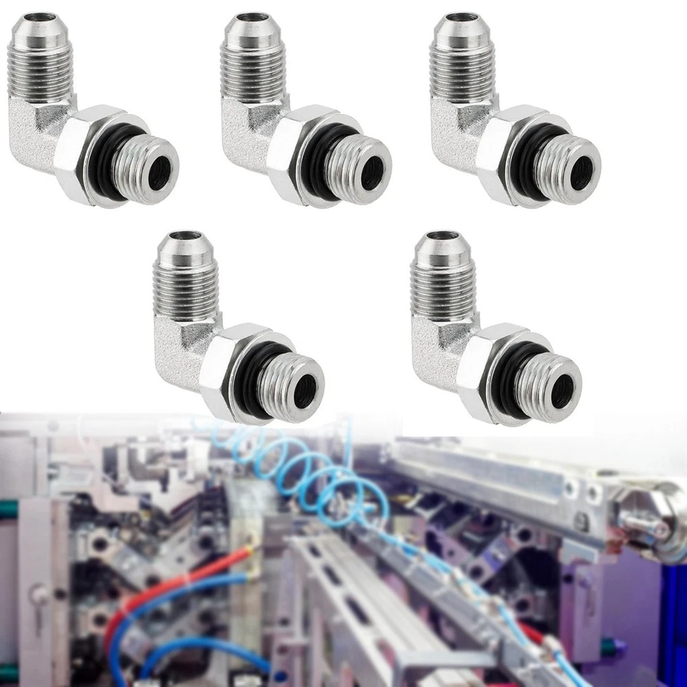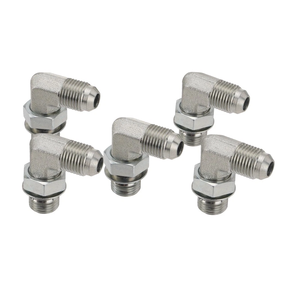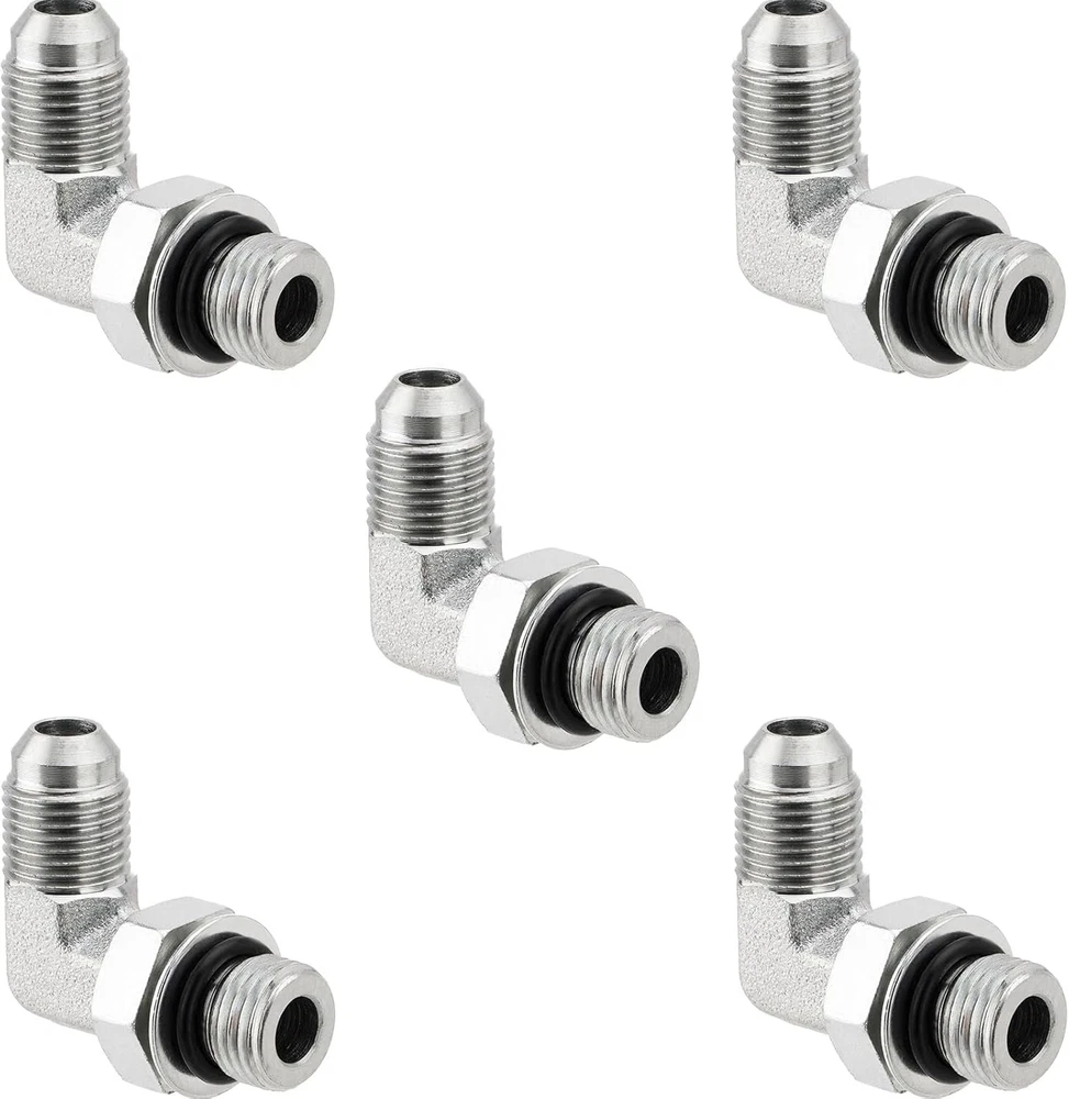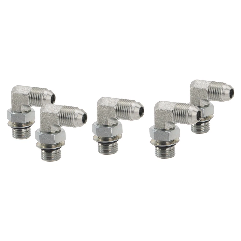 5PCS 90 Degree Elbow Hydraulic Hose Fittings:1/4" JIC 37° Male x #6 SAE/ORB Male