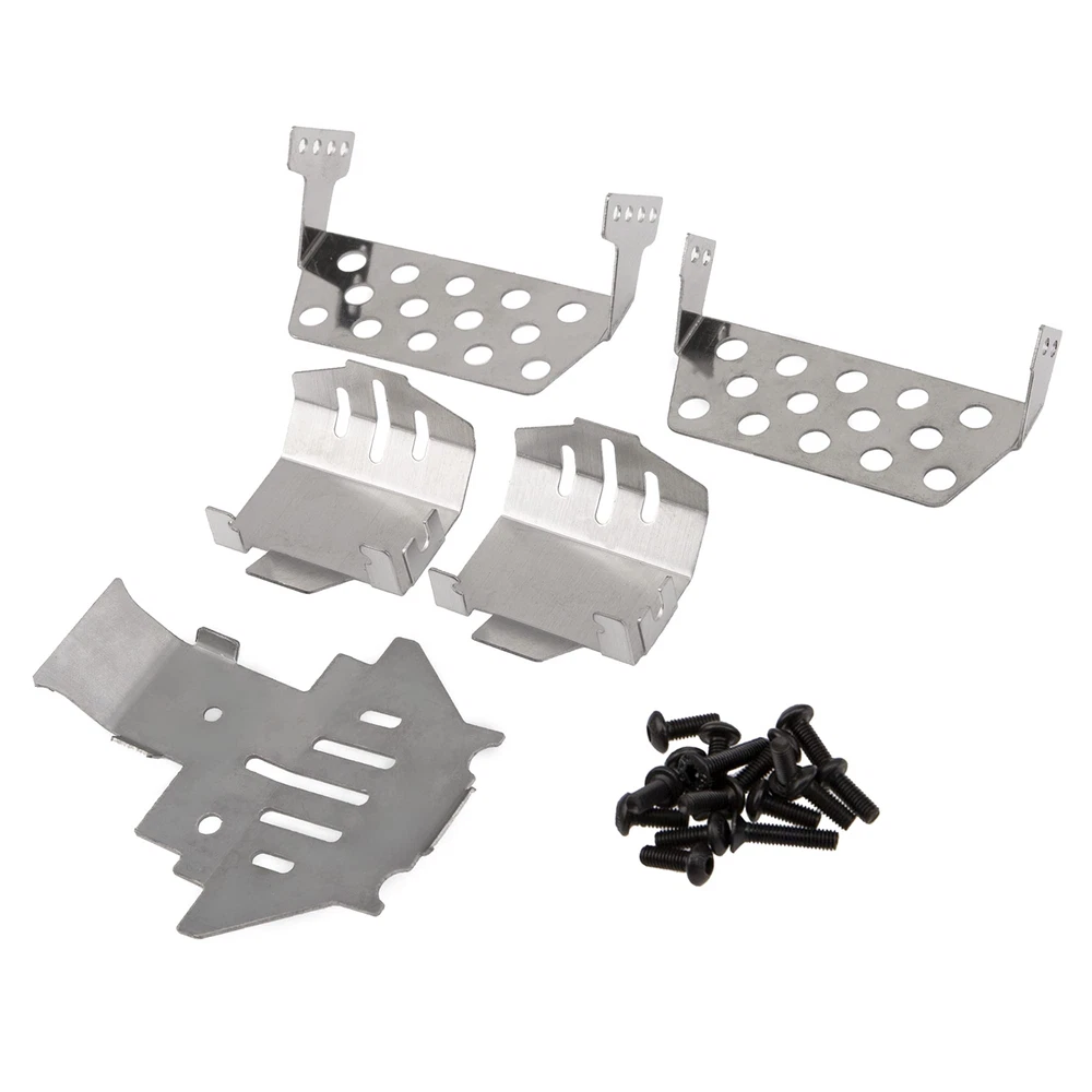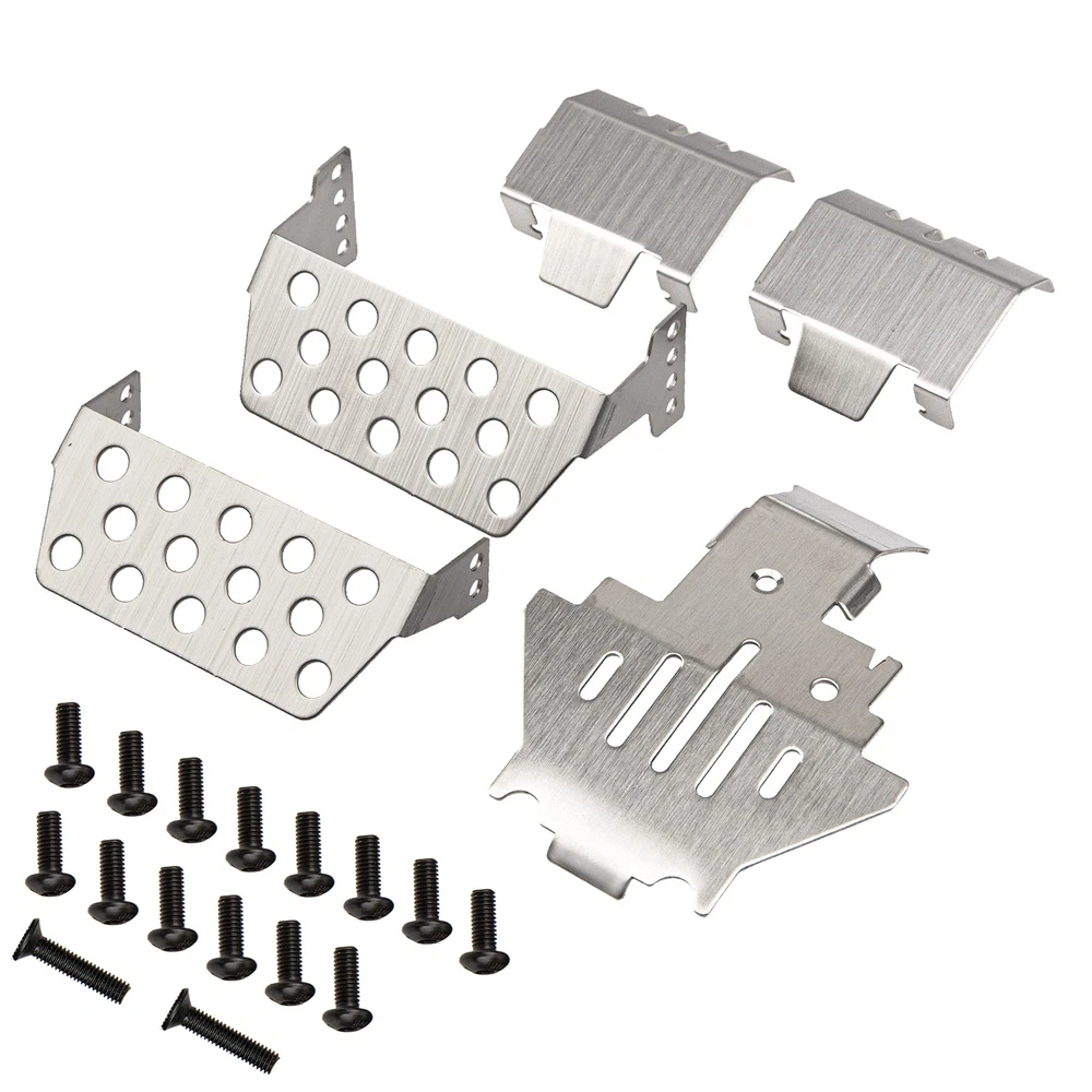 with Traxxas TRX-4 82056-4 1/10 RC Crawler Car Made of stainless steel,strong and sturdy. It can effectively protect your RC car from scratch and abrasion, so that it will prevent damage to the front and rear bumper. Lightweight upgrade to better protect your rc car, ensures the performance of your rc car. Come with screws,easy to install and upgrade from original parts. Material: Stainless Steel Color: Silver Quantity: 5Pcs/1Set Weight:98g/Set Package List: 2 x Axle housing Guards Plate 1 x Chassis Guards Plate 1 x Front Guards Plate 1 x Rear Guards Plate The RC chassis armor protector with Traxxas TRX-4 82056-4 1/10 rc crawler car Made of stainless steel,strong and sturdy. It can effectively protect your RC car from scratch and abrasion, so that it will prevent damage to the front and rear bumper. Plate Thickness:Approx.1mm,Total Weight:98g Pack of 5.Come with screws,easy to install and upgrade from original parts.