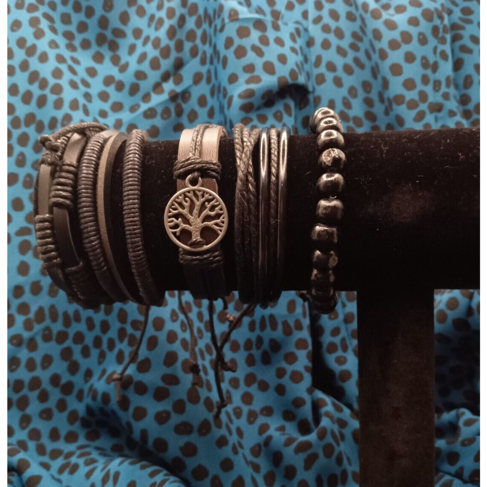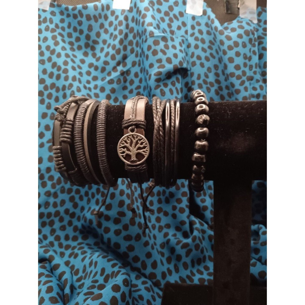 5 Bracelets: 4 Leather Boho Adjustable Bracelets and 1 Resin Bracelet. Tree of Life. Unisex Has sliding adjustable rope chord that can accommodate young people to adults with large hands and wrists. Brand new. Can be worn stacked or separately. Look great on men as well as women. I can bundle for you.
