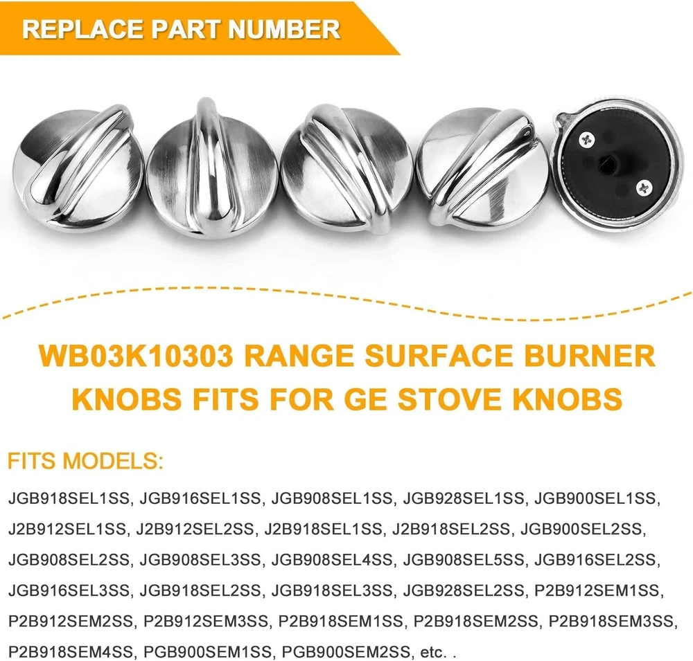 5-Pack Stainless Steel Gas Stove Knobs for GE - Enhance your Cooking Experience ‹ › ‹ › ‹ › ‹ › ‹ › ‹ › ‹ › ‹ › 5-Pack Stainless Steel Gas Stove Knobs for GE - Enhance your Cooking Experience Compatible Models: replaces: , WB03K10208, WB03K10305, WB03K10221, WB03K10294, 191d5100, 1810427, AH3486484, AP4980246, EAP3486484, etc. FIT MODELS: PS3486484, PGB910SEM2SS, P2B918SEM1SS, PGB908SEM3SS, J2B918SEL2SS, PGB928SEM1SS, JGB928SEL2SS, PGB900SEM4SS, PGB975SEM4SS, PGB916SEM4SS, JGB918SEL2SS, etc. Key Features: Set of 5 elegant stainless steel knobs featuring a durable plastic backing. Efficient heat control for surface burners, easy installation in under a minute – no tools required. Robust design ensures longevity and enhanced performance. Compatible with a range of GE, Hotpoint models, making it a versatile addition to your kitchen. Stainless steel finish adds a touch of sophistication to your cooking appliance. Benefits: Enjoy unparalleled control over cooking temperatures, leading to delicious culinary results. Quickly replace old or broken knobs without hassle, rejuvenating the look of your cooking range. Durability ensures you won't have to worry about frequent replacements. Experience the satisfaction of a fully functional kitchen appliance that enhances your cooking enjoyment. Customer-focused commitment provides peace of mind with responsive support for any inquiries. Why Choose Our Stainless Steel Gas Stove Knobs? Upgrade your culinary experience with our 5-Pack Stainless Steel Gas Stove Knobs. Designed with compatibility in mind, these knobs fit a range of models while providing you with remarkable control over your cooking. The refined stainless steel offers both a practical function and an aesthetic improvement to your cooktop. Don’t let a broken knob hinder your cooking—restore your kitchen functionality and style with ease. Buy your 5-Pack of Stainless Steel Gas Stove Knobs today and experience the difference! Shipping Free & Fast Shipping - We offer free shipping to most of the USA with a normal delivery time of 3-7 days. However, due to the current situation, additional delivery time (up to 3 weeks) may be required for some items. Alternative Carriers - We may use alternative carriers (e.g. USPS, FedEx, UPS, etc.) to ensure your package arrives safely and on time. Due to the use of multiple carriers, we are unable to provide a tracking number automatically. Handling Time - Orders are processed and shipped within 1-2 business days of receiving cleared payment. Shipping Restrictions - Shipping to Alaska, Hawaii, Puerto Rico, Guam, and other US territories may incur shipping charges or delivery restrictions. Please contact us before ordering, or your order can be refunded/cancelled. State Restrictions - There may be restrictions based on your state of purchase. For example, certain items may not be shipped to California due to state regulations. Contact for Tracking Updates - If you require tracking updates or have any concerns about the delivery of your order, please feel free to contact us, and we will be happy to assist you. Return 30-Day Hassle-Free Returns - We want you to be completely satisfied with your purchase. If you are not, you can return the item within 30 days of receiving it for a full refund or exchange. Easy Return Process - To start a return, simply contact us and we will provide you with a prepaid return shipping label and detailed instructions. Restocking Fee - There are no restocking fees for returns. However, the buyer is responsible for return shipping costs if the return is not due to a seller's error. Refund Processing Time - Refunds will be processed within 5 business days of receiving the returned item in its condition. Payment We accept all major credit cards, PayPal, and Apple Pay for your convenience. Your payment information is secure and encrypted to ensure a safe and seamless transaction. Please complete your payment within 3 days of purchase to avoid any delays in shipping. Feedback Your feedback is extremely important to us. We strive to provide the best products and customer service possible. If you are satisfied with your purchase, please take a moment to leave us a positive review. If you have any concerns or issues with your order, please contact us before leaving negative feedback. We are committed to resolving any problems and ensuring your satisfaction. Contact Us If you have any questions or concerns, please feel free to out to our customer support team. You can contact us through the eBay messaging system. We are available Monday to Friday, 9:00 am to 5:00 pm EST, and we will do our best to respond to your inquiry within 24 hours. Buy it now and enjoy a pleasant shopping experience! Model: Gas Stove Knobs Replacement Item Weight: 10.2 oz Unit Quantity: 5 Set Includes: Knob Suitable For: Cooktop Compatible Model: WB03K10303 Features: Easy to install,Durable Type: Knob Power Source: Electric Color: Silver Installation: Freestanding Capacity: 0.5 ft³ or less Material: Stainless Steel Finish: Metallic Stainless Steel Number of Items in Set: 5 Item Depth: 1.1 inches Unit Type: oz