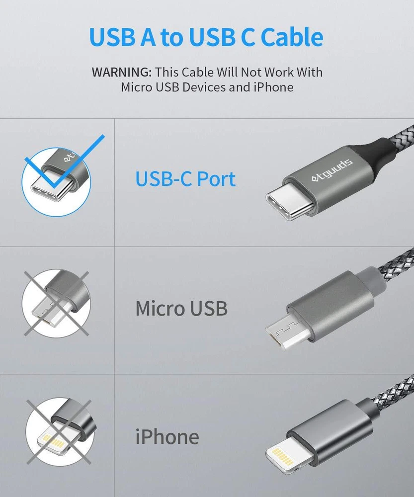 USB A to USB C Cable 5-Pack (3/3/6/6/10 ft), Fast Charging Type C Charger Cord for iPhone 16 15 Pro/Pro Max/Plus, for Samsung Galaxy S24 S23 S22 S21 S20 S10 A55 A54 Flip, Pixel, Moto G, Gray Multiple Length: 5 pack usb to usb c cables can meet your variety of daily use while charging at home, cars, office, and more. Optimized for using with portable power bank, multi-UBS ports power adapters, desktops ETC Fast Charging and Data Sync: USB C to USB A Cable supports safe high-speed charging 3 A and USB 2.0 data syncing speed up to 480 Mb/s. 56 kΩ resistor provide reliable conductivity stability and protect your devices and charging adapters from damage Long-Lasting: Our USB-C cable uses nylon braided adding tangle-free and heavy duty, can bear 20000+ bending lifespan Wide Compatibility: Type c charger cord compatible with a most C port devices, for Samsung Galaxy S24 S24+ Ultra S23 S22 S21 A53 A15 A14 Note 20, for LG, for Moto, for Pixel, for iPhone 16 15. Not compatible with iPhone model before iPhone 15 What You Get: You will get 5 pack USBA to USBC Gray braided nylon cable. Please note fast charge requires your device and wall charger support fast charging Shipping We offer FREE shipping on all orders! We ship within Three business days of payment, usually sooner. We use a selection of shipping services such as UPS, FedEx, USPS etc. We only ship to the lower 48 states, no APO/FPO addresses or PO Boxes allowed. Local pickups and combined shipping options are not provided at this time. Return You can return a product for up to 30 days from the date you purchased it. Any product you return must be in the same condition you received it and in the original packaging. Please keep the receipt. Payment We accept payment by any of the following methods: PayPal Please pay as soon as possible after winning an auction, as that will allow us to post your item to you sooner! Feedback Customer satisfaction is very important to us. If you have any problem with your order, please contact us and we will do our best to make you satisfied. Contact Us If you have any queries, please contact us via ebay. We usually respond within 24 hours on weekdays. Please visit our eBay store to check out other items for sale! Thank you for shopping at our store.