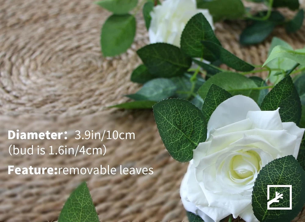 Love these white rose garlands! They look so realistic with full blooms and soft leaves. Perfect length for draping over arches, railings, or walls—no watering needed. The hooks make setup a breeze, and the quality is great for the price. Adds such elegant charm to weddings, parties, or home decor!