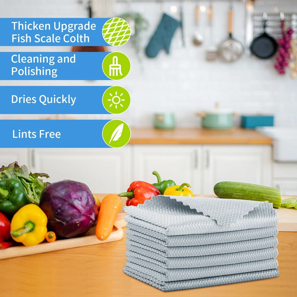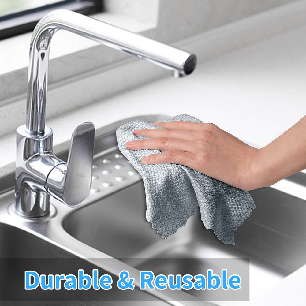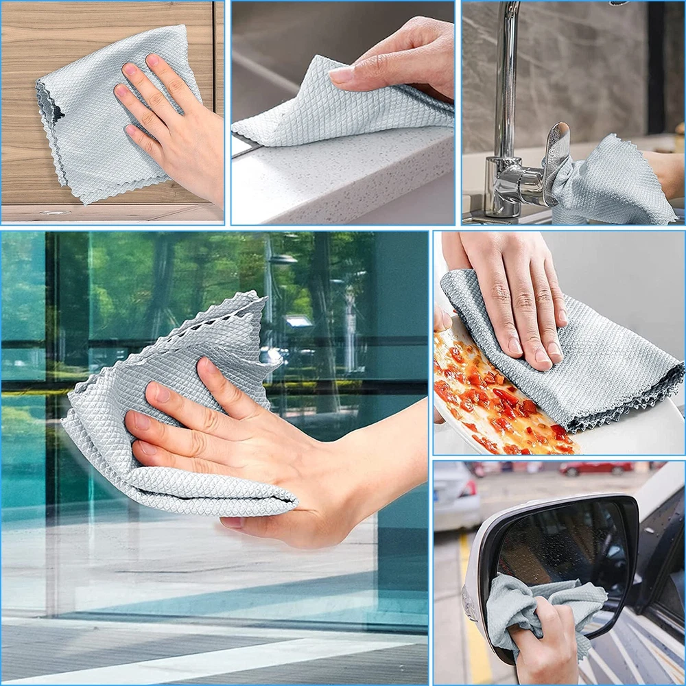 Features Ultra-soft and extremely fine microfiber fabric absorb and gently lifts away fingerprints, oil smudges, dust, and dirt. No hair loss, strong water absorption, strong decontamination, no water marks, soft and comfortable, easy to clean It can be used both dry and wet.The fish scale pattern design increases the friction with the surface of the object. Our Glass Cloth is Machine Washable. Just wash with cold water on gentle cycle, tumble dry low. No fading or shrink even after thousands of washes. Reusable and Fast Drying. Do not bleach. Ideal for mirror, window, stainless steel, stemwares, lens, glasses, screen etc. Can easily remove dust and stains, Leaves no Wiping Marks. Specifications Material: Microfiber Color: Gray Size: 11.8*15.7inch On Jun 26, 2025 at 00:56:50 PDT, seller added the following information:
