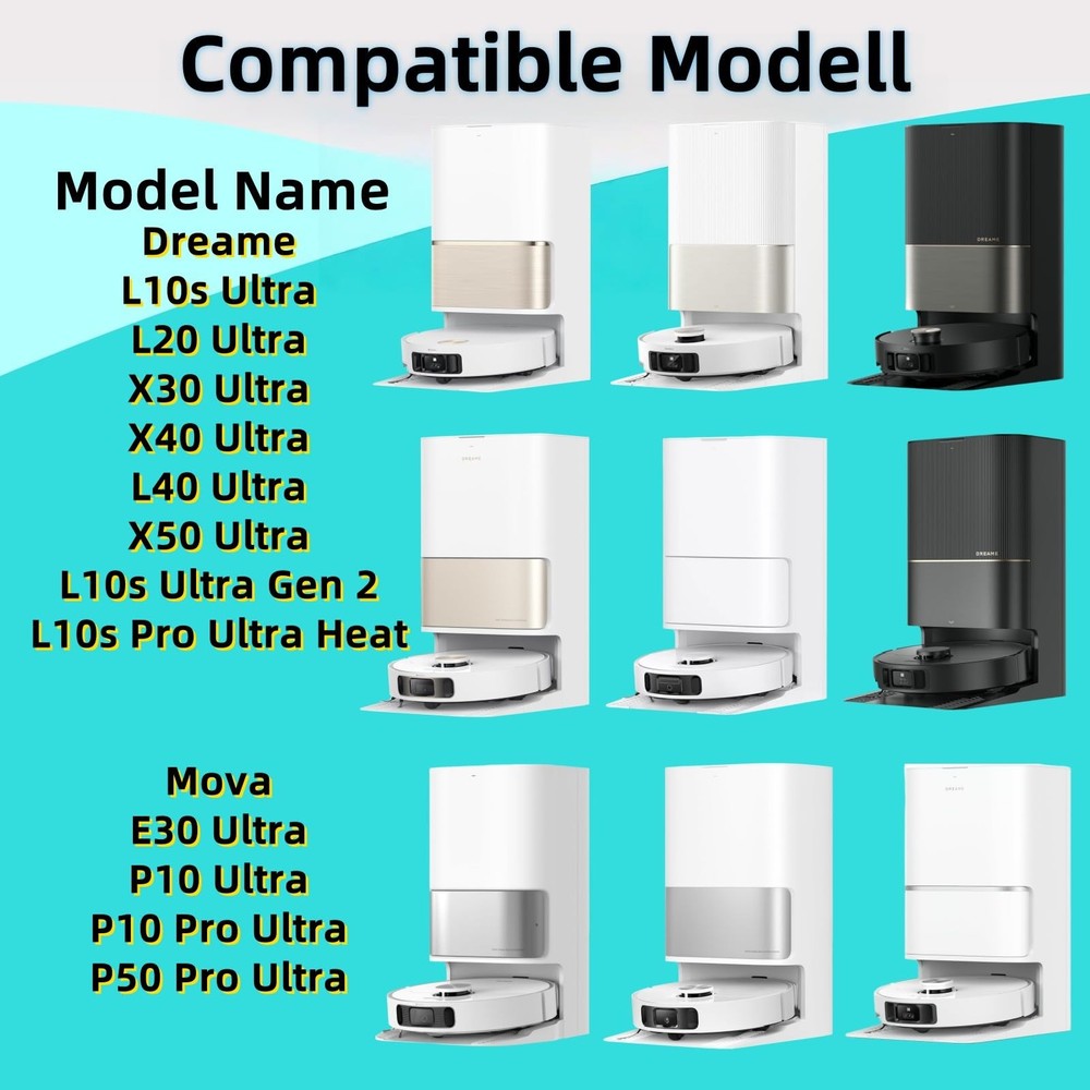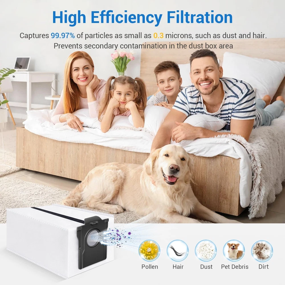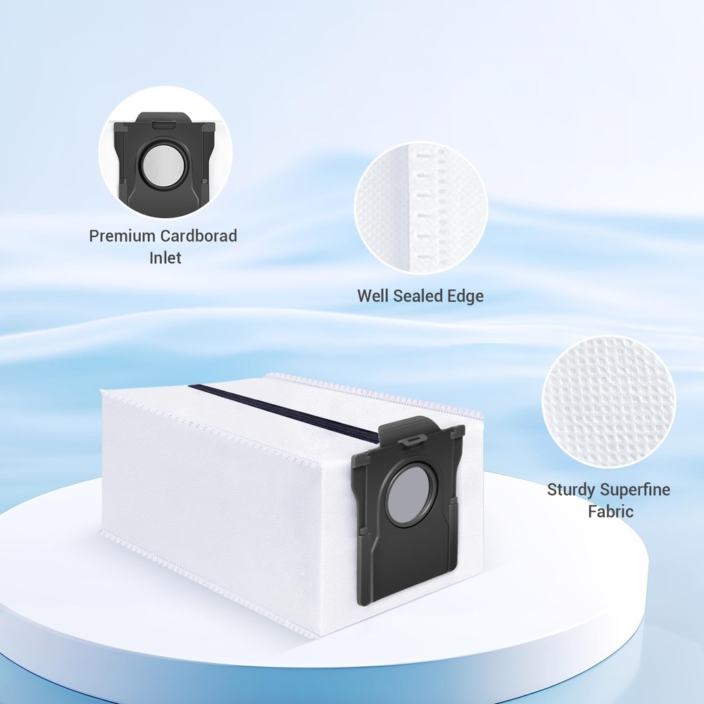 The vacuum bag with Dreametech L10S Ultra/L10S Ultra Heat/L20 Ultra/L30 Ultra/X30 Ultra/X40 Ultra/D10 Plus Gen 2 Robot Vacuum 【Application】The 5Pcs vacuum bag with Dreametech L10S Ultra/L10S Ultra Heat/L20 Ultra/L30 Ultra/X30 Ultra/X40 Ultra/X50 Ultra/D10 Plus Gen 2 Robot Vacuum, ensuring a perfect fit for your device. (Please check your device model before ordering) 【High Efficiency Filtration】Our vacuum cleaner bags feature 4 stage filtering and are made of layers of fine melt blower fiber and layers of non-woven fabric Lock 99.97% of dirt, detritus, and other particles as small as 0.3 microns, creating a tidy environment for you. 【Large Capaity Bags】 Each dustbin bag has a large capacity of 3.2L,The dimensions are 8.3"× 4.7"× 3.9'', strong sealing, dust suppression, easy cleaning, leaving enough space for all naughty particles. 【Simple 】Simply remove the full dust bag and install the new along the holder slot. This straightforward process makes and maintenance effortless. 【Meeting your needs】 We are committed to providing 100% satisfaction. If you have any questions about our products, we will reply within 24 hours and do our best to solve any problems for youl.