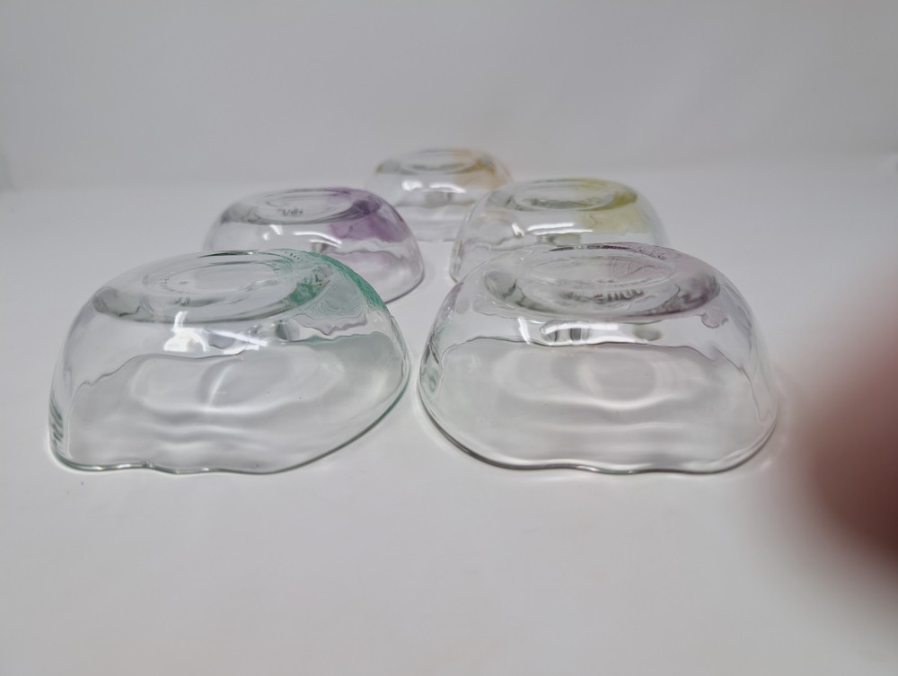 Please review all pictures for the condition of the item and to see what is included in the set. Two of the bowls have small nicks on the rim shown in the pictures.