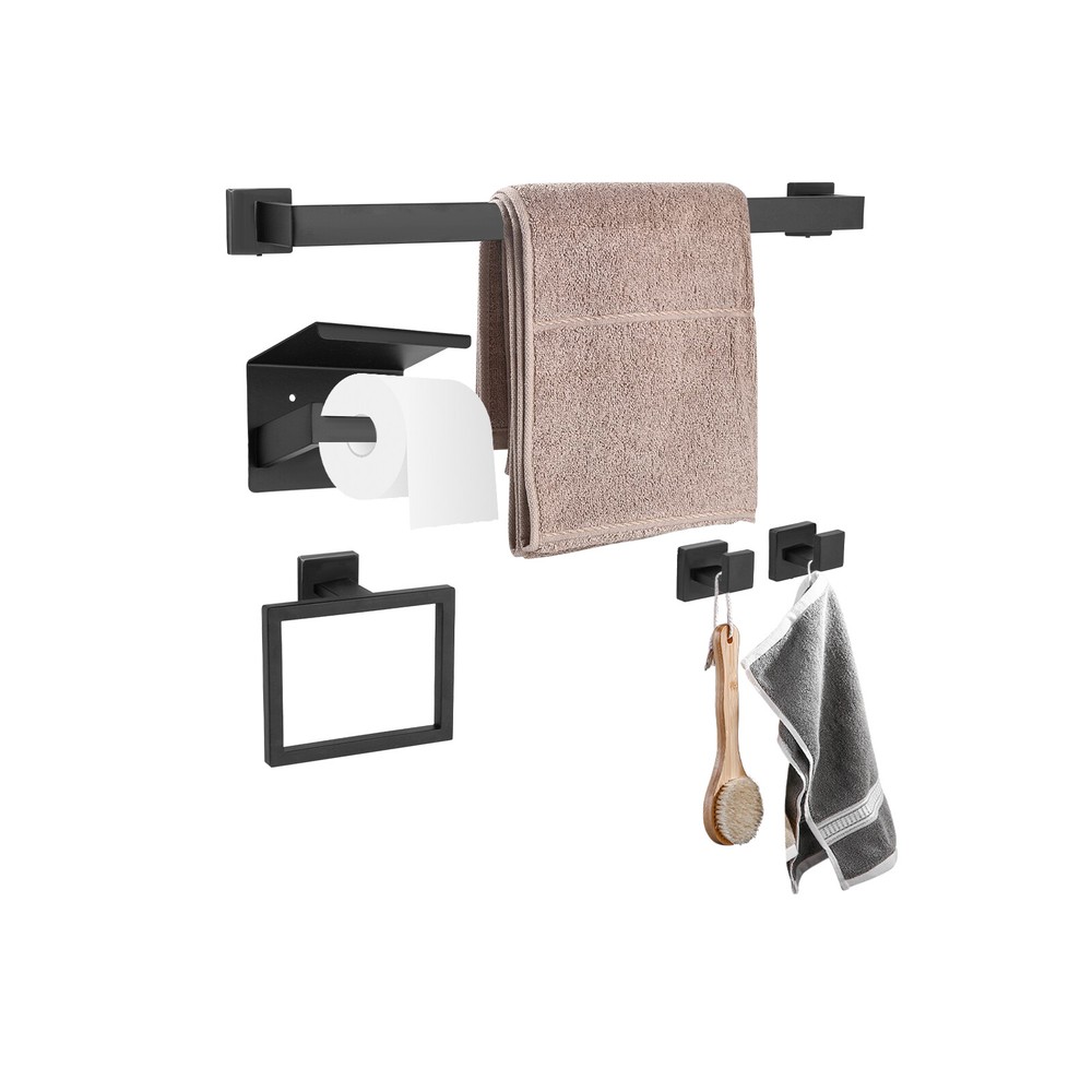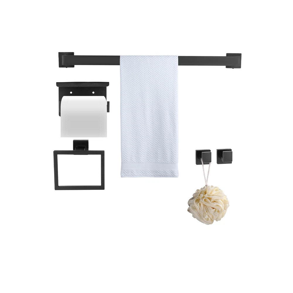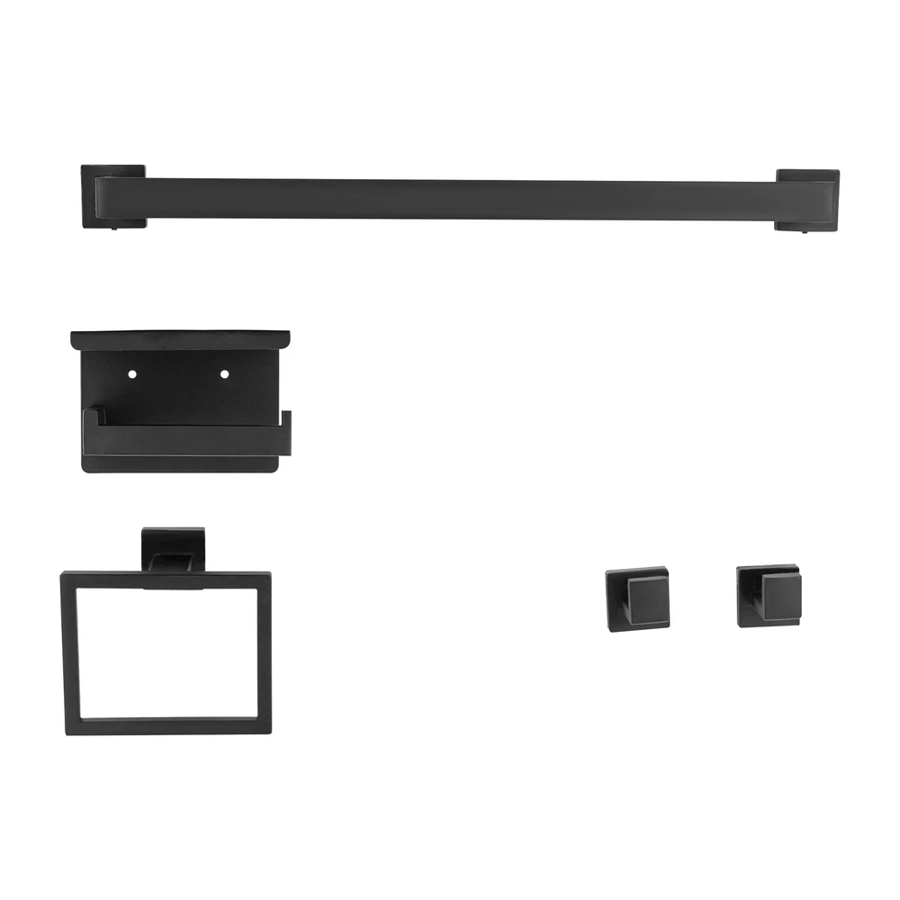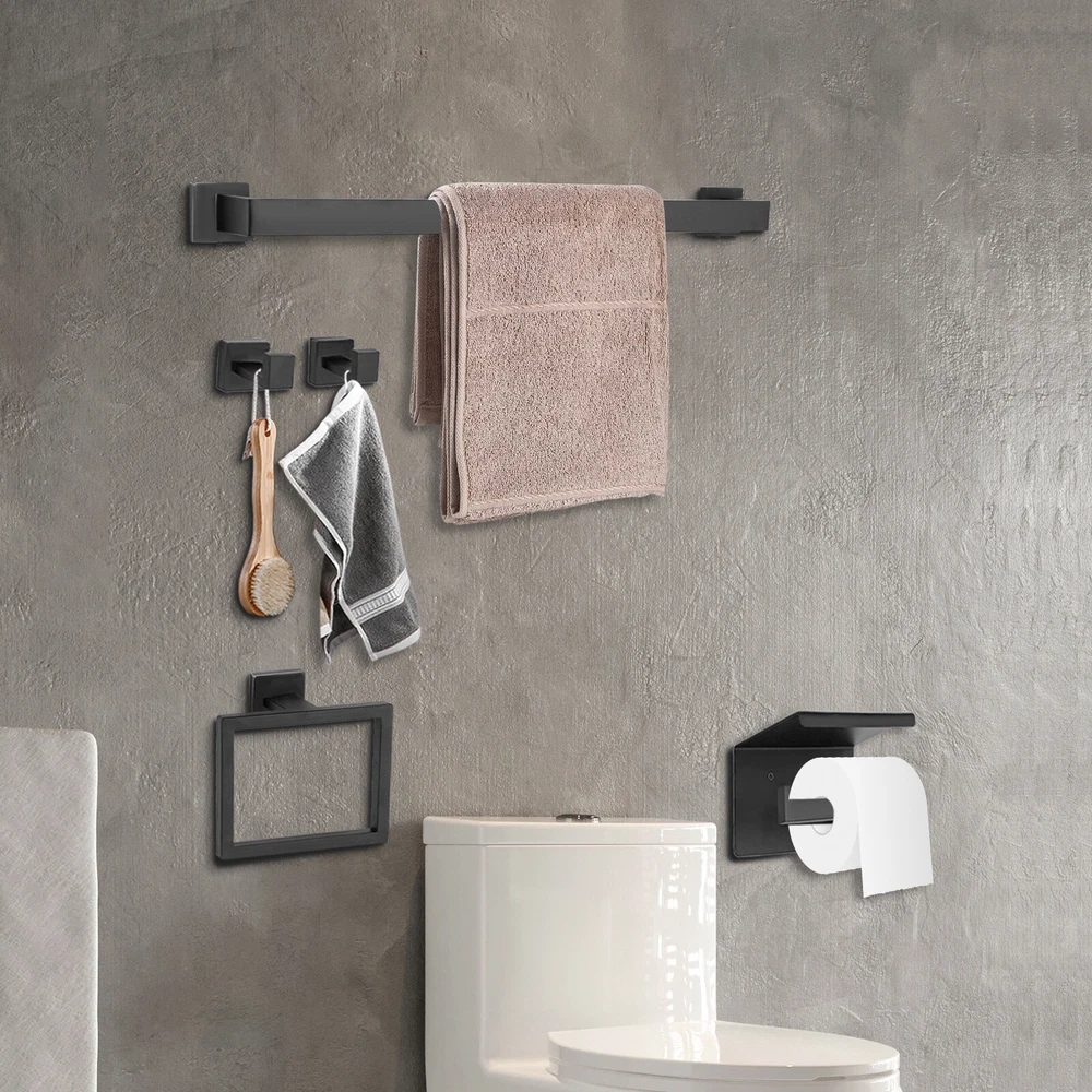 This sleek black stainless steel bathroom set is a game-changer! The modern design looks ultra-stylish, and the 5-piece set has everything you need—towel bar, hooks, ring, and toilet paper holder. Installation was straightforward with the included diagram, and the sturdy 201 stainless steel feels premium. The matte black finish resists fingerprints and matches any decor perfectly. Super functional while adding a high-end touch to my bathroom!