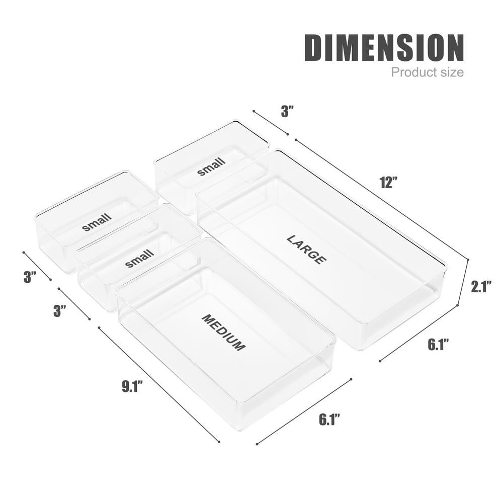 *Perfect solution for customizing any drawer with organizer bins Fits perfectly within most standard sized drawers *The perfect solution for customizing any drawer with organizer bins in a variety of sizes which fit perfectly within most standard sized drawers. It's a stylish way to de-clutter small household items inside drawers and create your very own system. Made of durable clear plastic-Slim design with sleek rounded corners-BPA free-Hand wash. *5-piece drawer organizer set-a great way to de-clutter small household items inside drawers and create your very own mix and match organizational system Multi-purpose-great for skincare, makeup, cosmetics, toiletries, grooming tools, jewelry, hair accessories desk, office supplies, kitchen items, crafts, kni... Building an Ideal Home Together 5-Piece Clear Storage Bins,Drawer Organizer for Makeup,Cosmetics,Skin Care,Vanit *Perfect solution for customizing any drawer with organizer bins Fits perfectly within most standard sized drawers *The perfect solution for customizing any drawer with organizer bins in a variety of sizes which fit perfectly within most standard sized drawers. It's a stylish way to de-clutter small household items inside drawers and create your very own system. Made of durable clear plastic-Slim design with sleek rounded corners-BPA free-Hand wash. *5-piece drawer organizer set-a great way to de-clutter small household items inside drawers and create your very own mix and match organizational system Multi-purpose-great for skincare, makeup, cosmetics, toiletries, grooming tools, jewelry, hair accessories desk, office supplies, kitchen items, crafts, knick-knacks-ideal for kitchen drawers, junk drawer, bedroom table nightstand, bathroom cabinets, office desk, vanity station, college dorm, etc. Stacks or separates-stacks/nests together when empty or can be used separately to divide contents-versatile for mixing and matching to suit your needs Fits more drawers-perfect solution for customizing any drawer with organizer bins in a variety of sizes-fits perfectly within most standard sized drawers Clear design-made of durable clear plastic-sleek rounded corners-BPA free-hand wash-do not place in dishwasher-accessories shown not included-5-piece set includes: (1) large 12 in. L x 6.1 in. W x 2.1 in. H; (1) medium 9.1 in. L x 6.1 in. W x 2.1 in. H; (3) small 6.1 in. L x 3 in. W x 2.1 in. H *Color Family:Clear|Color/Finish:Clear|Included:No additional components or accessories are included|Lid Color:No Lid|Lid/Top Mechanism:Lidless|Material:Plastic|Pack Size:5|Returnable:90-Day|Shape:Rectangle|Storage Capacity:0.8 gal|Storage Features:No Additional Features|Storage Product Type:Desk Organizers|Weight Capacity (lb.):6.5 lb|Manufacturer Warranty:30 Days|Product Depth (in.):12 in|Product Height (in.):2 in|Product Width (in.):3 in Item Specifics UPC 192405388361 MPN PL-ORG5-K Brand Sorbus Type Storage Bins Item Length 12 in Item Width 3 in Item Height 2 in Payment PayPal is our preferred method of payments it's the quickest, easiest and most secure way to pay for your goods or services online. PayPal offers buyer and seller protection should there be a problem. If you do not have a PayPal account, to get started and buy your first item with us is very easy. Simply click on the 'Buy It Now' button and follow the eBay checkout steps. Select PayPal as the payment method you then will be given the chance to enter your card details in to PayPal's secure checkout in order to pay for your order. Shipping 1. Your purchase is shipped directly to you as soon as we have received your cleared payment. 2. Normally all of parcels would be shipped within 3days(From Monday to Saturday). 3. We will send information on eBay or email if the parcel was delayed due to our holiday. 4. We provide three kinds of shipping for choice. Shipping way depend on delivery address. Returns If an unit is received defective, of course we take it back or replace it. If the unit is received as expected, we must charge for our expenses if you want to send it back. We have to charge for the work of handling, retesting and restocking. About us Dear buyer, Thank you for visiting my store! Our warehouses are located in many regions around the United States. According to the customer's delivery address. Use USPS/UPS/DHL logistics transportation service. Prioritize the best quality logistics solutions to transport packages. Ensure package delivery time, At the same time. Have any after-sales problems, Feel free to contact us. At your service Building an Ideal Home Together DESCRIPTION PAYMENT SHIPPING RETURN POLICY CONTACT US Shop Category Store Home Other Hot Item HOT-2PCS Hood Mirror Fit for Freightliner Cascadia 2008-2016,Pair Hood Mirrors K USD 125.96 HOT-Front Fog Light Lamp Assembly Fit for Freightliner Cascadia 2008-2016 Drivin USD 78.94 HOT-Front Hood Radiator Grille Grill Fit for 2018+ Volvo VNL Semi Trucks w/Bug S USD 266.00 HOT-Tool Cart 40 Taper Tool Holder CNC Tool Cart CAT40 tool trolley BT40 Service USD 193.36 HOT-Hood Mirror w/Led Turn Light Replacement Fit for 2008-2016 Freightliner Casc USD 192.96 Picture New List Item 6,500(DOE)BTU Portable Air Conditioner Cools 300sq.Ft. w/Remote Control in White USD 442.95 6000 BTU(DOE)WIFI Portable Air Conditioner Cools 300sq.Ft. w/Dehumidifier and Re USD 255.37 5,000(DOE)BTU Portable Air Conditioner Cools 400sq.Ft. w/Dehumidifier,Remote and USD 479.53 2,500 BTU Portable Air Conditioner Cools 45 sq.ft. w/Dehumidifier and Remote for USD 289.66 6,000 BTU(DOE SACC)Portable Air Conditioner Cools 450sq.ft. in White w/Heater an USD 519.79 Help & Info Payment Policy Shipping Policy Return Policy FAQ About Us 5-Piece Clear Storage Bins,Drawer Organizer for Makeup,Cosmetics,Skin Care,Vanit *Perfect solution for customizing any drawer with organizer bins Fits perfectly within most standard sized drawers *The perfect solution for customizing any drawer with organizer bins in a variety of sizes which fit perfectly within most standard 