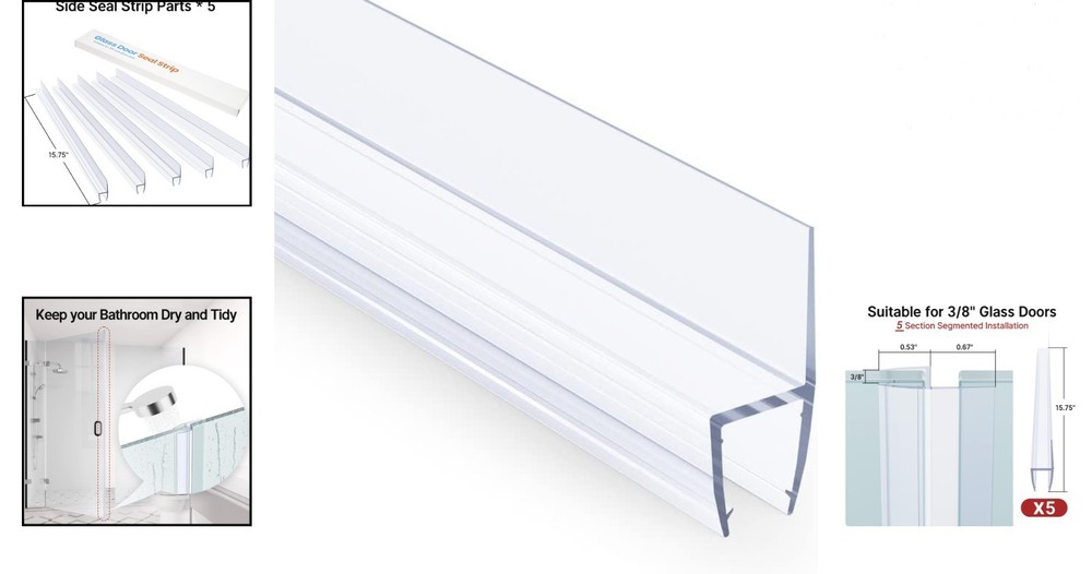 Enhanced Bathroom Aesthetics: 5 PCS Frameless Shower Door Seal Strip - Clear PVC ‹ › ‹ › ‹ › ‹ › ‹ › ‹ › ‹ › ‹ › 5 PCS Frameless Shower Door Seal Strip - Clear PVC Elevate the aesthetics of your bathroom with our exquisitely designed frameless shower door seal strips. Crafted to perfection, these strips are the epitome of elegance and functionality. Key Features: **Enhanced Bathroom Aesthetics:** A sleek and minimalist look that complements any modern bathroom design. **5-Section Segmented Installation:** Each strip measures 15.75 inches, allowing for easy installation in just 5 minutes. Simply measure your glass door and install each part seamlessly. **Complete Package:** Includes 5 pieces of clear shower door side seals, providing a total length of 79 inches. Ideal for 3/8 inch glass doors—please ensure you measure your glass thickness and door height before purchase. **Superior Water Barrier:** Innovative waterproof fins create a tight seal with the glass, effectively preventing water leakage and keeping your bathroom pristine. **Scientific and Perfect Design:** Equipped with a fixed card slot on the inner side, ensuring the strips remain secure and intact even after prolonged use. **Reliable Material:** Constructed from durable PVC material that resists deformation and color change over time, maintaining its functionality and appearance. Why Choose Our Frameless Shower Door Seal Strip? Transform your bathing experience with our Frameless Shower Door Seal Strip. Designed for effortless installation and superior performance, our seal strips offer a flawless finish while optimizing water retention. With a thoughtful design ensuring long-lasting durability, you can trust our product to maintain its integrity while enhancing your bathroom's elegance. Indulge in a luxurious bathing environment—choose our Frameless Shower Door Seal Strip for the perfect blend of innovation and style. Elevate your space and choose for an amazing life. Shipping Free & Fast Shipping - We offer free shipping to most of the USA with a normal delivery time of 3-7 days. However, due to the current situation, additional delivery time (up to 3 weeks) may be required for some items. Alternative Carriers - We may use alternative carriers (e.g. USPS, FedEx, UPS, etc.) to ensure your package arrives safely and on time. Due to the use of multiple carriers, we are unable to provide a tracking number automatically. Handling Time - Orders are processed and shipped within 1-2 business days of receiving cleared payment. Shipping Restrictions - Shipping to Alaska, Hawaii, Puerto Rico, Guam, and other US territories may incur shipping charges or delivery restrictions. Please contact us before ordering, or your order can be refunded/cancelled. State Restrictions - There may be restrictions based on your state of purchase. For example, certain items may not be shipped to California due to state regulations. Contact for Tracking Updates - If you require tracking updates or have any concerns about the delivery of your order, please feel free to contact us, and we will be happy to assist you. Return 30-Day Hassle-Free Returns - We want you to be completely satisfied with your purchase. If you are not, you can return the item within 30 days of receiving it for a full refund or exchange. Easy Return Process - To start a return, simply contact us and we will provide you with a prepaid return shipping label and detailed instructions. Restocking Fee - There are no restocking fees for returns. However, the buyer is responsible for return shipping costs if the return is not due to a seller's error. Refund Processing Time - Refunds will be processed within 5 business days of receiving the returned item in its condition. Payment We accept all major credit cards, PayPal, and Apple Pay for your convenience. Your payment information is secure and encrypted to ensure a safe and seamless transaction. Please complete your payment within 3 days of purchase to avoid any delays in shipping. Feedback Your feedback is extremely important to us. We strive to provide the best products and customer service possible. If you are satisfied with your purchase, please take a moment to leave us a positive review. If you have any concerns or issues with your order, please contact us before leaving negative feedback. We are committed to resolving any problems and ensuring your satisfaction. Contact Us If you have any questions or concerns, please feel free to out to our customer support team. You can contact us through the eBay messaging system. We are available Monday to Friday, 9:00 am to 5:00 pm EST, and we will do our best to respond to your inquiry within 24 hours. Buy it now and enjoy a pleasant shopping experience! Item Weight: Not specified Unit Quantity: 5 Suitable For: Shower,Frameless Glass Shower Doors Set Includes: Shower Door Side Seal Material: PVC Features: Waterproof fins,Easy installation,Fixed card slot Type: Side Seal Item Height: 0.98 Inches Color: Clear Room: Bathroom Number of Items in Set: 5 Glass Thickness: 3/8 inch Unit Type: ft